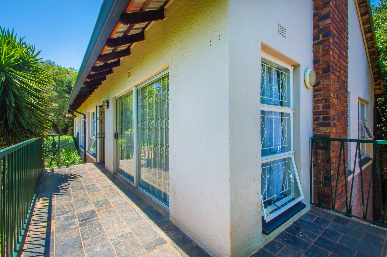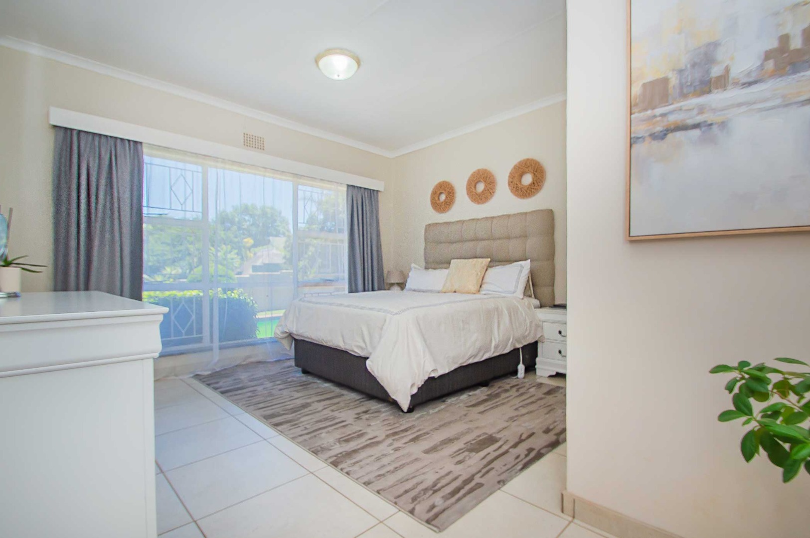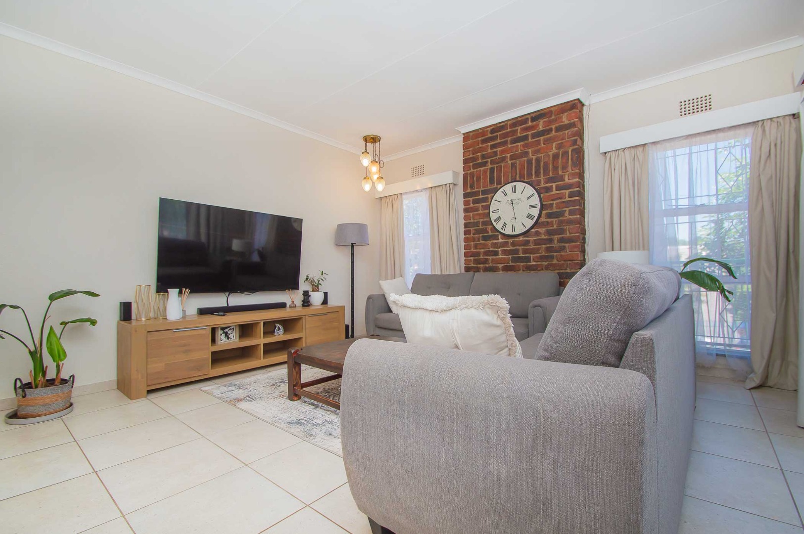 This charming Wilro Park residence immediately impresses with its established, lush landscaping and paved driveway leading to a double garage. The mixed-material facade, featuring brick and plaster, along with robust security measures like a high boundary wall, access gate, and window bars, ensures both aesthetic appeal and peace of mind in this suburban setting. Step inside to discover a modern, bright interior spanning 189 sqm, offering three comfortable bedrooms and two bathrooms, including a private en-suite. The home boasts a well-appointed kitchen, a dedicated dining room, and a spacious lounge, all featuring clean tiled flooring and a neutral colour scheme. An inviting exposed brick accent wall adds character, complemented by a cozy fireplace and a dedicated study for work or leisure. Fibre connectivity is available, ensuring modern living. The outdoor spaces are designed for relaxation and entertainment. A large, inviting swimming pool with ample paved surround is a focal point, complemented by a rustic lapa featuring a built-in braai – perfect for South African outdoor living. Enjoy the spacious patio and a charming balcony overlooking the expansive, well-maintained garden with mature trees and tropical landscaping. Practical additions include staff quarters, domestic rooms, and outside toilets. Security is paramount with an alarm system, electric fencing, and security gates, ensuring a totally walled and secure environment. Situated in the suburban heart of Wilro Park, Roodepoort, this property offers a tranquil lifestyle with convenient access to local amenities. Key Features: * 3 Bedrooms, 2 Bathrooms (1 En-suite) * Double Garage & Paved Driveway * Large Swimming Pool & Lapa with Braai * Spacious Garden with Mature Trees * Dedicated Study & Fireplace * Staff Quarters & Domestic Rooms * Enhanced Security (Alarm, Electric Fencing, Burglar Bars) * Fibre Ready * Erf Size: 1001 sqm, Floor Size: 189 sqm