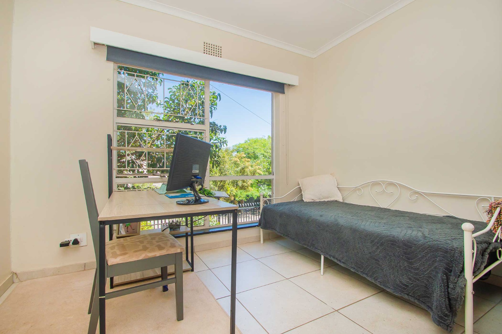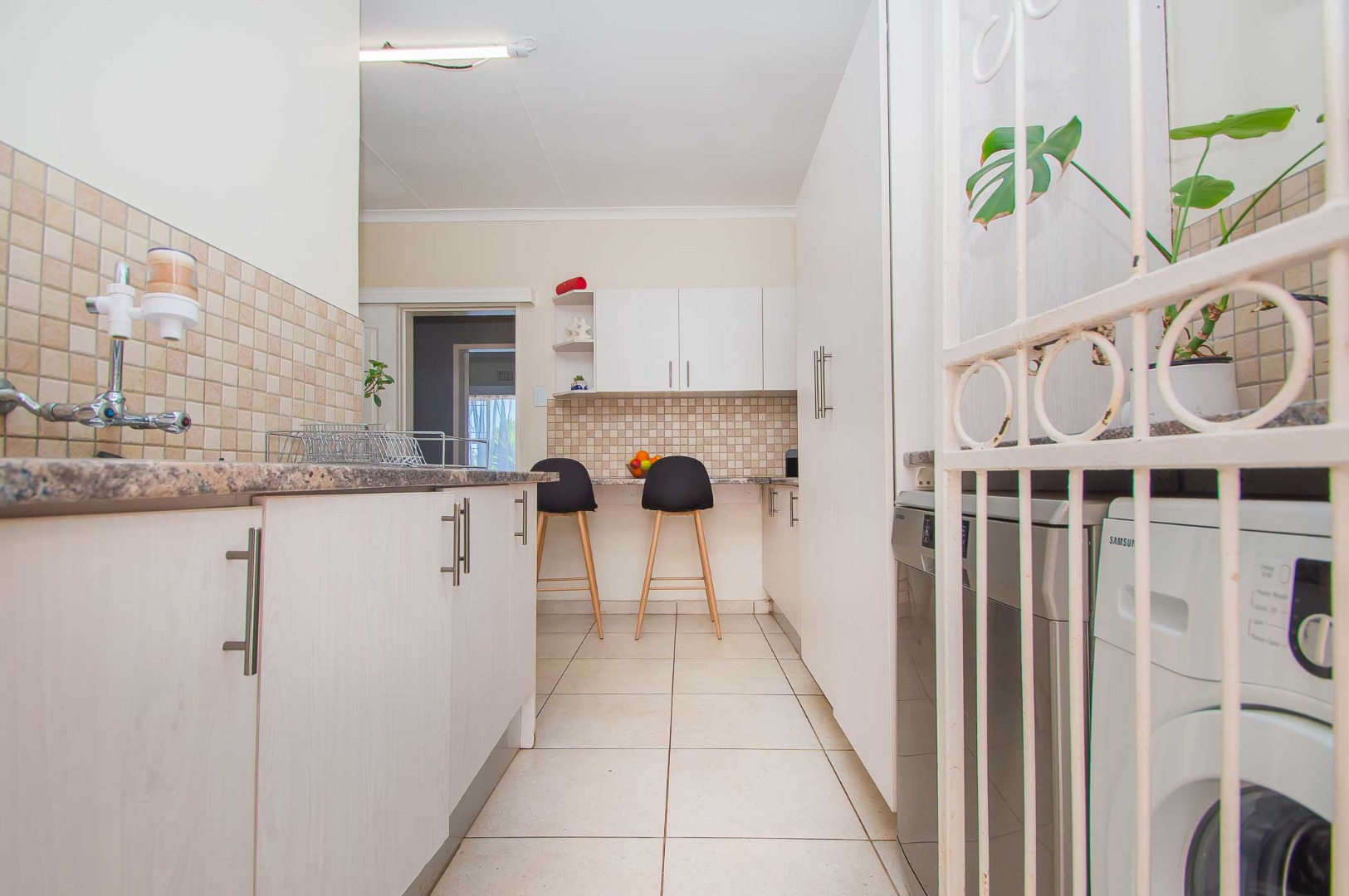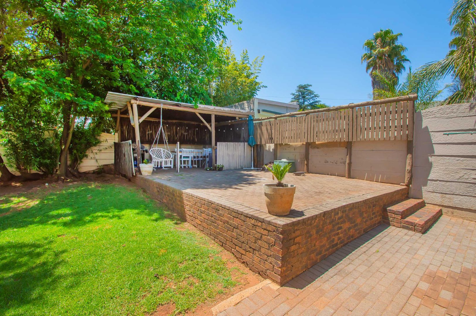 This charming Wilro Park residence immediately impresses with its established, lush landscaping and paved driveway leading to a double garage. The mixed-material facade, featuring brick and plaster, along with robust security measures like a high boundary wall, access gate, and window bars, ensures both aesthetic appeal and peace of mind in this suburban setting. Step inside to discover a modern, bright interior spanning 189 sqm, offering three comfortable bedrooms and two bathrooms, including a private en-suite. The home boasts a well-appointed kitchen, a dedicated dining room, and a spacious lounge, all featuring clean tiled flooring and a neutral colour scheme. An inviting exposed brick accent wall adds character, complemented by a cozy fireplace and a dedicated study for work or leisure. Fibre connectivity is available, ensuring modern living. The outdoor spaces are designed for relaxation and entertainment. A large, inviting swimming pool with ample paved surround is a focal point, complemented by a rustic lapa featuring a built-in braai – perfect for South African outdoor living. Enjoy the spacious patio and a charming balcony overlooking the expansive, well-maintained garden with mature trees and tropical landscaping. Practical additions include staff quarters, domestic rooms, and outside toilets. Security is paramount with an alarm system, electric fencing, and security gates, ensuring a totally walled and secure environment. Situated in the suburban heart of Wilro Park, Roodepoort, this property offers a tranquil lifestyle with convenient access to local amenities. Key Features: * 3 Bedrooms, 2 Bathrooms (1 En-suite) * Double Garage & Paved Driveway * Large Swimming Pool & Lapa with Braai * Spacious Garden with Mature Trees * Dedicated Study & Fireplace * Staff Quarters & Domestic Rooms * Enhanced Security (Alarm, Electric Fencing, Burglar Bars) * Fibre Ready * Erf Size: 1001 sqm, Floor Size: 189 sqm