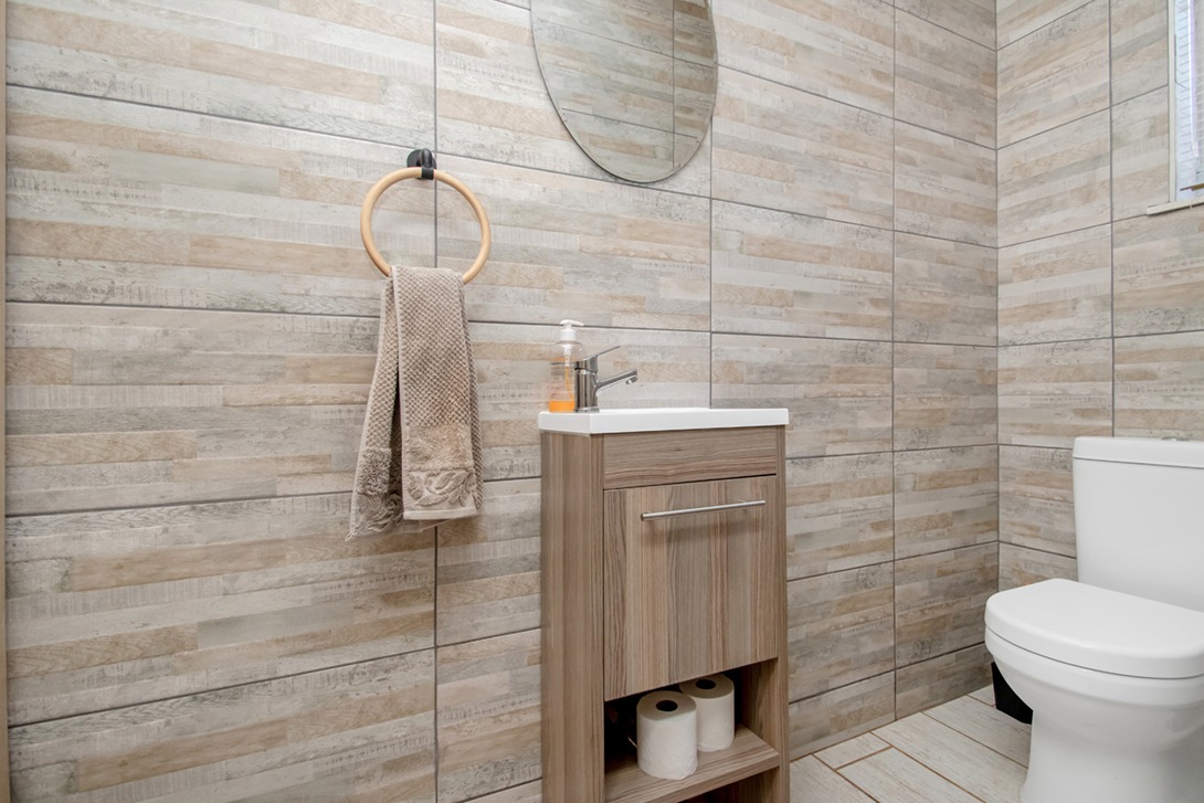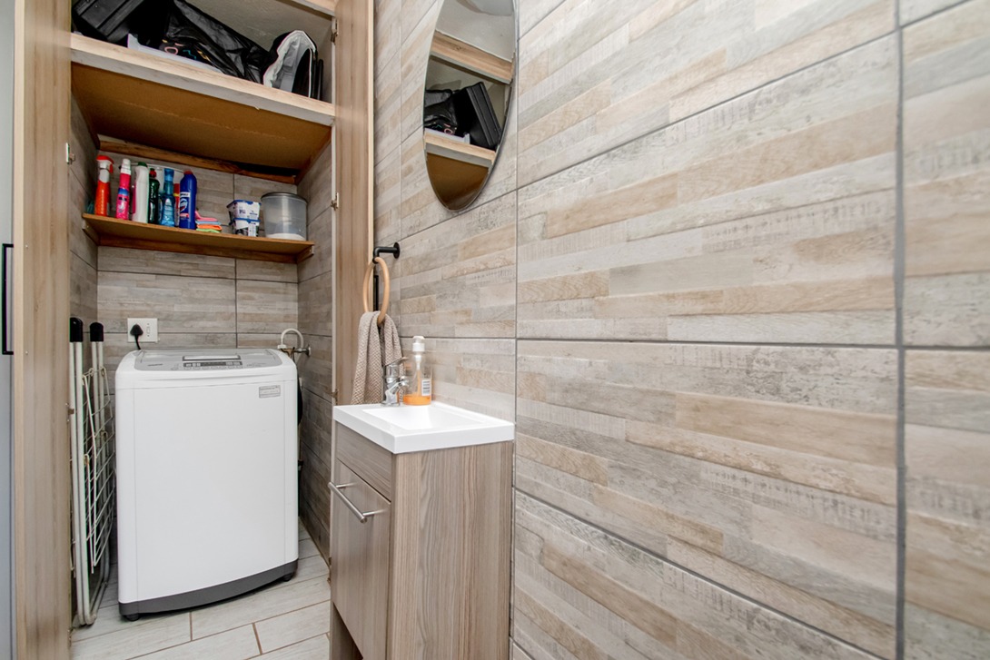 As you enter, you're greeted by a generous open-plan living space that effortlessly flows from the lounge to the dining area, creating the perfect setting for entertaining or unwinding after a long day. The guest toilet downstairs hides a clever built-in laundry area — practical, sleek, and out of sight.