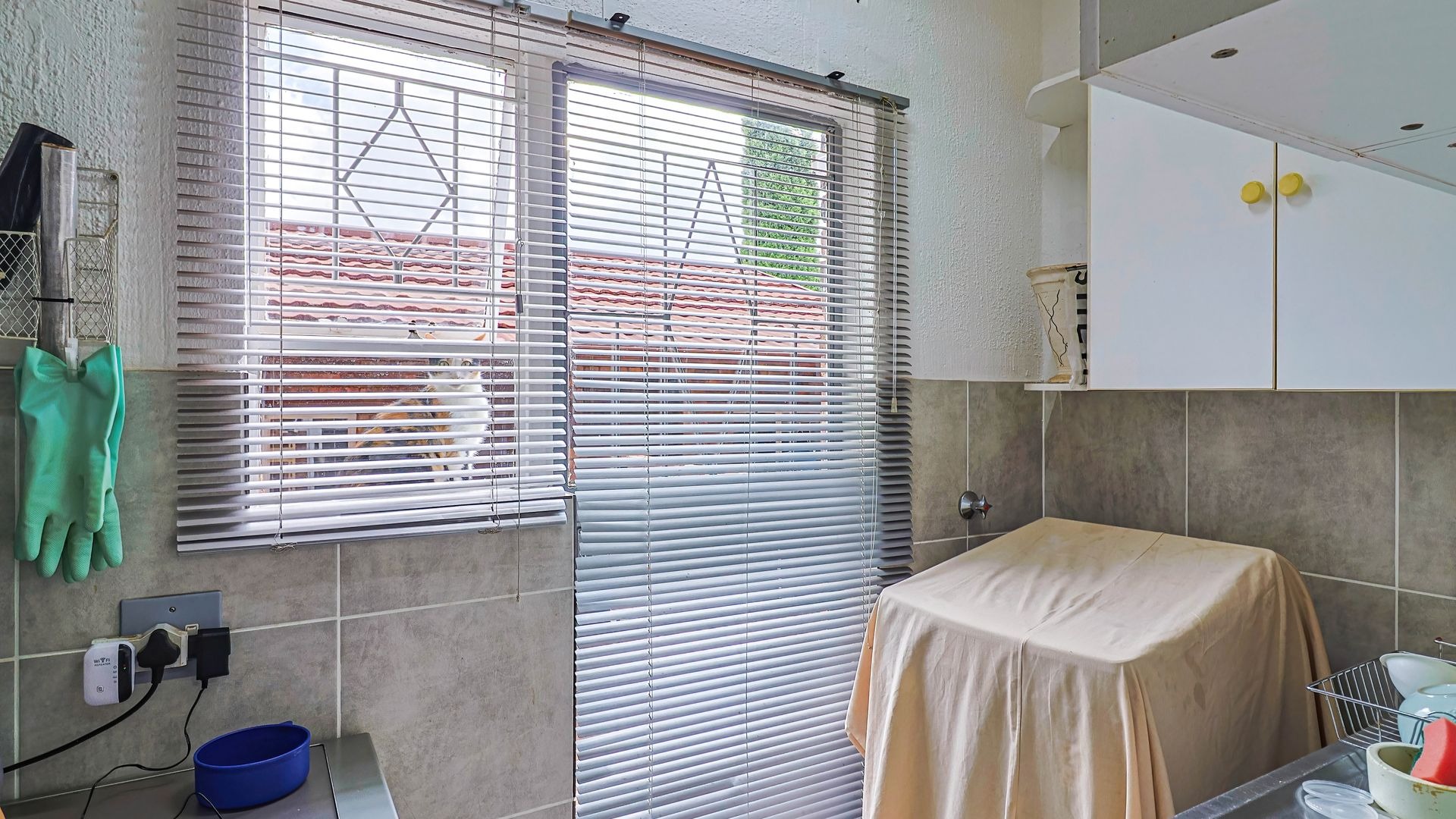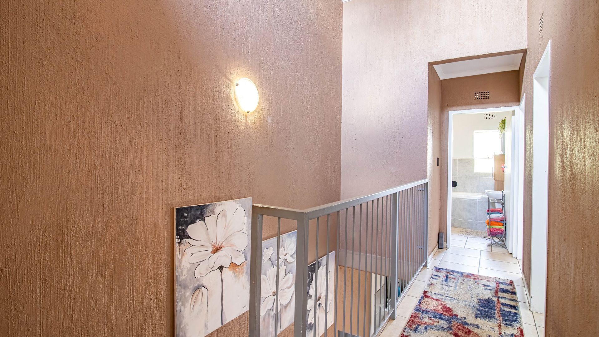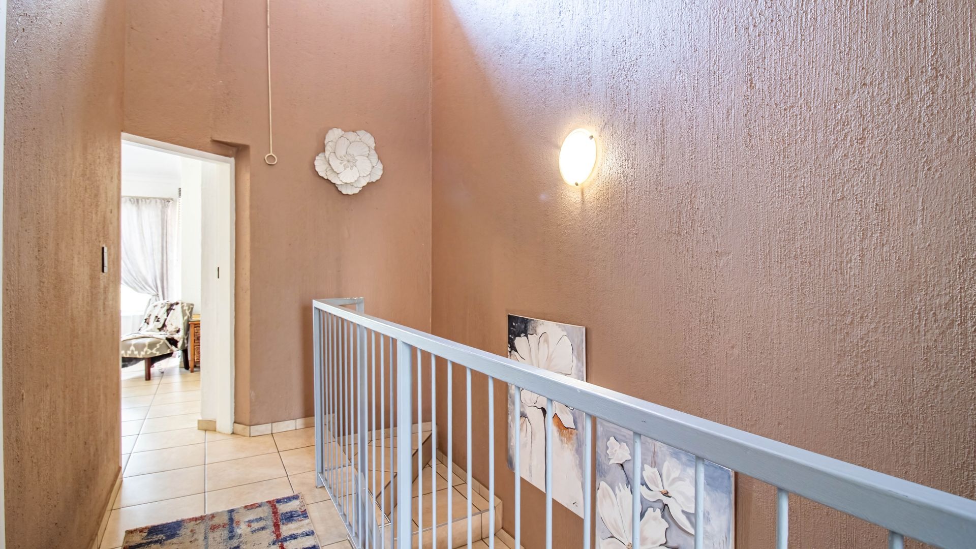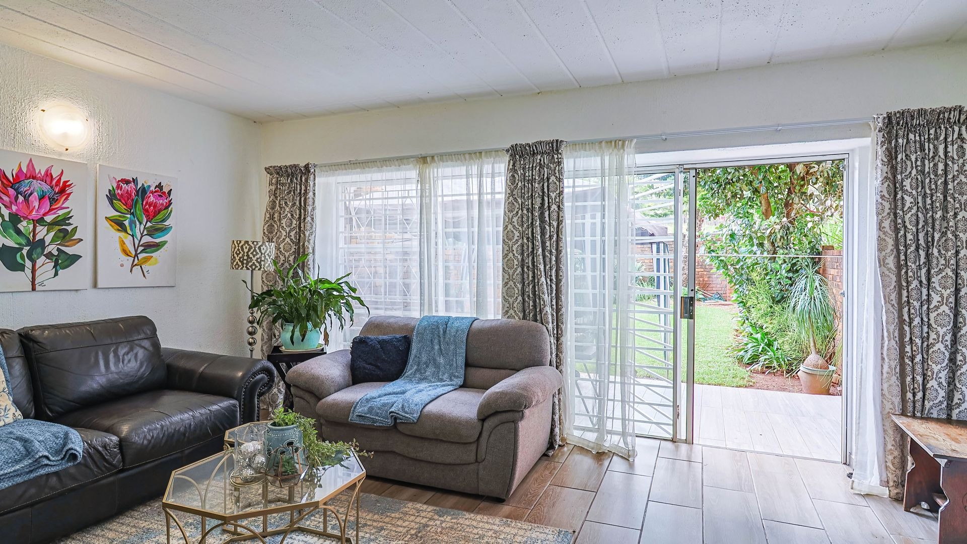 This stunning 3-bedroom apartment is ideally situated in the sought-after suburb of Wilropark, offering easy access to main arterial routes, shopping centres, schools, medical facilities and other essential amenities, making everyday living both convenient and effortless. Upstairs, the apartment offers three spacious bedrooms, all fitted with built-in cupboards, with the second bedroom further enhanced by an upstairs loft area which, for all practical purposes, allows this apartment to function as a four-bedroom home or alternatively a work-from-home office or private living space. The main bedroom also opens onto a small patio, perfect for morning coffee or enjoying the fresh air. A fully equipped bathroom services the upper level and features a modern, spacious shower as well as a bath, finished with contemporary fittings. Upon entering the apartment downstairs, you are welcomed by a well-designed open-plan kitchen with a separate scullery, seamlessly flowing into the dining area and continuing through to the TV lounge, which opens onto an open patio and a charming private garden, ideal for relaxed outdoor living and entertaining. A conveniently located guest toilet is also available on the lower level, and a storage cupboard beneath the staircase provides additional practical storage space. The apartment further offers excellent parking and storage options, including a lock-up garage with an automated garage door, one covered carport parking bay and one additional open parking bay. The well-maintained complex enhances the lifestyle offering with a communal swimming pool, while providing a secure and peaceful environment in a popular residential area of Wilropark, making this apartment an ideal choice for families, professionals or investors alike.