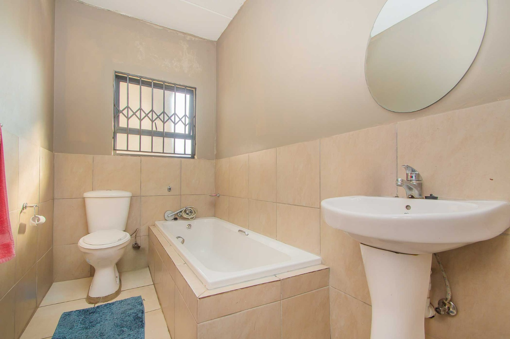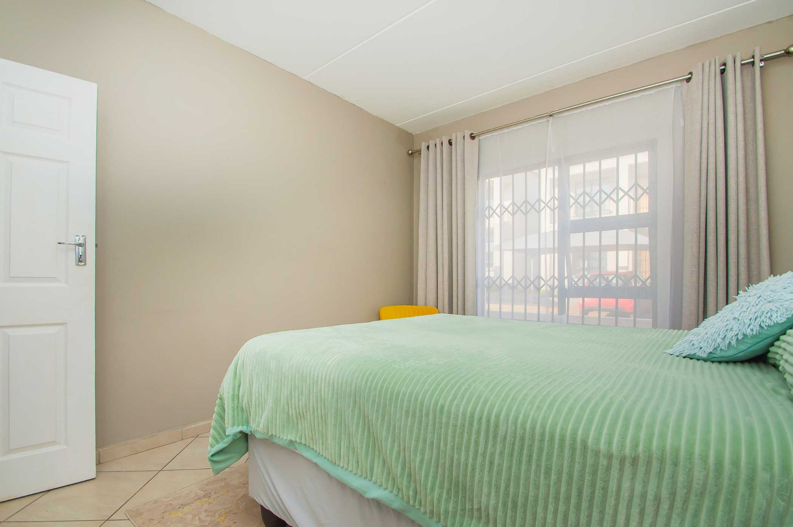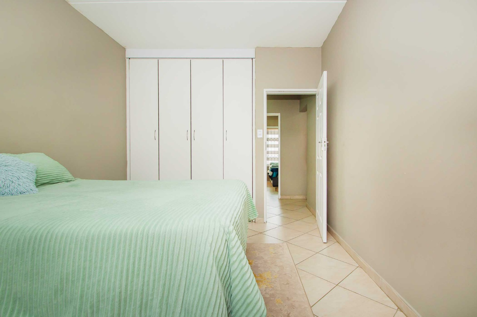 The main bedroom is spacious and sunny with built in cupboards. The second bedroom is fitted with lovely blinds.