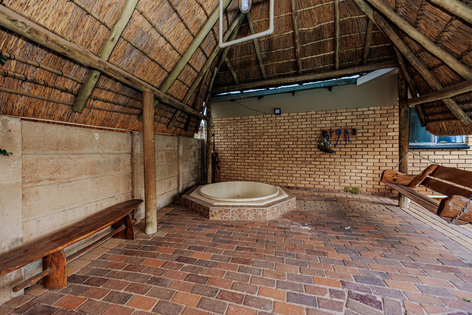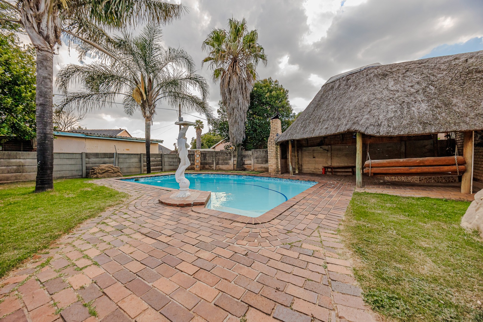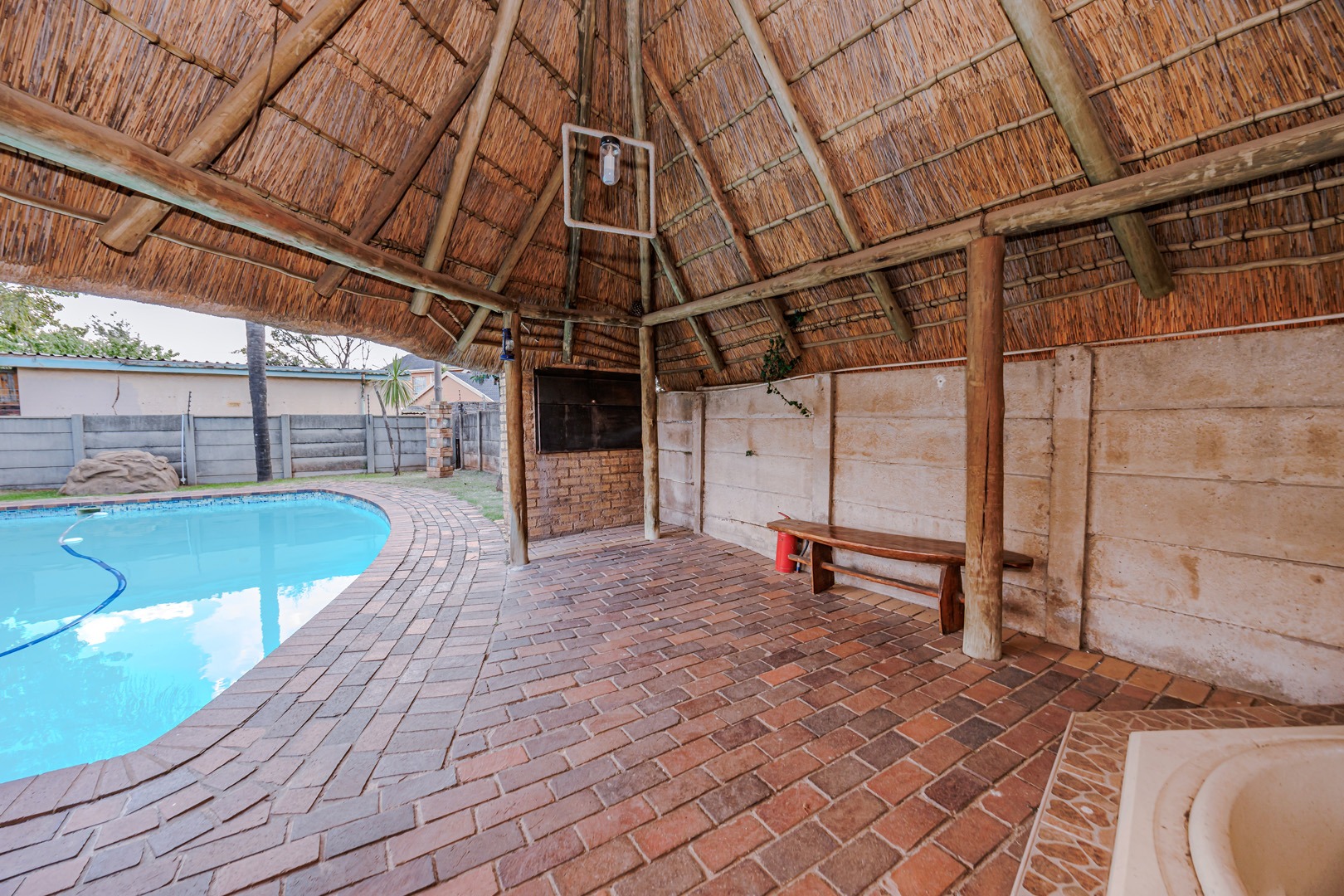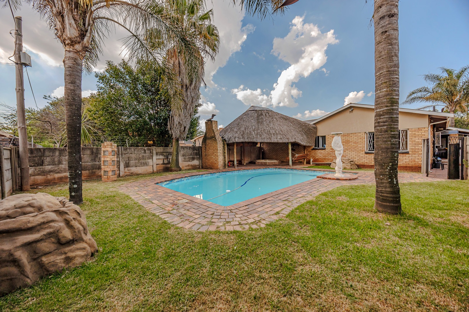 Outdoor living is a delight on this generous 978 sqm erf. The expansive garden is perfect for various activities and features a refreshing swimming pool and a relaxing jacuzzi, ideal for unwinding. With ample parking for up to six vehicles, including the garage and carport, convenience is assured. This pet-friendly property welcomes your furry companions.