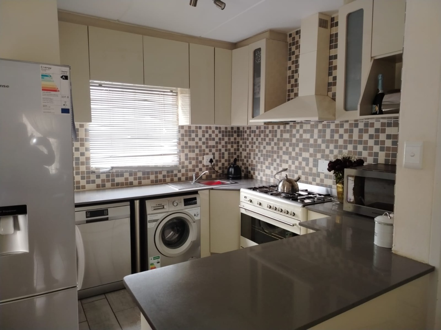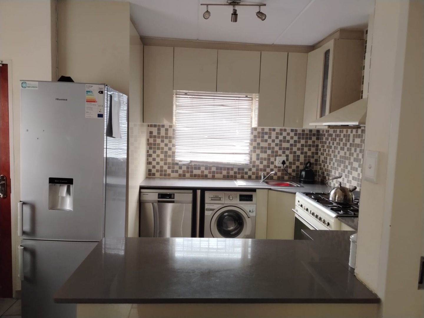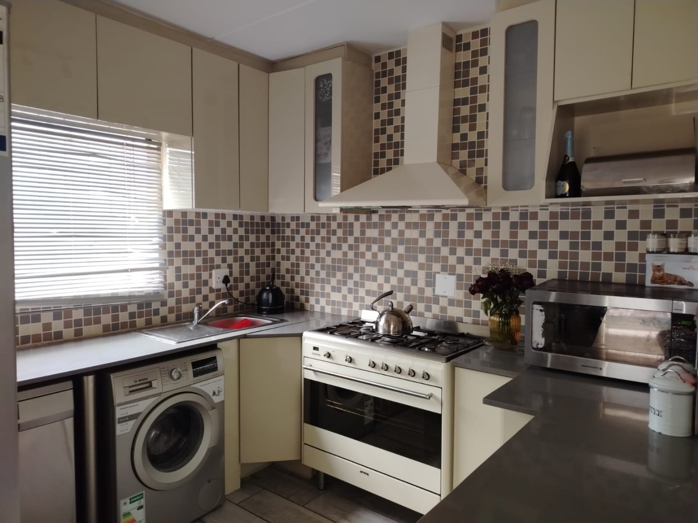 * Modern Kitchen with Appliances (Gas Stove, Dishwasher, Washing Machine, Fridge)