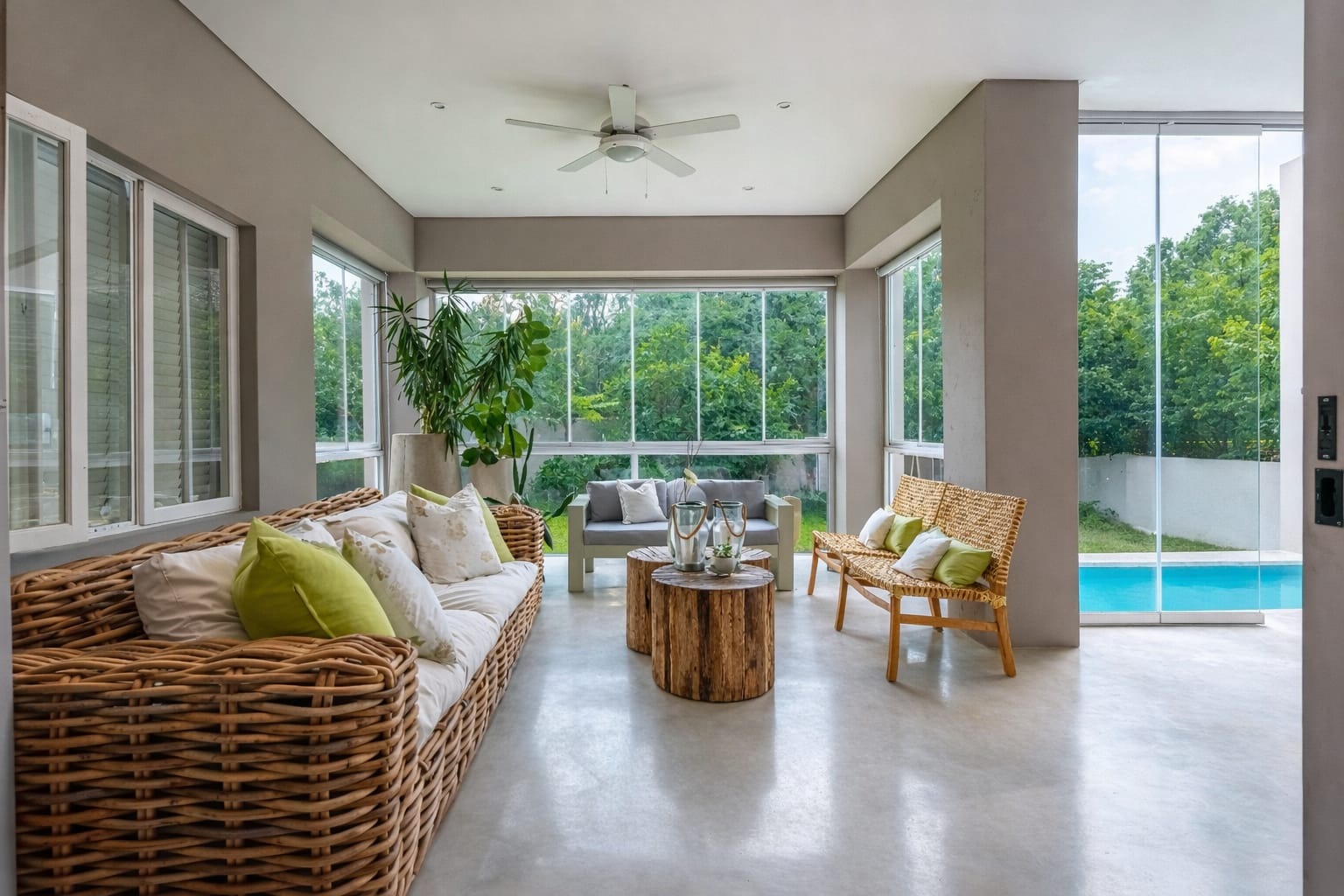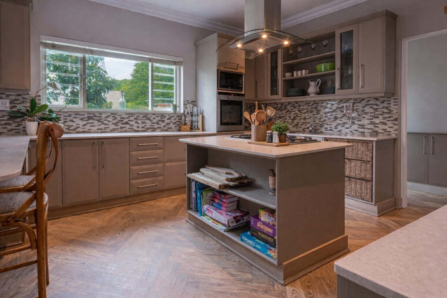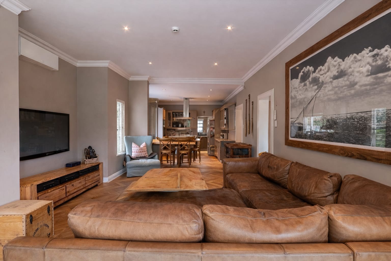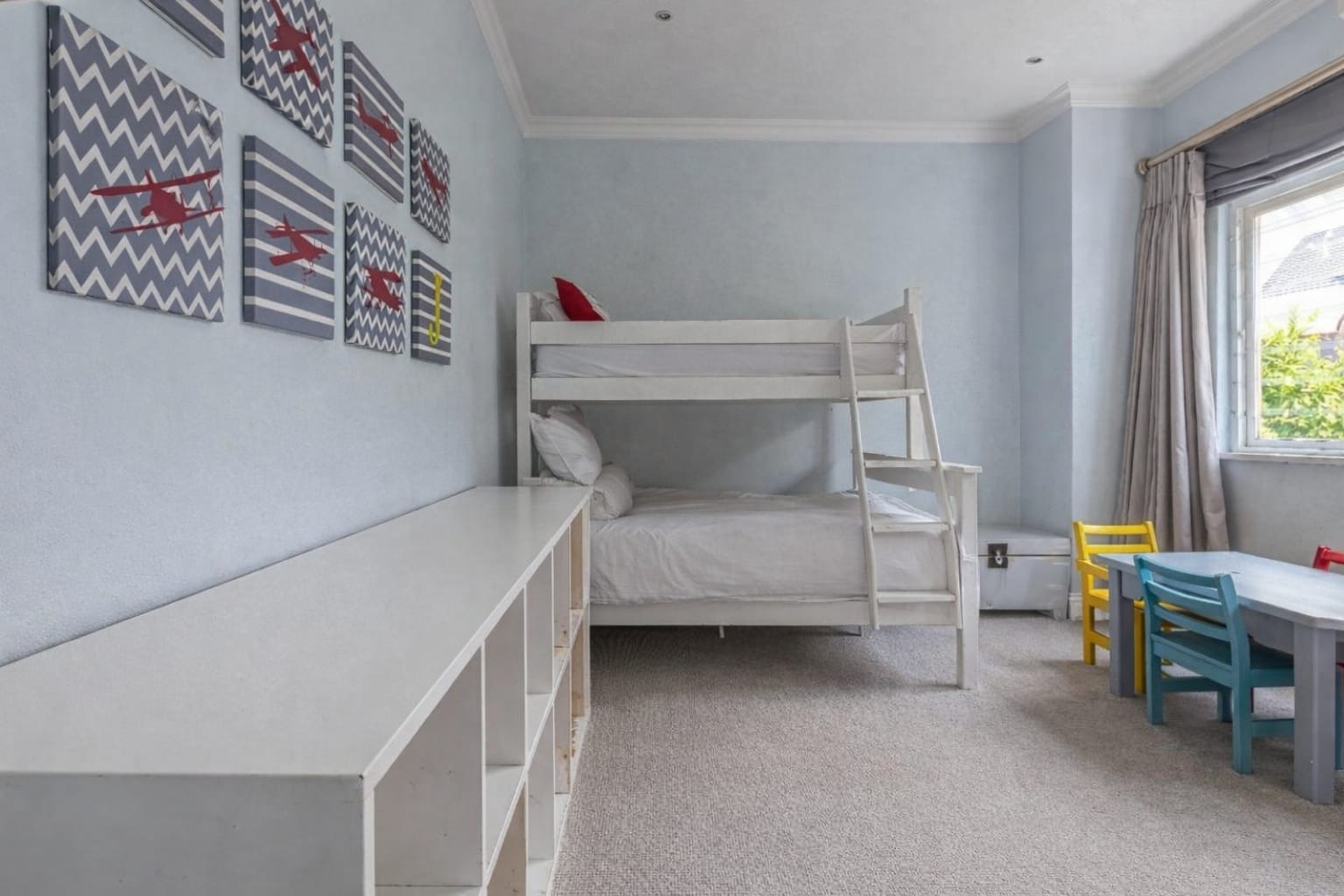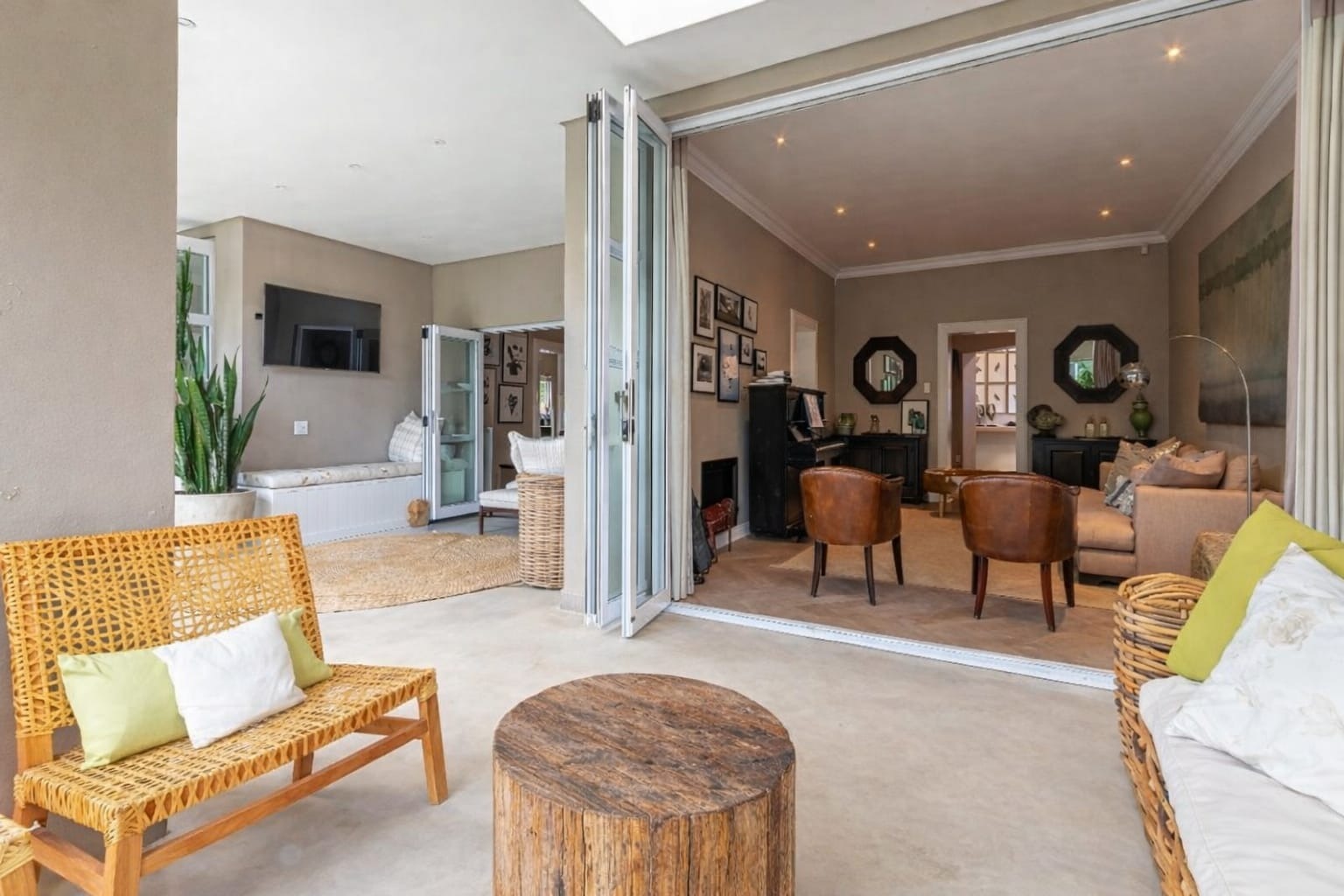 A striking double-volume entrance leads to multiple interleading living spaces that open onto a fully enclosed entertainer’s patio with fitted bar. The outdoor offering is outstanding, a decked lapa, pizza oven, braai area, relaxed seating zones and a dedicated children’s play area, all designed for year-round hosting.