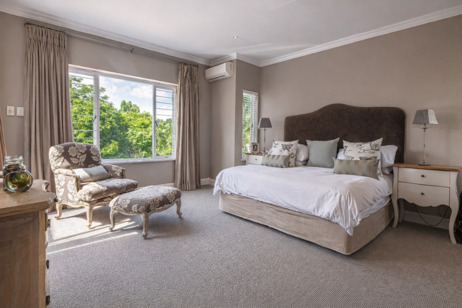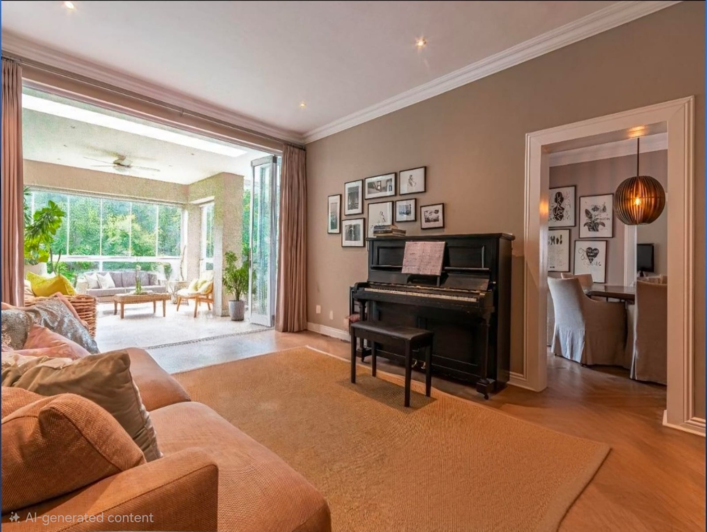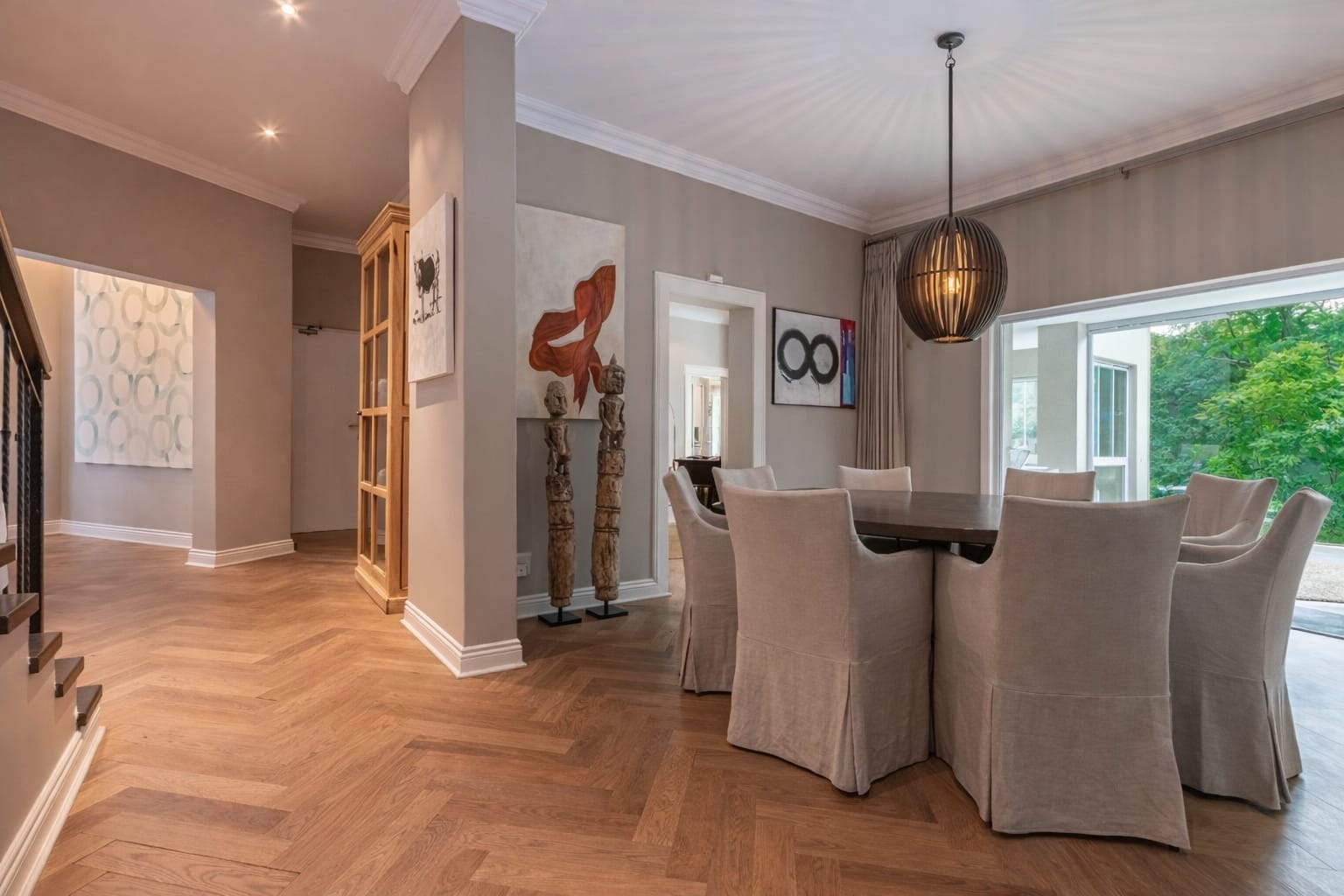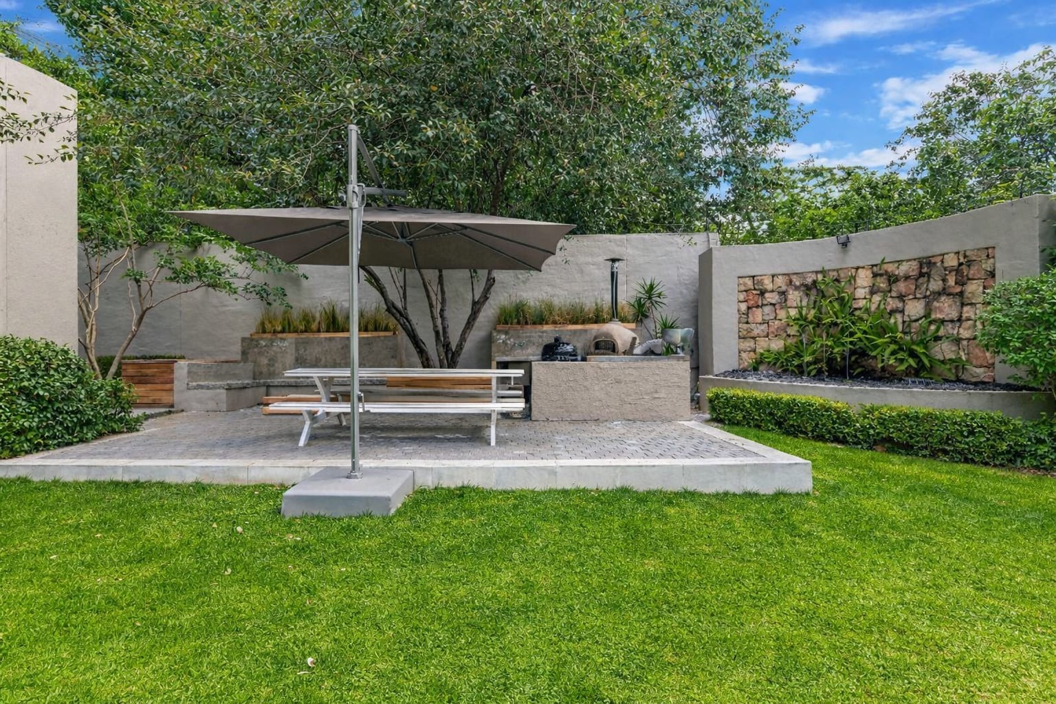 Positioned within an intimate estate of just four homes in sought-after Bryanston East, this sophisticated family residence delivers style, space and effortless indoor-outdoor living. Elegant herringbone oak flooring, high-end finishes and a fluid open-plan layout set the tone, while the expansive manicured garden, framed by mature trees and a heated statement pool, provides a private sanctuary.