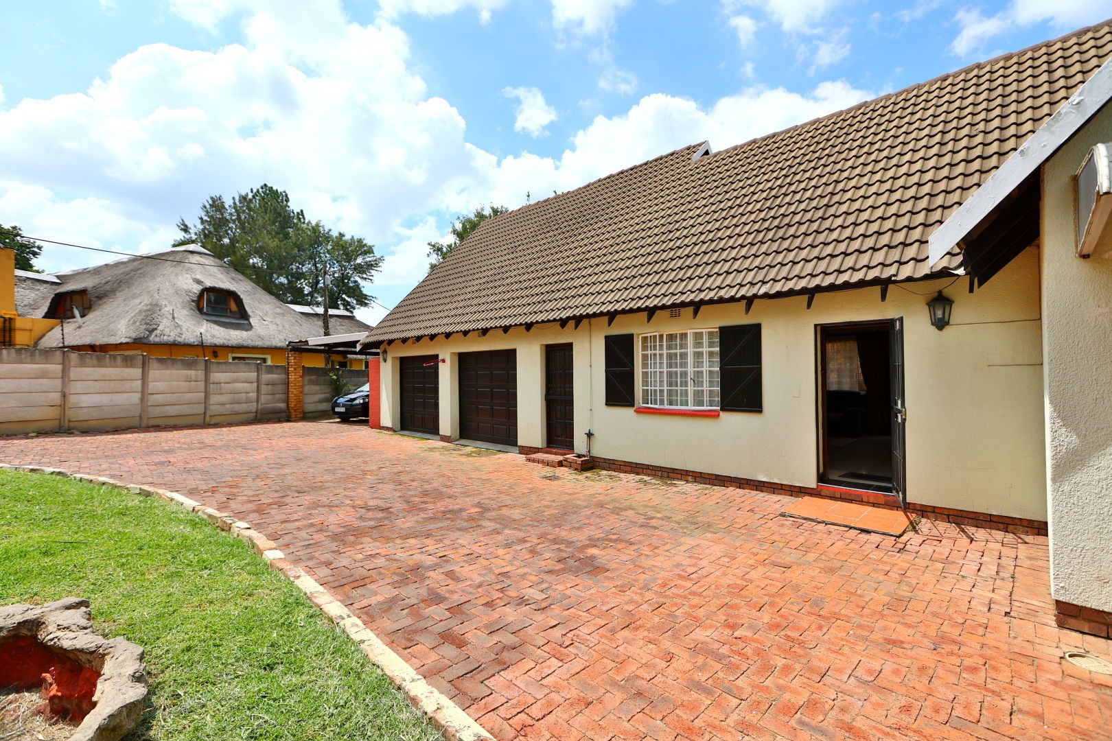 Discover this inviting single-story home nestled in the desirable suburb of Buccleuch, Sandton. The property immediately impresses with its welcoming kerb appeal, featuring a spacious paved driveway, a double garage, and an additional carport, ensuring ample parking for residents and guests. Mature trees and a well-maintained garden enhance the exterior, creating a pleasant first impression.