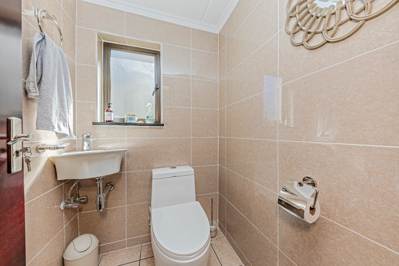 This contemporary home features an open-plan layout, seamlessly connecting the lounge, dining room, and a well-appointed kitchen. The kitchen boasts built-in appliances, ample storage, and a convenient pantry, catering to all your culinary needs. Tiled flooring throughout the main living areas ensures a sleek, low-maintenance finish, complemented by abundant natural light. A guest toilet and an entrance hall add to the functional design of the ground floor.