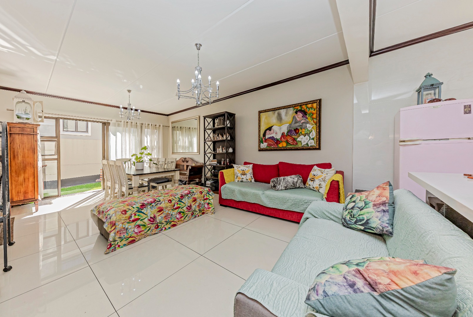 The property offers practical amenities including two garages and a paved driveway, providing secure parking. Step outside to a private garden space, perfect for relaxation or entertaining, complete with a built-in braai for outdoor cooking. Sliding doors enhance the indoor-outdoor flow, making this an ideal setting for a relaxed lifestyle. The low-maintenance garden ensures more time for leisure.