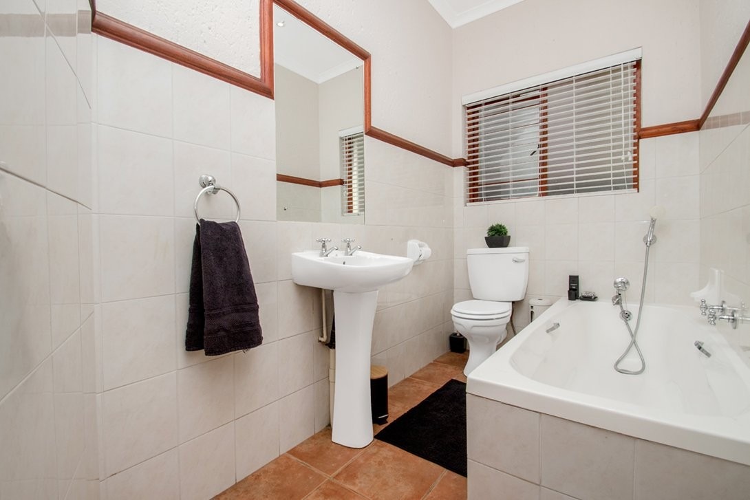The 2nd bedroom will easily accommodate a double bed. Close by is the 2nd bathroom which offers tub, basin and toilet.