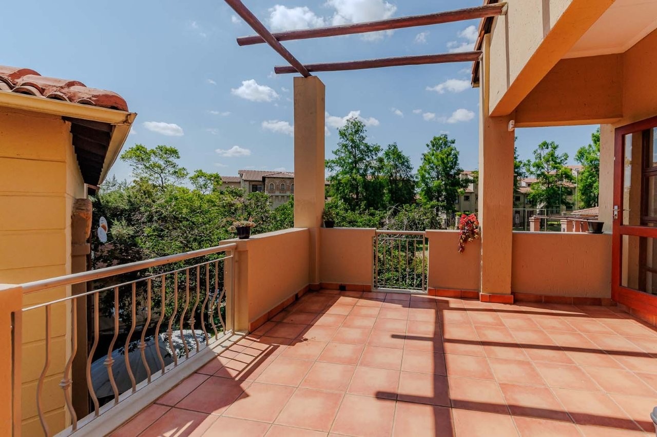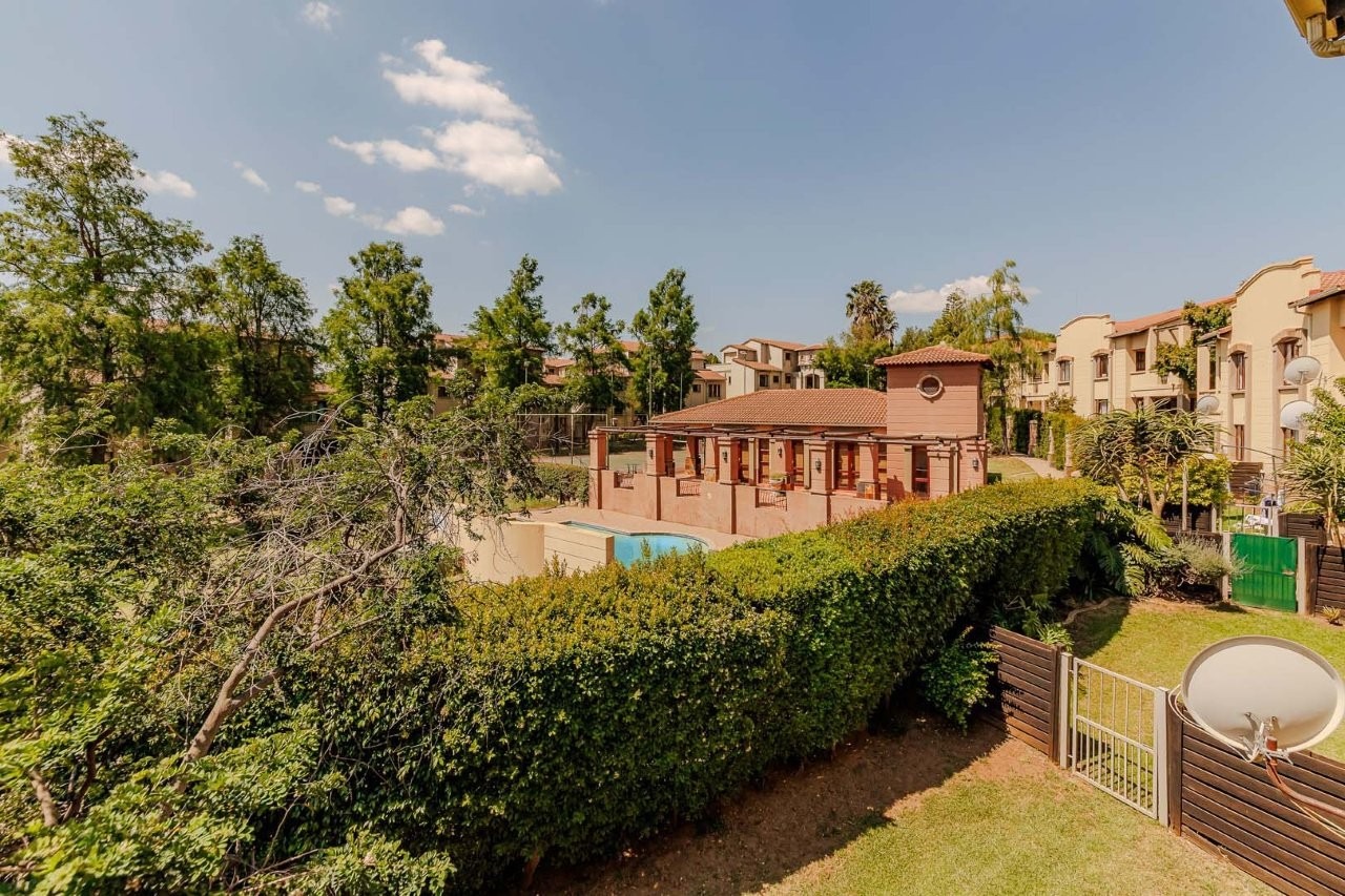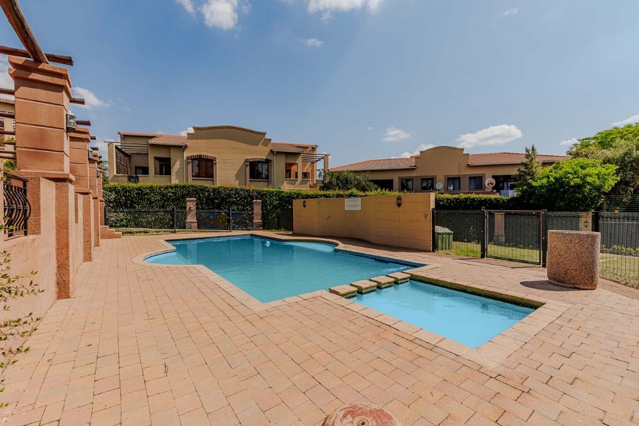 A village villa with a view. A bright jewel on the first floor, here's an immaculate, lock-up-and-go, two bedroom, two bathroom townhouse apartment enjoying quietude and privacy with an uninterrupted view of the beautiful, communal village green from its lounge and generously-sized terrace, and the pretty rooftops and gardens from the kitchen window. It is in an attractive, 24-hour-secured complex in Douglasdale, in walking distance from shops, restaurants, schools, a spa and a gym.
