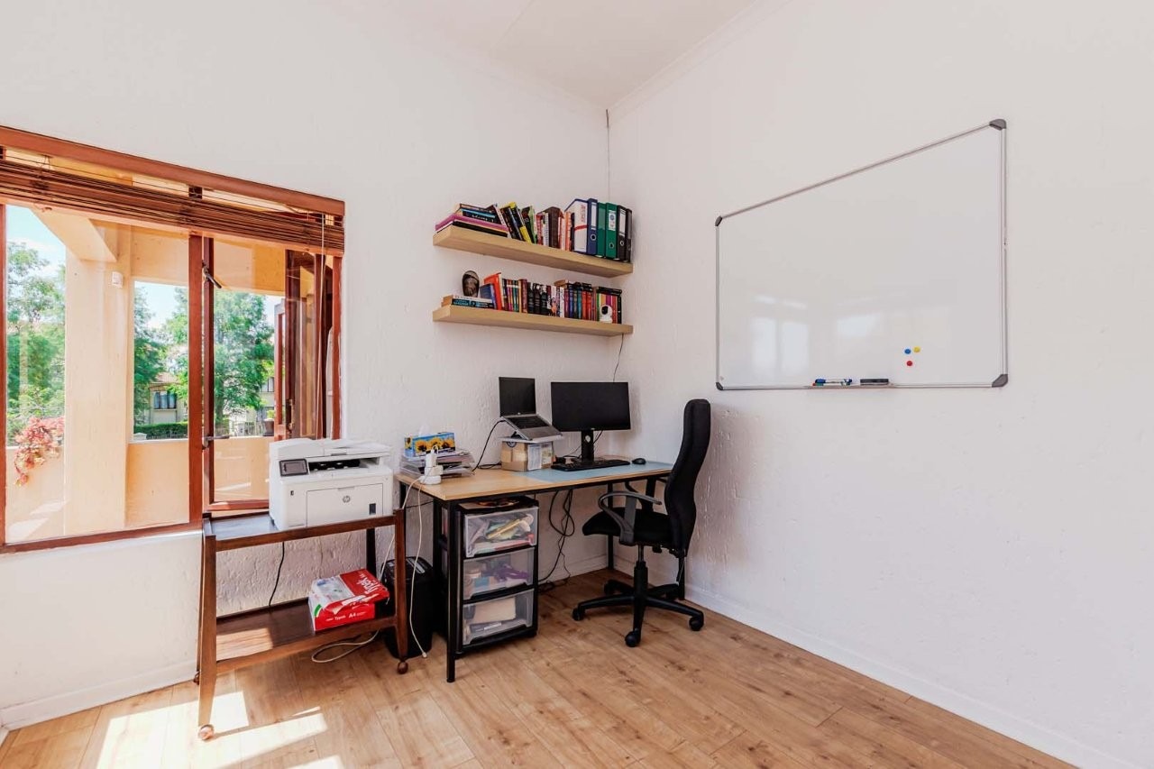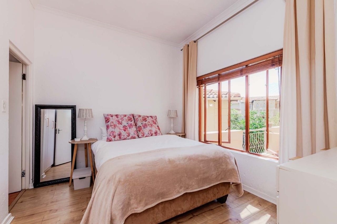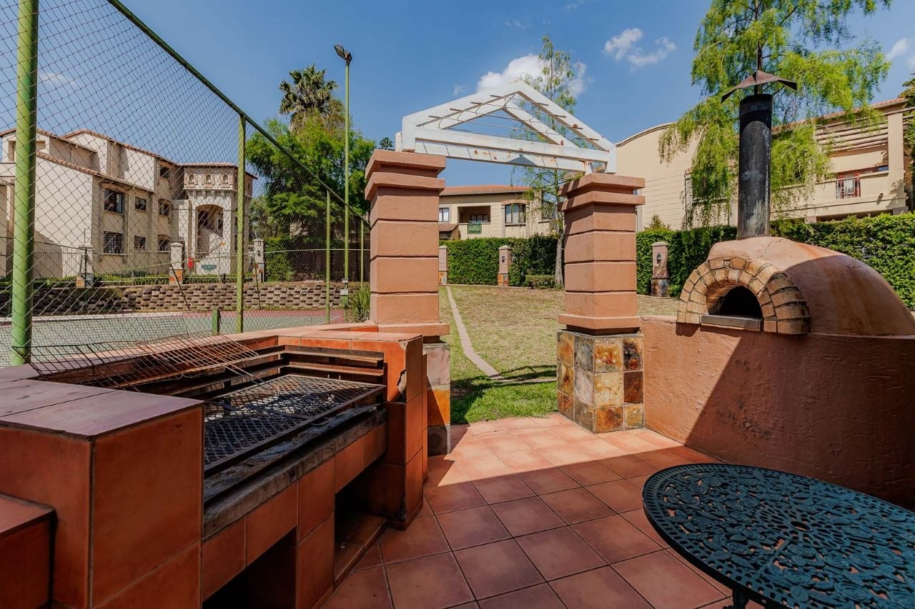 A village villa with a view. A bright jewel on the first floor, here's an immaculate, lock-up-and-go, two bedroom, two bathroom townhouse apartment enjoying quietude and privacy with an uninterrupted view of the beautiful, communal village green from its lounge and generously-sized terrace, and the pretty rooftops and gardens from the kitchen window. It is in an attractive, 24-hour-secured complex in Douglasdale, in walking distance from shops, restaurants, schools, a spa and a gym.