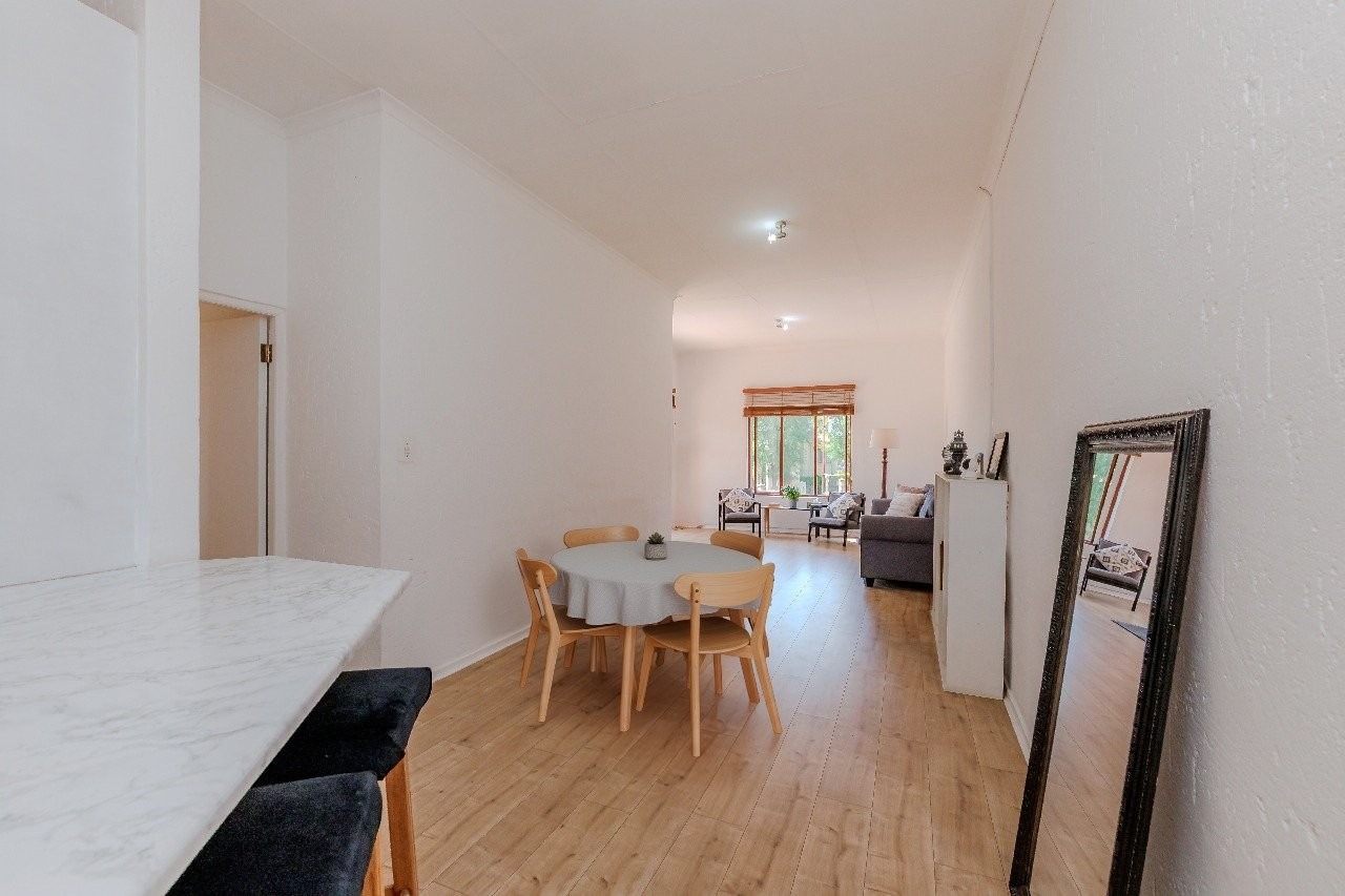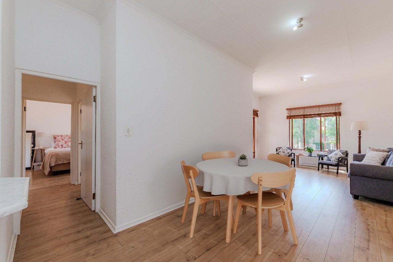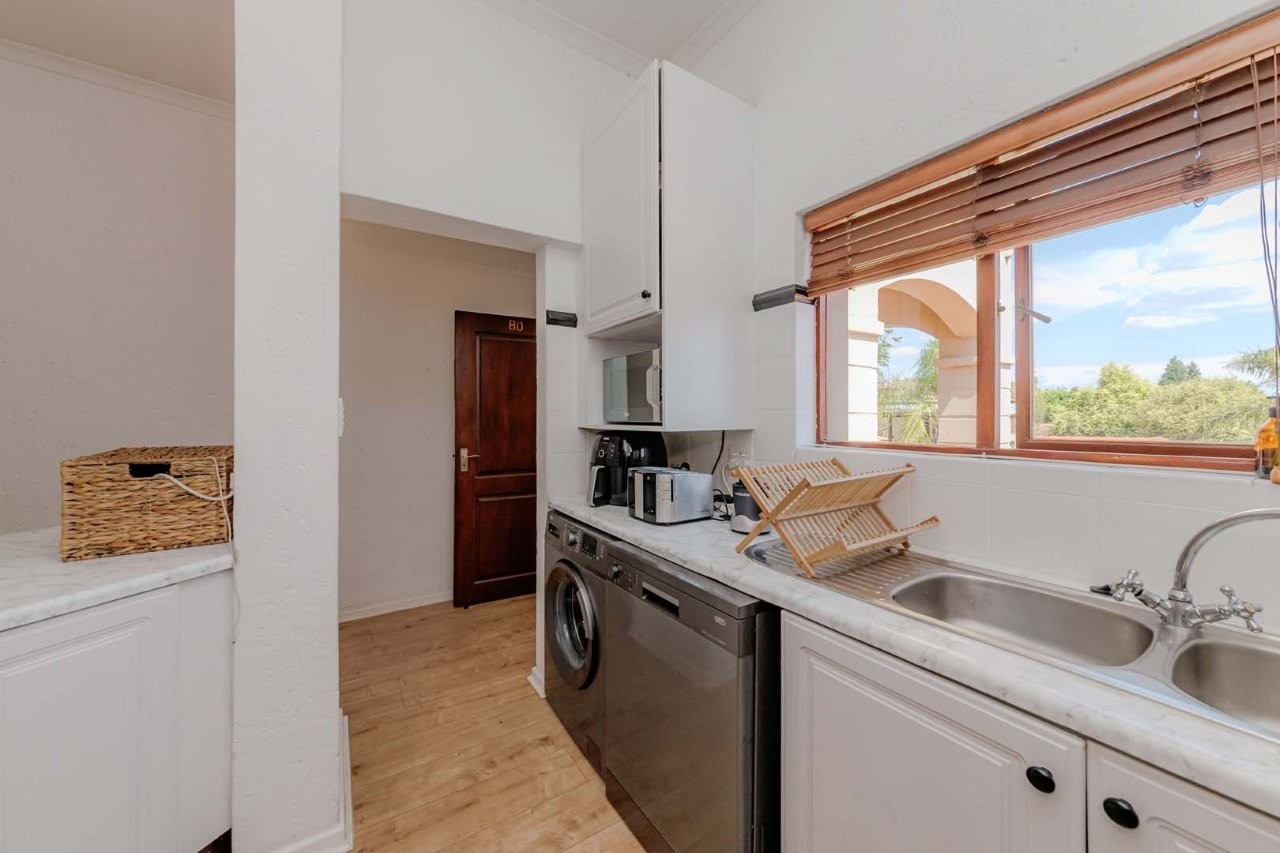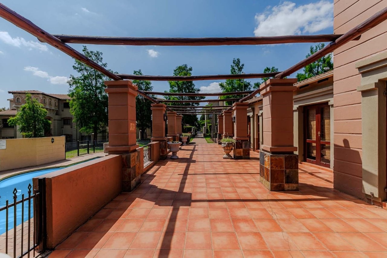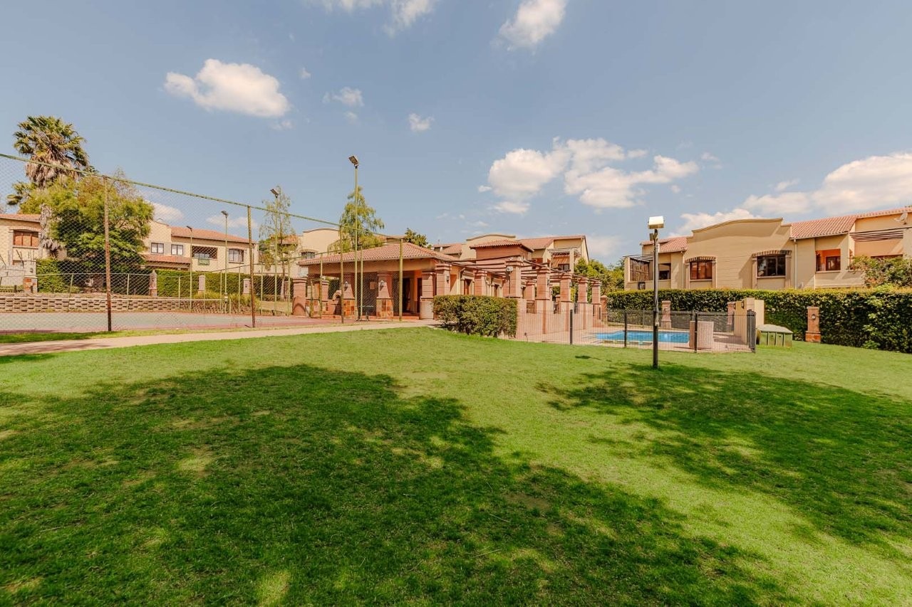 A village villa with a view. A bright jewel on the first floor, here's an immaculate, lock-up-and-go, two bedroom, two bathroom townhouse apartment enjoying quietude and privacy with an uninterrupted view of the beautiful, communal village green from its lounge and generously-sized terrace, and the pretty rooftops and gardens from the kitchen window. It is in an attractive, 24-hour-secured complex in Douglasdale, in walking distance from shops, restaurants, schools, a spa and a gym.