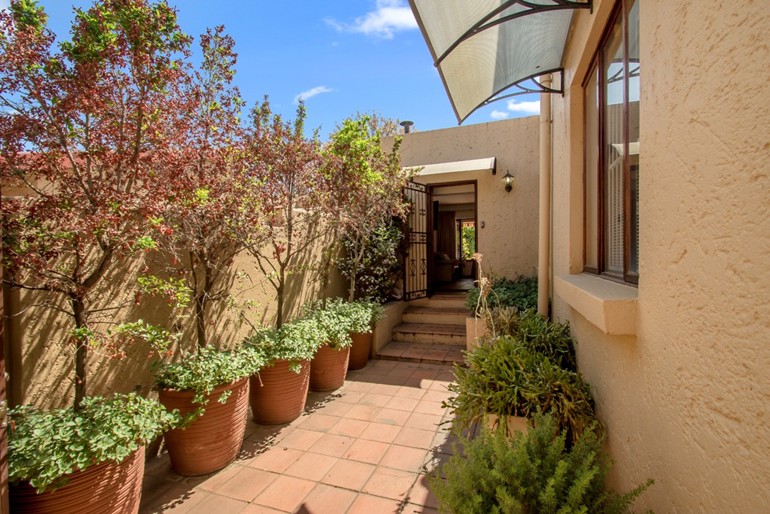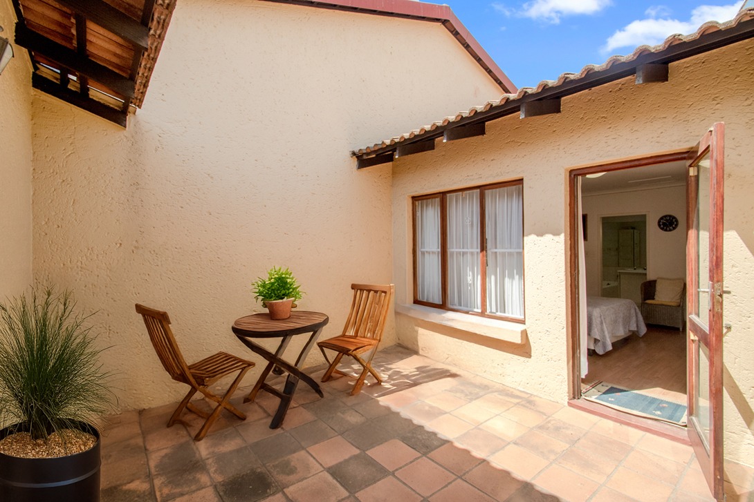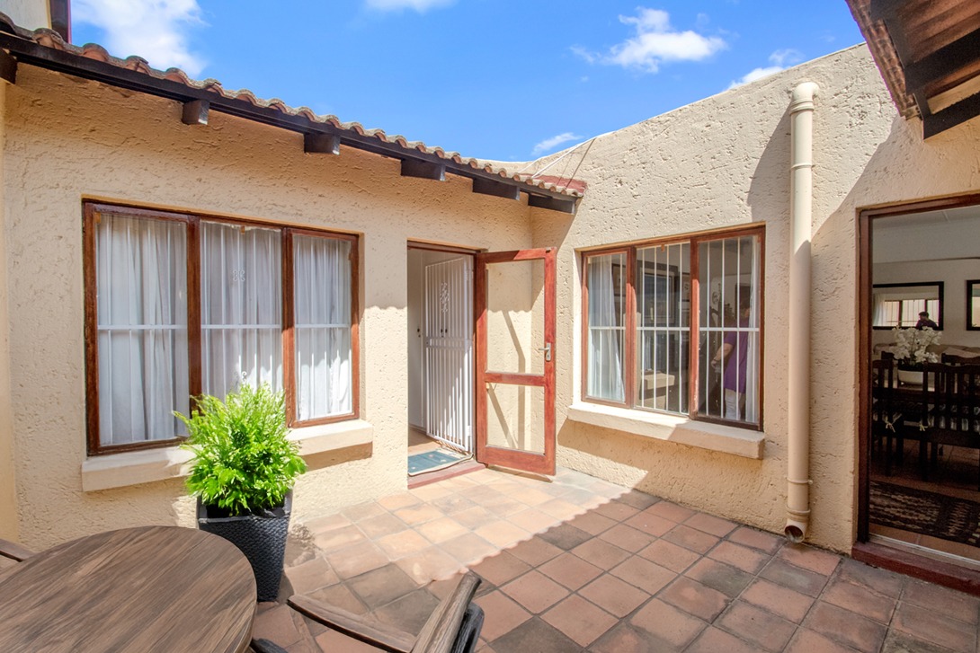 Staff in the complex sweep the outside entertainment areas of the house and the Body Corporate maintains the exterior of the entire house and garage from the roof tiles to the geyser, wall plaster and paint, and pays for your water consumption and structural building insurance on the house from the levies. Maintenance of the wooden doors and window frames is shared 50/50 by the owner and Body Corporate. The Body Corporate also maintains the communal swimming pool area, the roadways, the complex's street lights and security equipment, and pays for the security guards, etc.