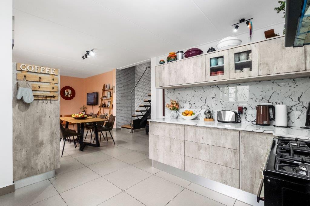 Open-Plan Living: The lounge and dining room are bathed in natural light, creating an airy and welcoming atmosphere. These spaces seamlessly flow through sliding doors to the sizeable pet-friendly garden, where your furry friends can play freely. Host gatherings on the open and covered entertainer’s patio, complete with a built-in braai. this space is designed for enjoyment.