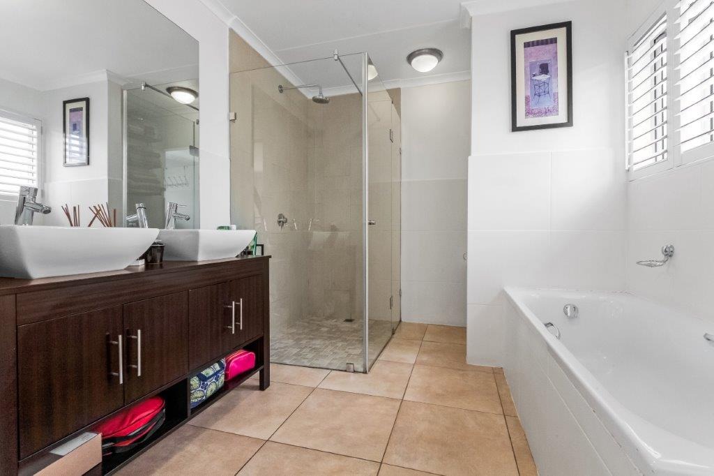 The 2nd and 3rd bedrooms share a modern bathroom with a shower, basin, and toilet.