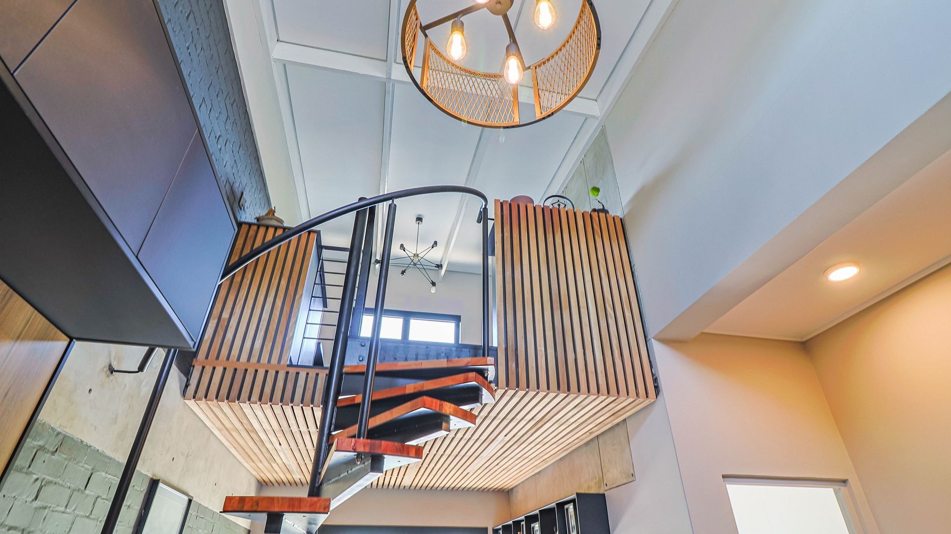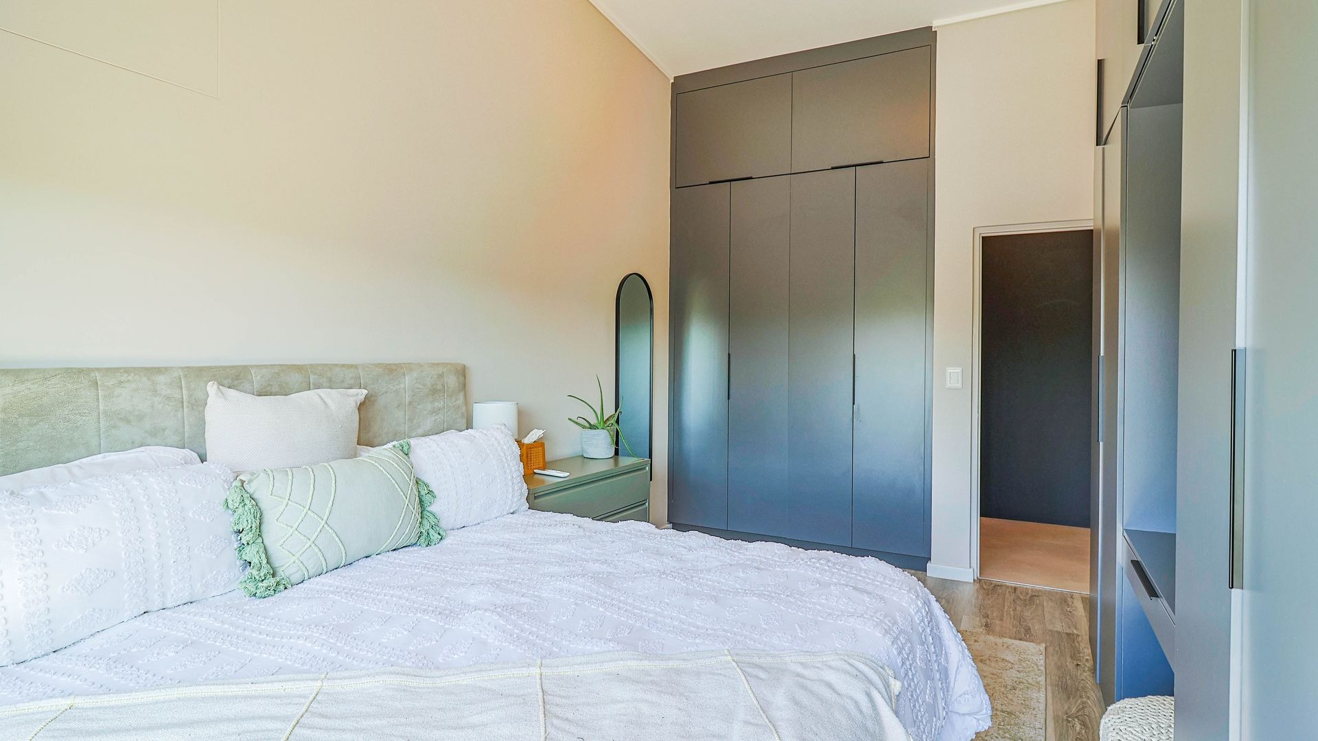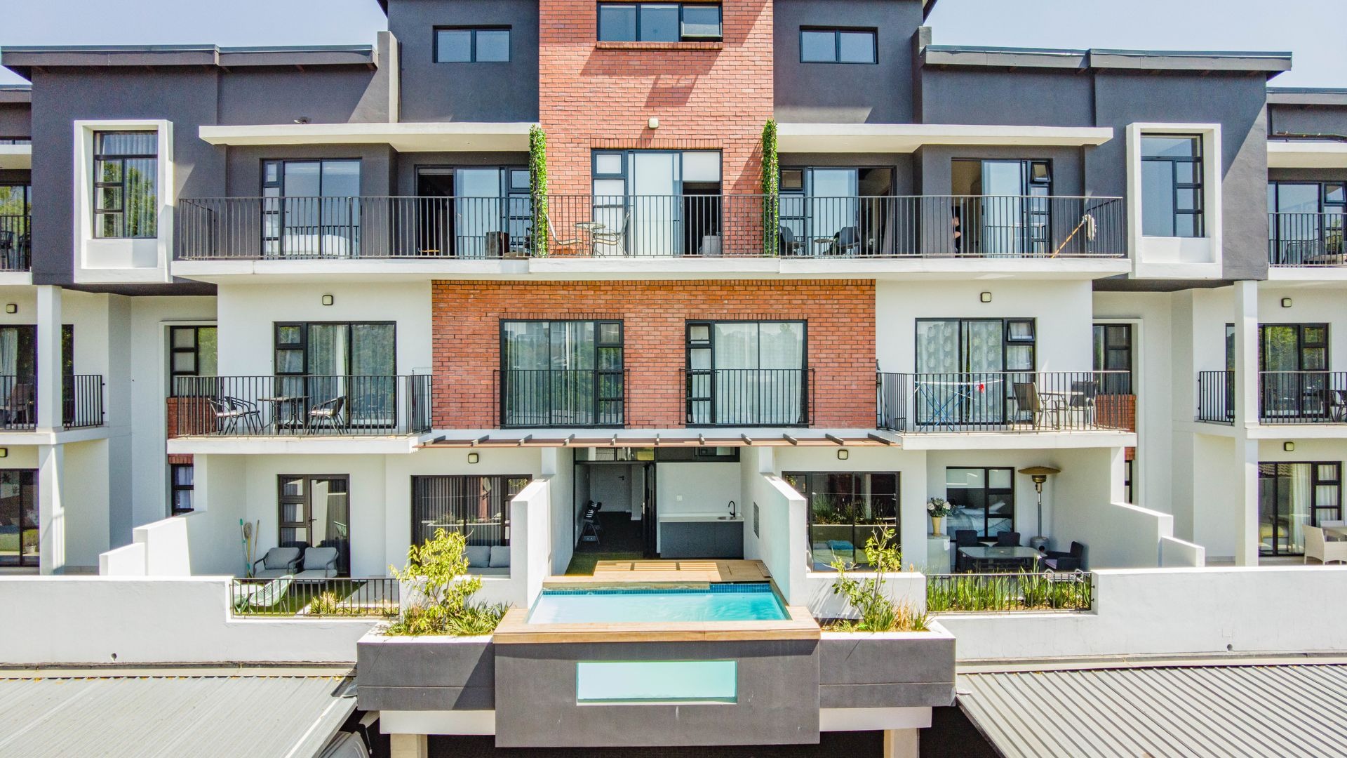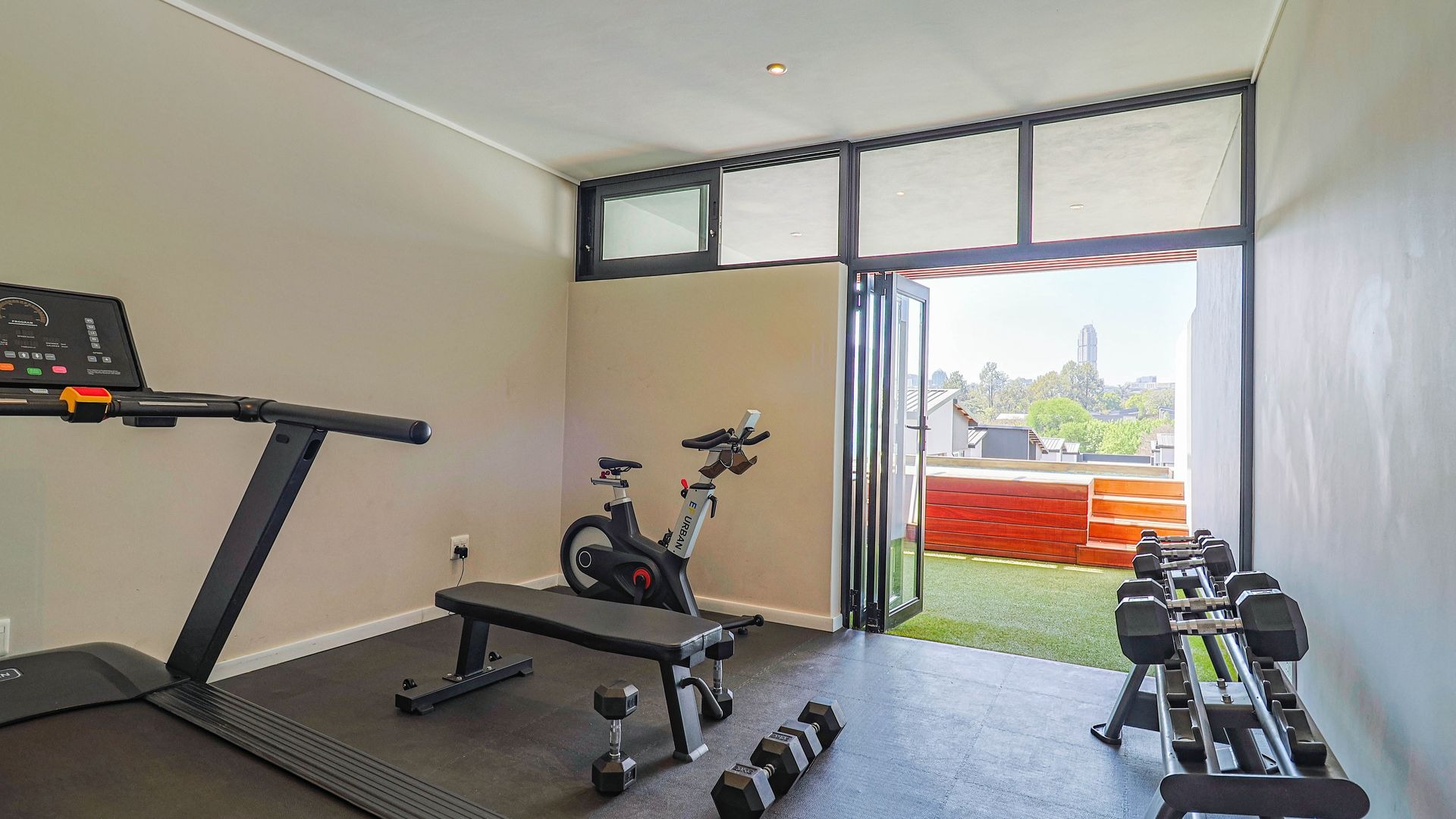 Open plan lounge elegantly decorated with built in Tv stand and shelving. Wooden roof for added beauty and design. Leads out onto a breath taking large balcony with views of Sandton's skyline. Built in loft makes this one bed so spacious.