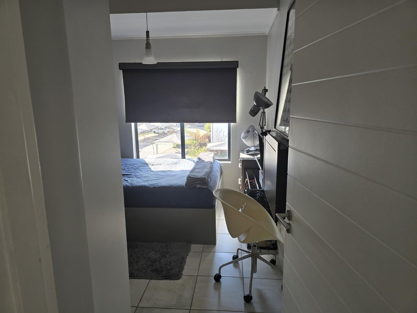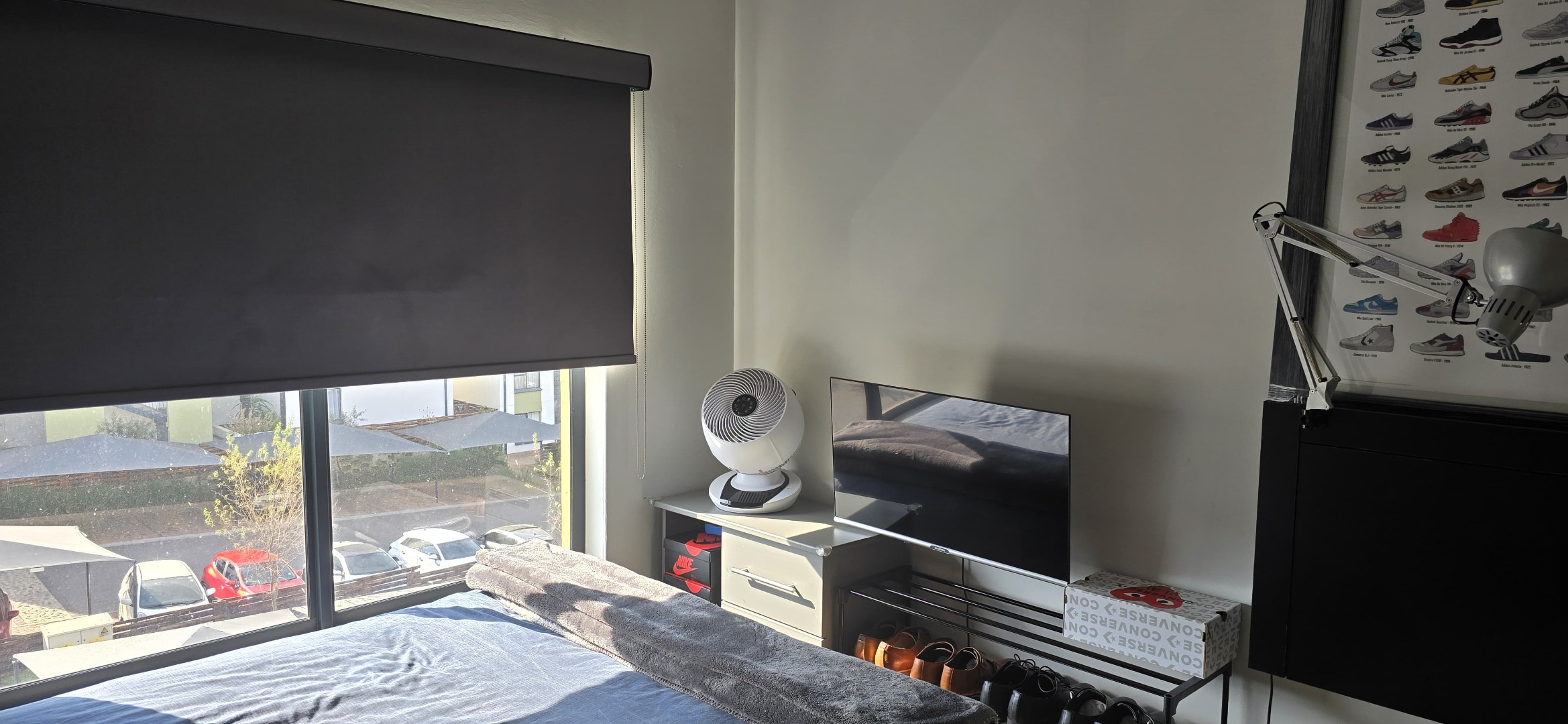 Spacious bedroom with natural light and built-ins