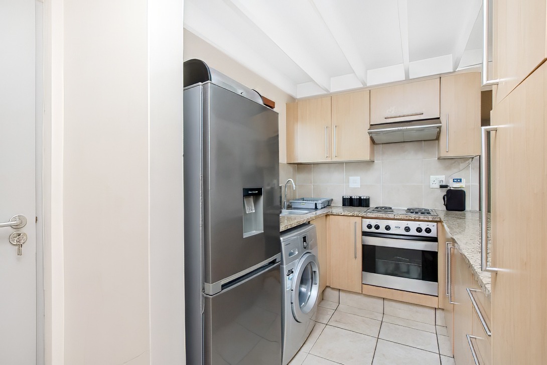 - The modern kitchen offers generous counter space, a breakfast nook, electric hob and oven, a single-door fridge, and space for one under-counter appliance. The kitchen flows seamlessly into the dining area and downstairs lounge, creating a functional and welcoming living environment.