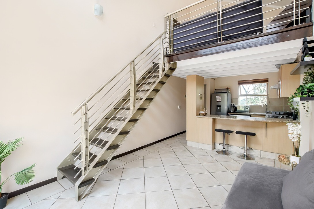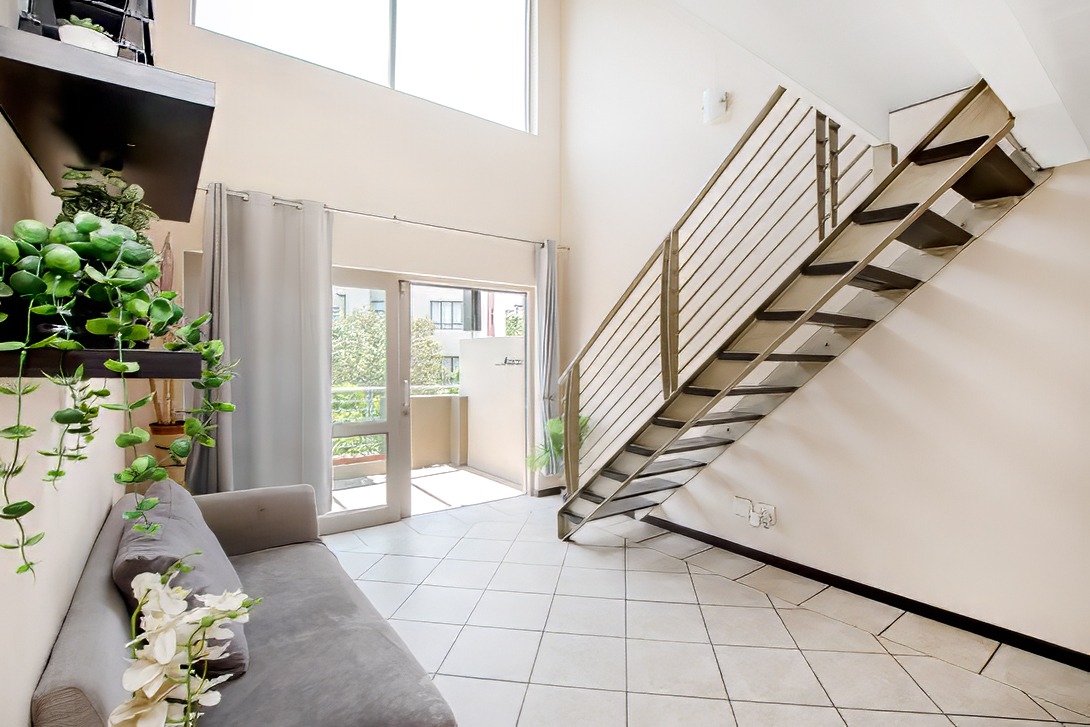 This well-presented top-floor 1-bedroom, 1-bathroom loft apartment is situated within the sought-after Tinza Lifestyle Estate in Lonehill, offering a secure, low-maintenance lifestyle