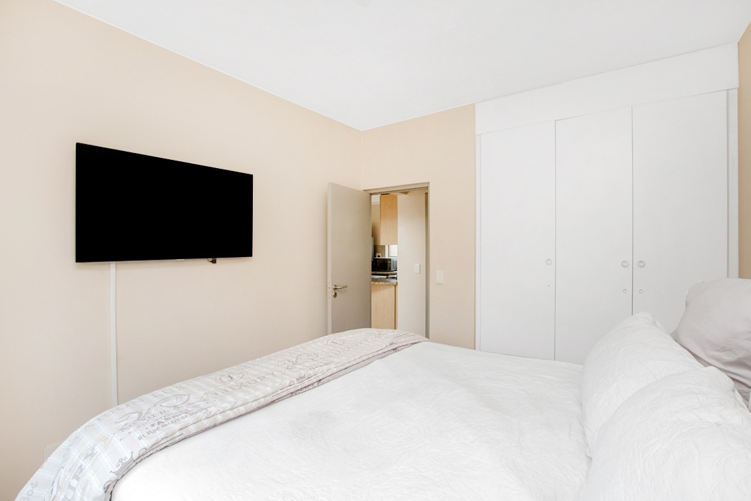 The bedroom is well-sized, filled with natural light, and includes ample built-in cupboard space.
