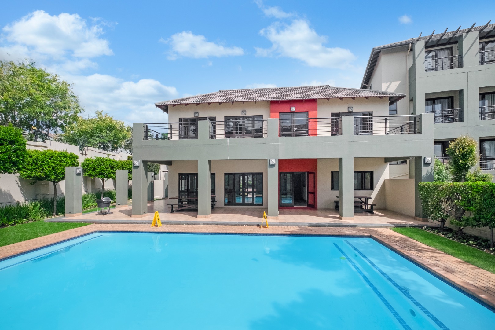 Residents enjoy access to a well-maintained clubhouse with a swimming pool, braai facilities, and landscaped gardens—key lifestyle features that attract both long-term owners, tenants or short-term guests.