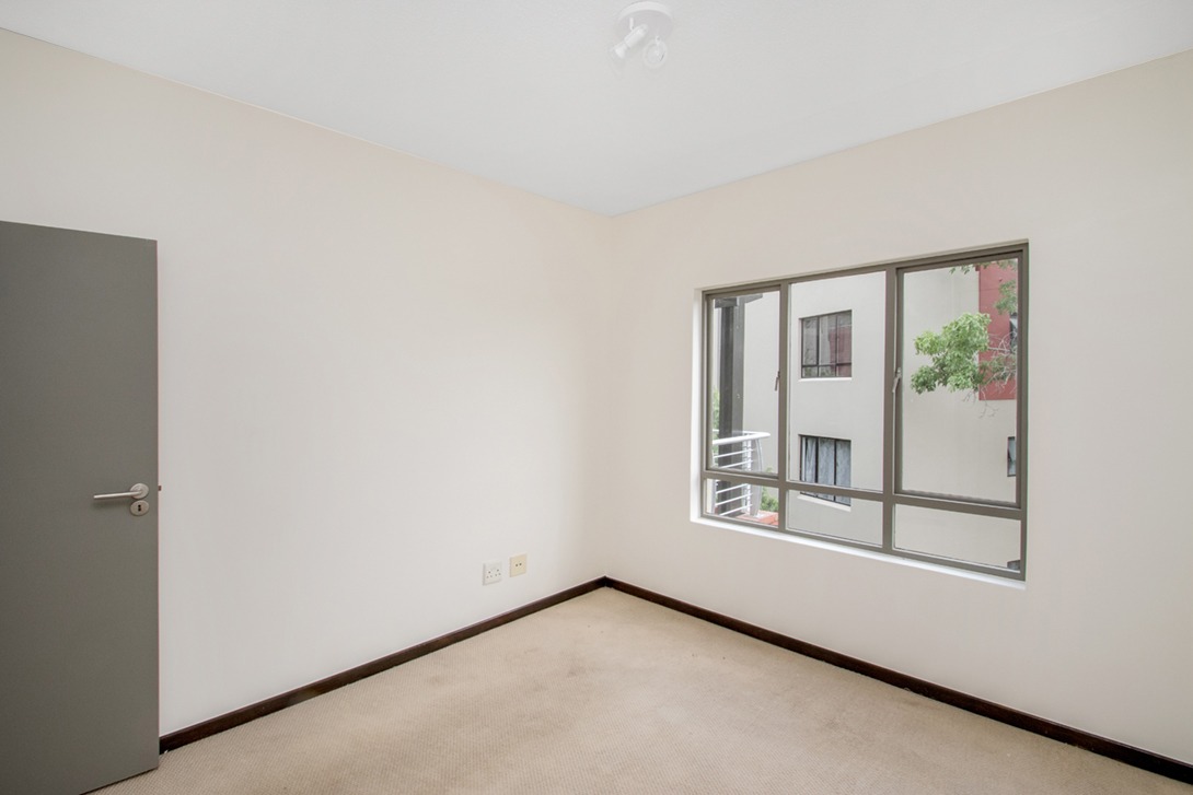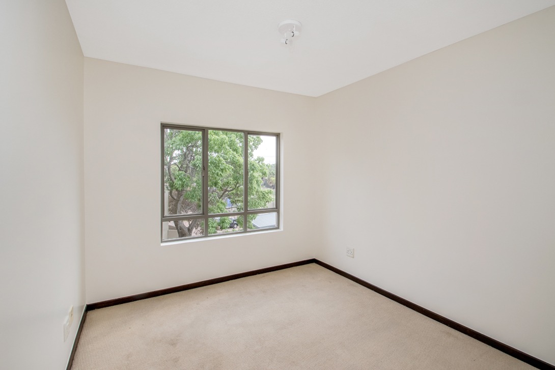 The spacious bedroom is light-filled and offers ample built-in cupboard space.