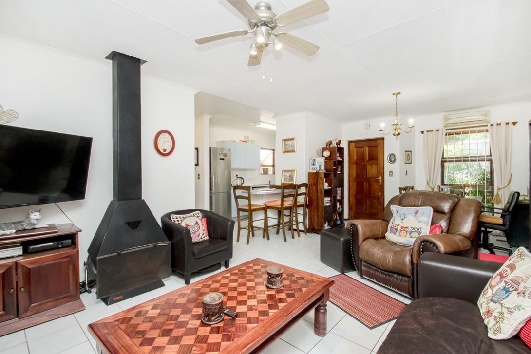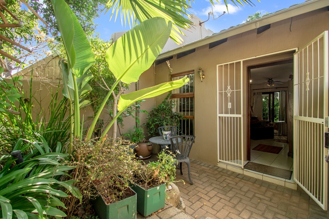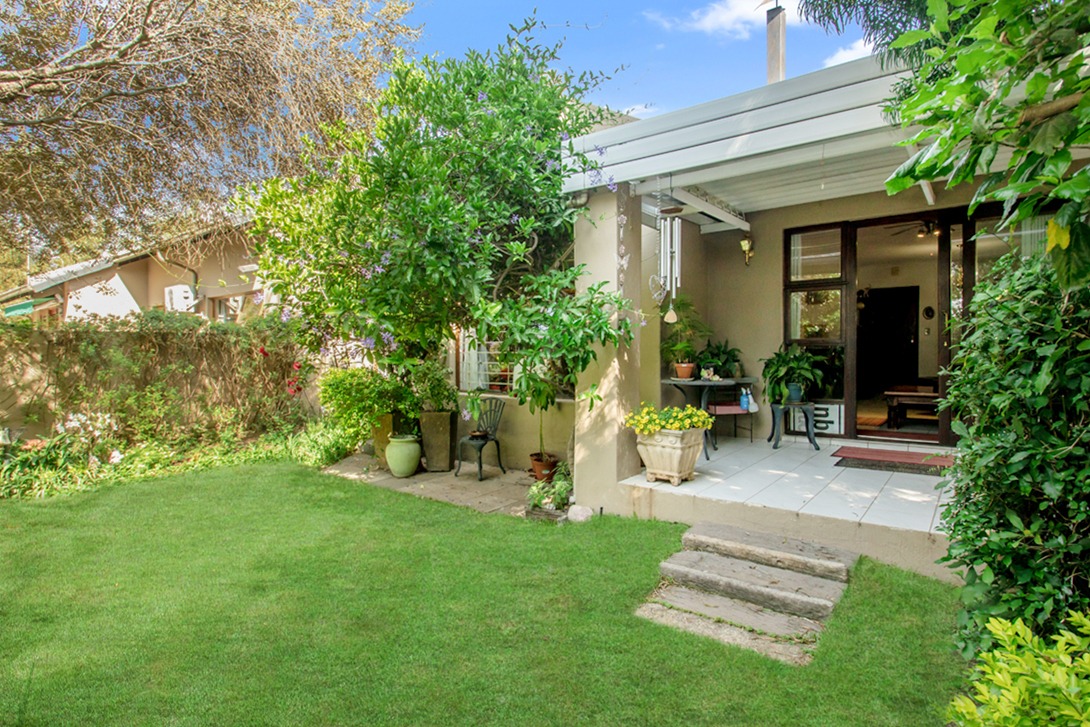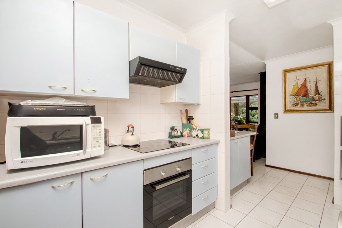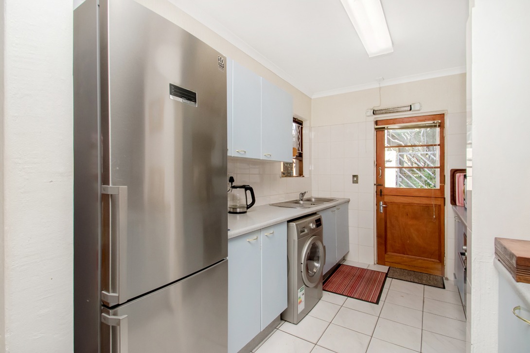 - Kitchen with breakfast nook, ample cupboard space, provision for one undercounter appliance (with potential to install a second), single-door fridge, electric stove, and oven. Kitchen opens onto a neat courtyard with a wendy house for extra storage.