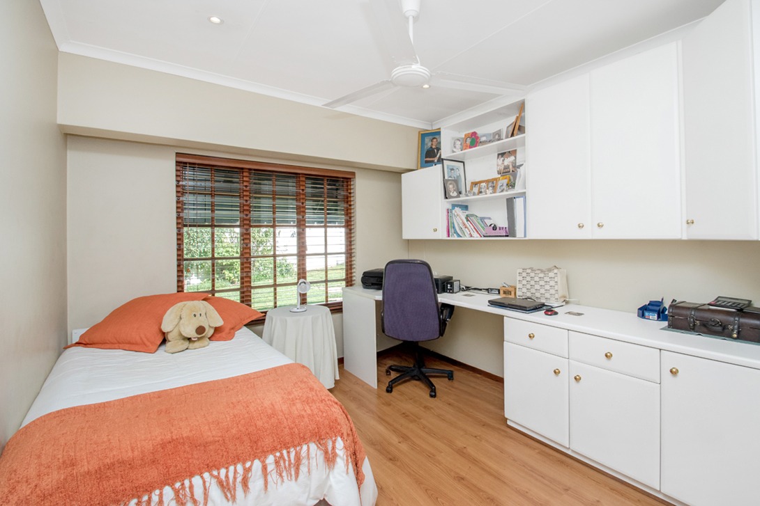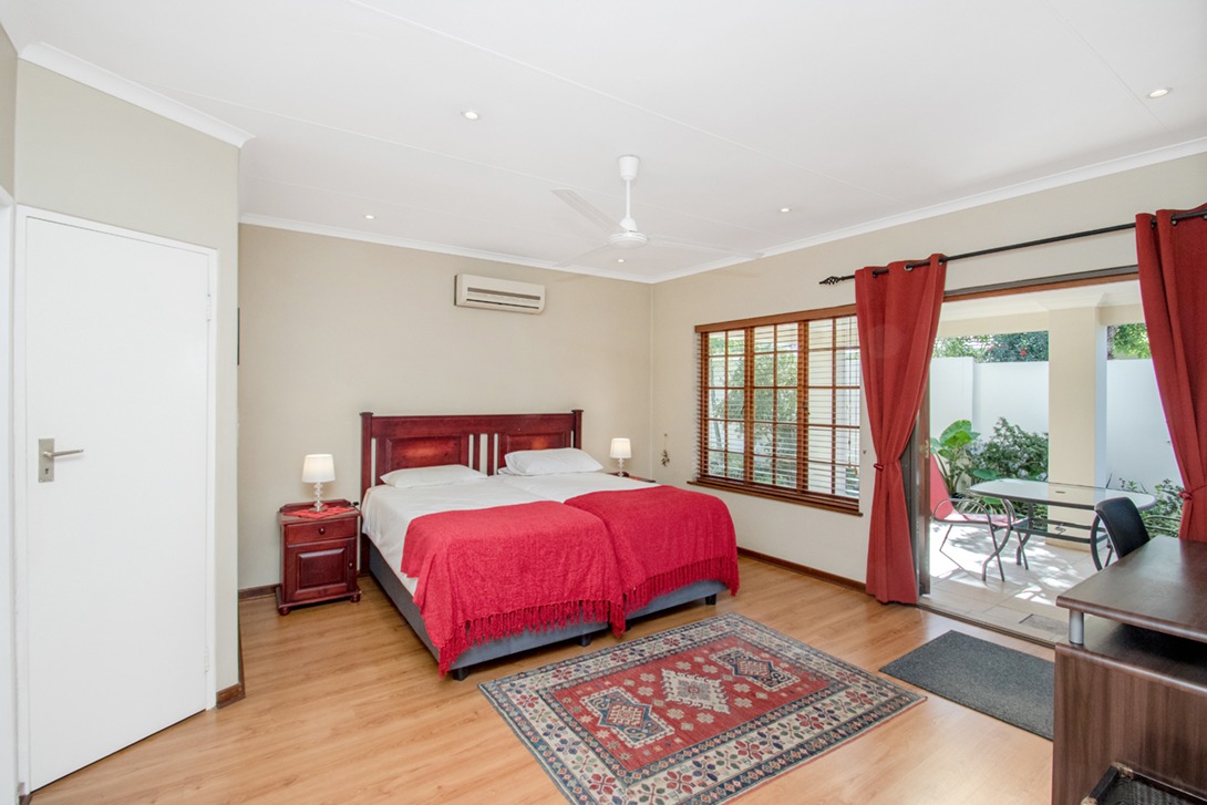 · Bedroom 2: Generously sized, with built-in cupboards and views of the garden and pool.
