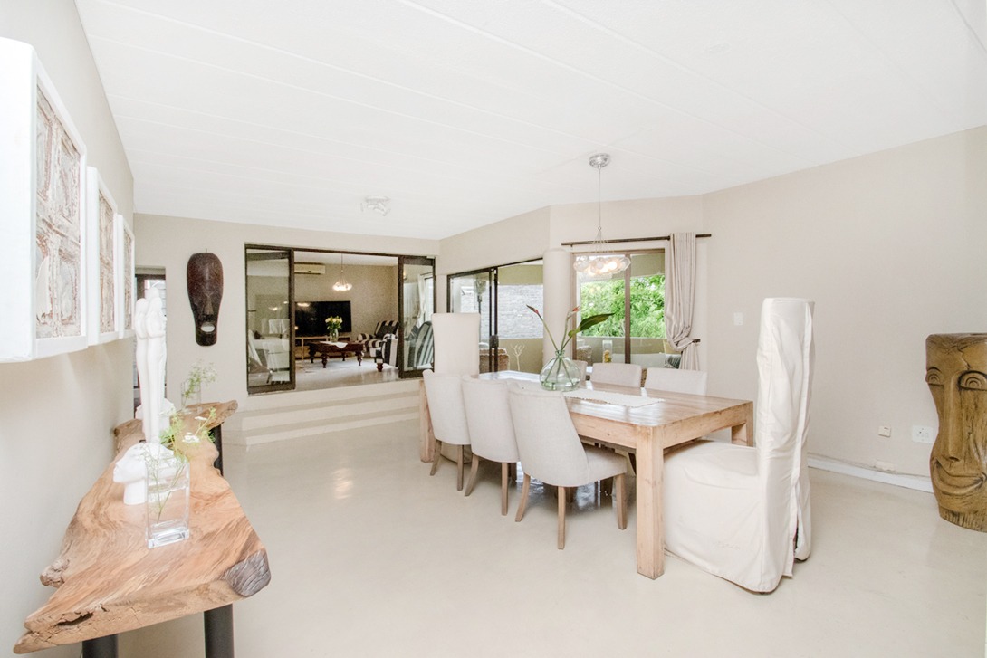 - Formal lounge and large dining area, opening to a covered balcony with built-in braai and river views