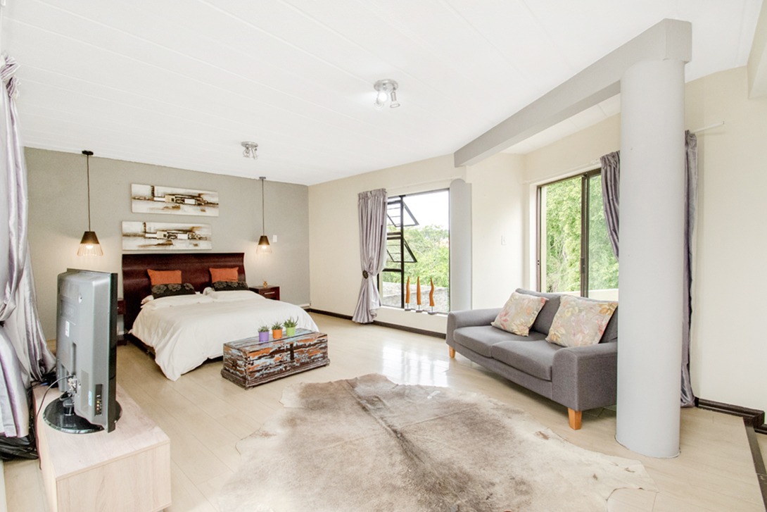 - Versatile TV lounge/home office leading to balcony with built-in braai and scenic views