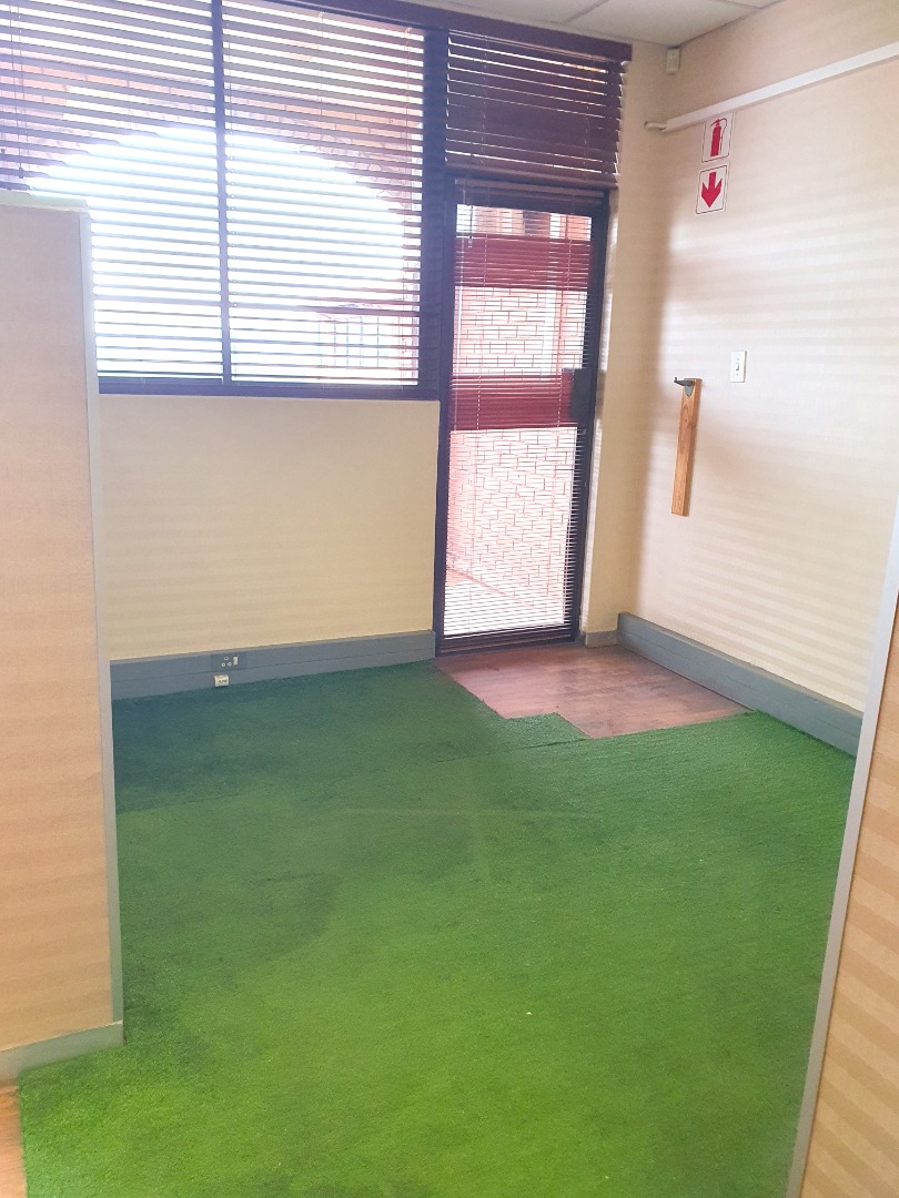 The office features an adaptable open-plan layout with durable laminated flooring, currently thoughtfully subdivided into six smaller, functional offices. A private balcony extends from the space, offering impressive views over the prestigious St Stithians school and the iconic Sandton City skyline. Essential amenities include a dedicated kitchenette and a secure, lock-up computer server room, complemented by a private gated passage entrance for enhanced exclusivity.