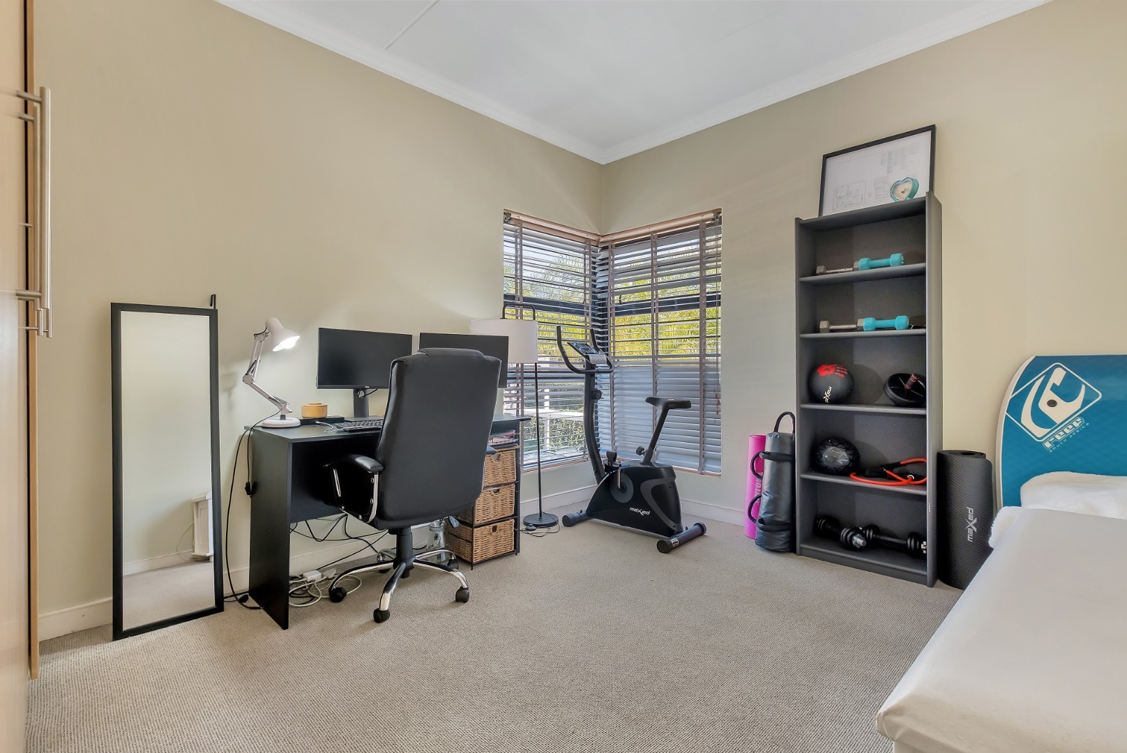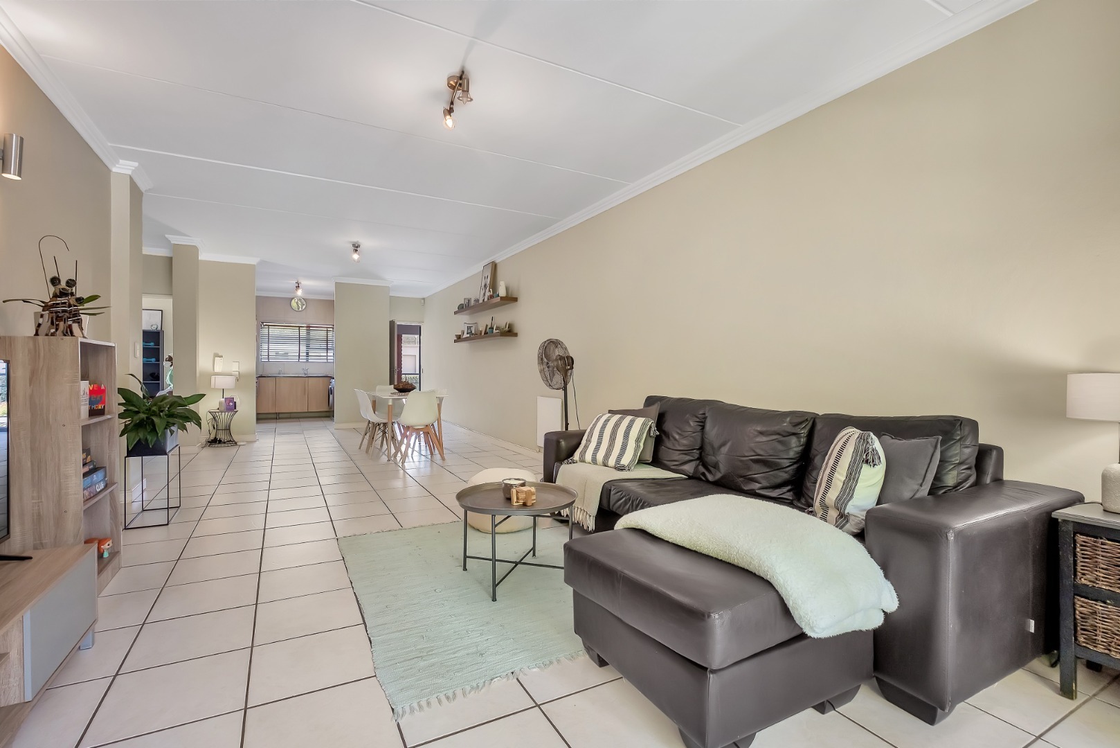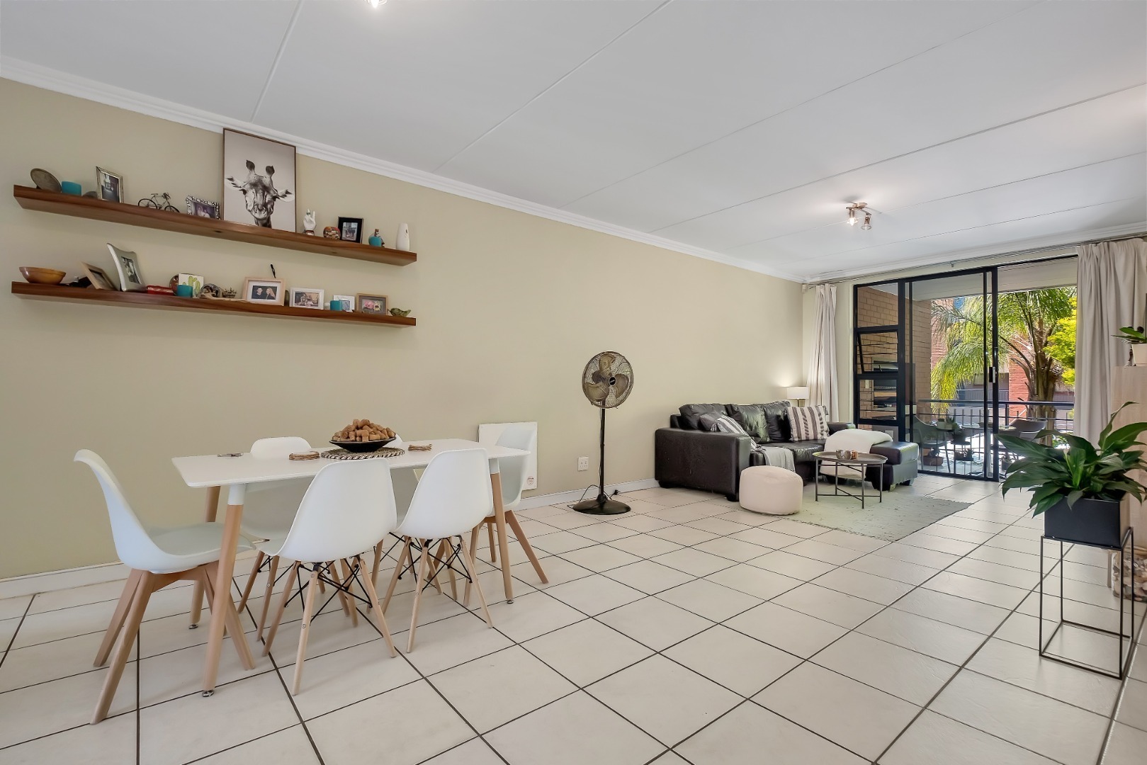 Inside, the spacious, light-filled living area easily accommodates both a lounge and dining space and flows through sliding doors onto a generous private balcony with a built-in braai, creating the ideal setting for entertaining.