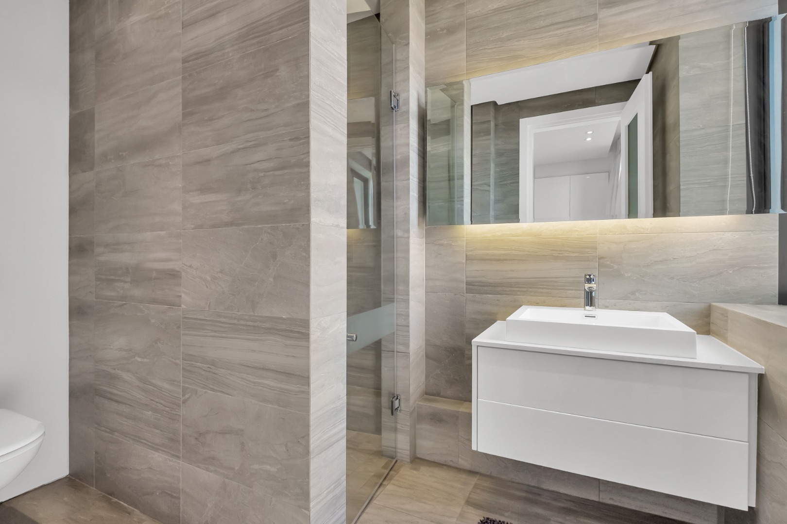 • finished with beautiful stone floor tiles and plush carpets, high gloss cupboards and modern lighting