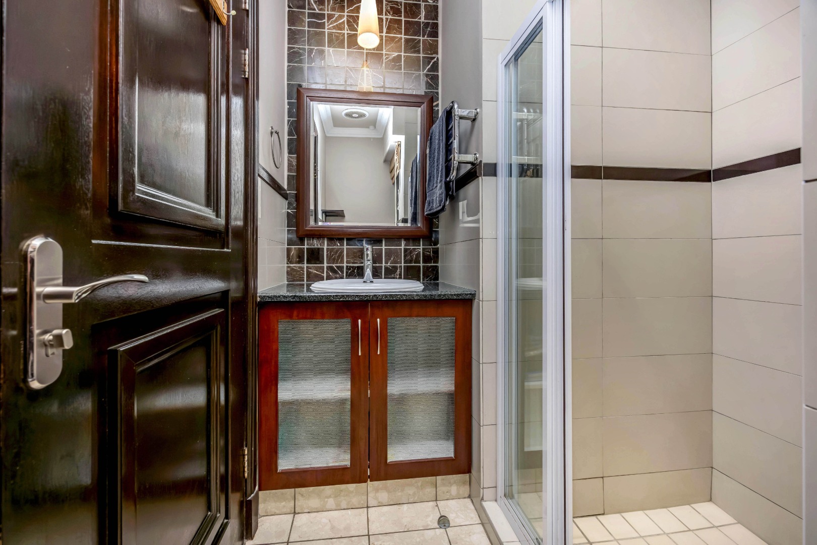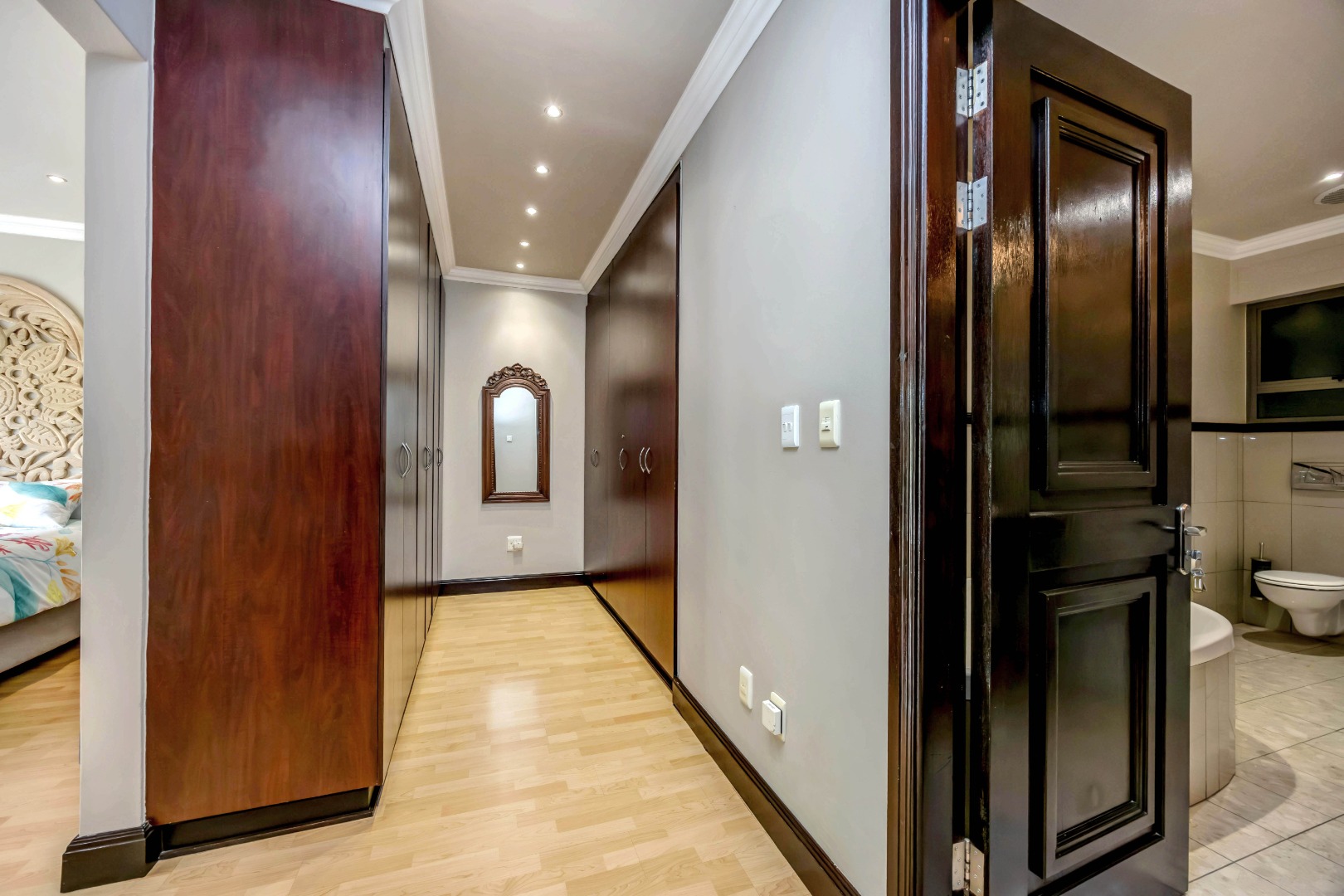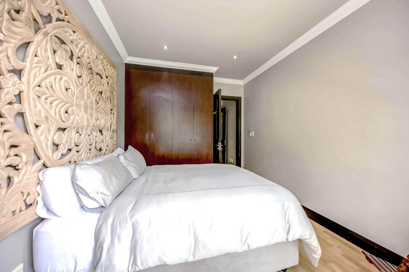 The apartment offers three well-sized bedrooms, including two with elegant en-suite bathrooms, ensuring comfort and privacy for residents. The luxurious main suite is a true retreat, complete with a walk-in closet and a spa-inspired en-suite bathroom featuring double vanities and heated floors. From the main bedroom balcony, you can enjoy stunning views of the Sandton City skyline an impressive backdrop to everyday living.