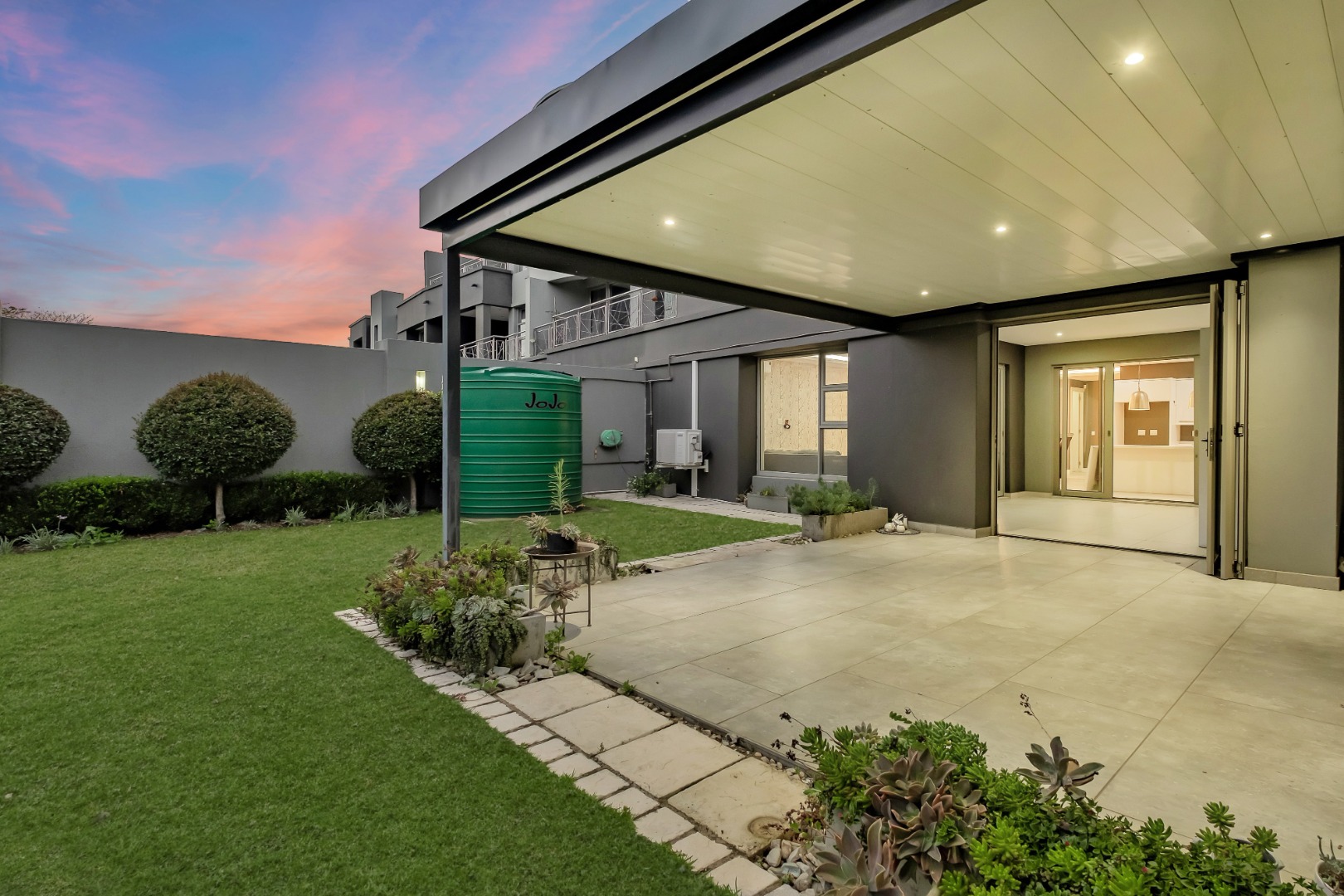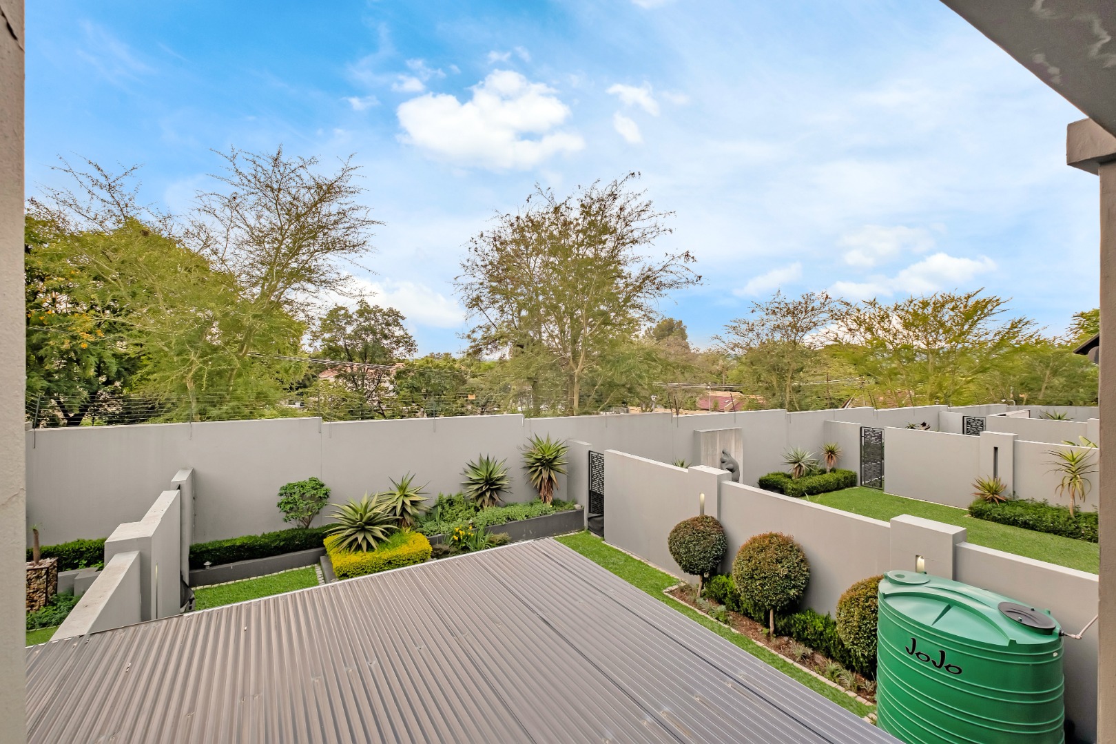 • Water backup: 5250L Jojo tank connected to the municipal supply