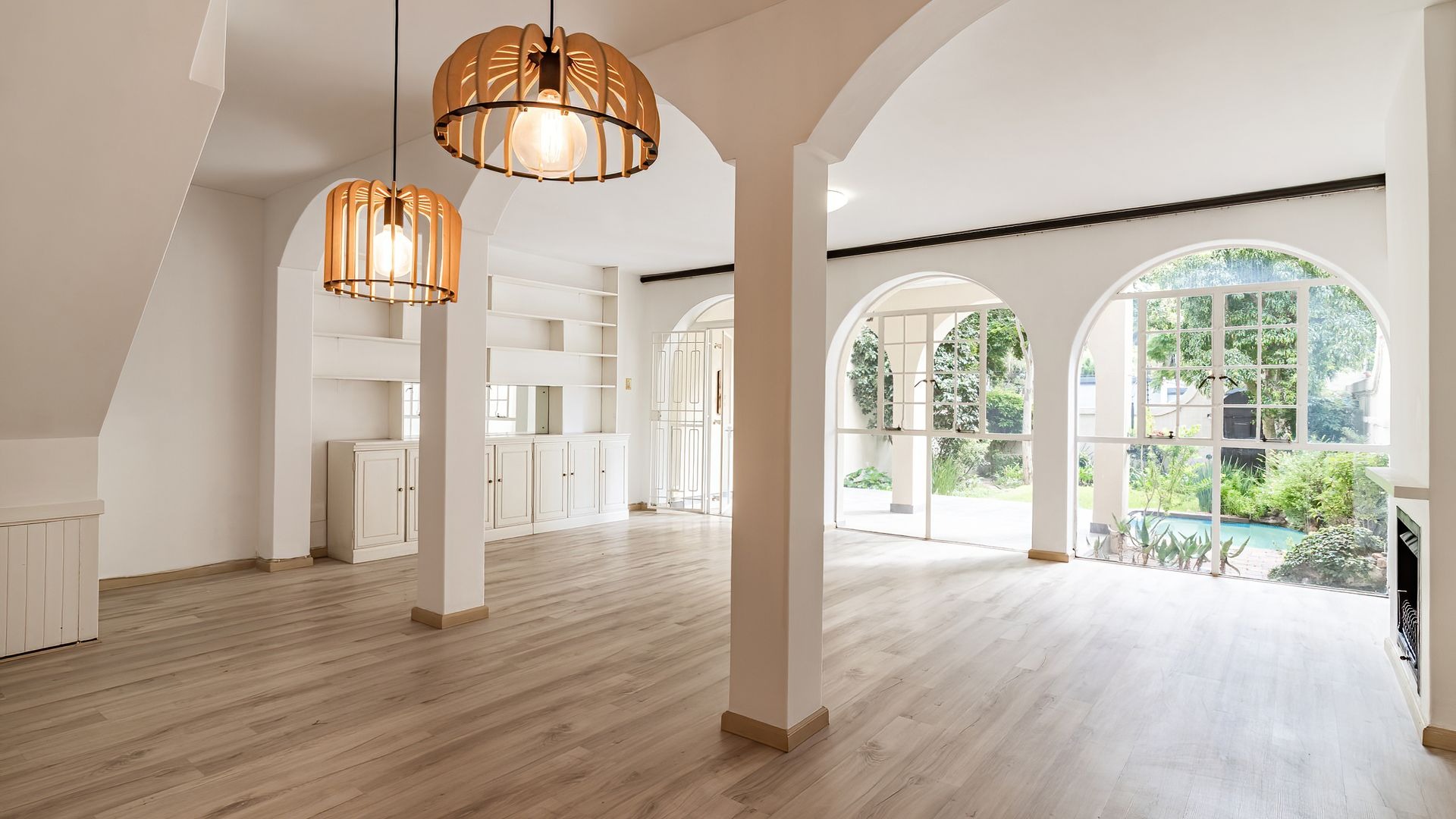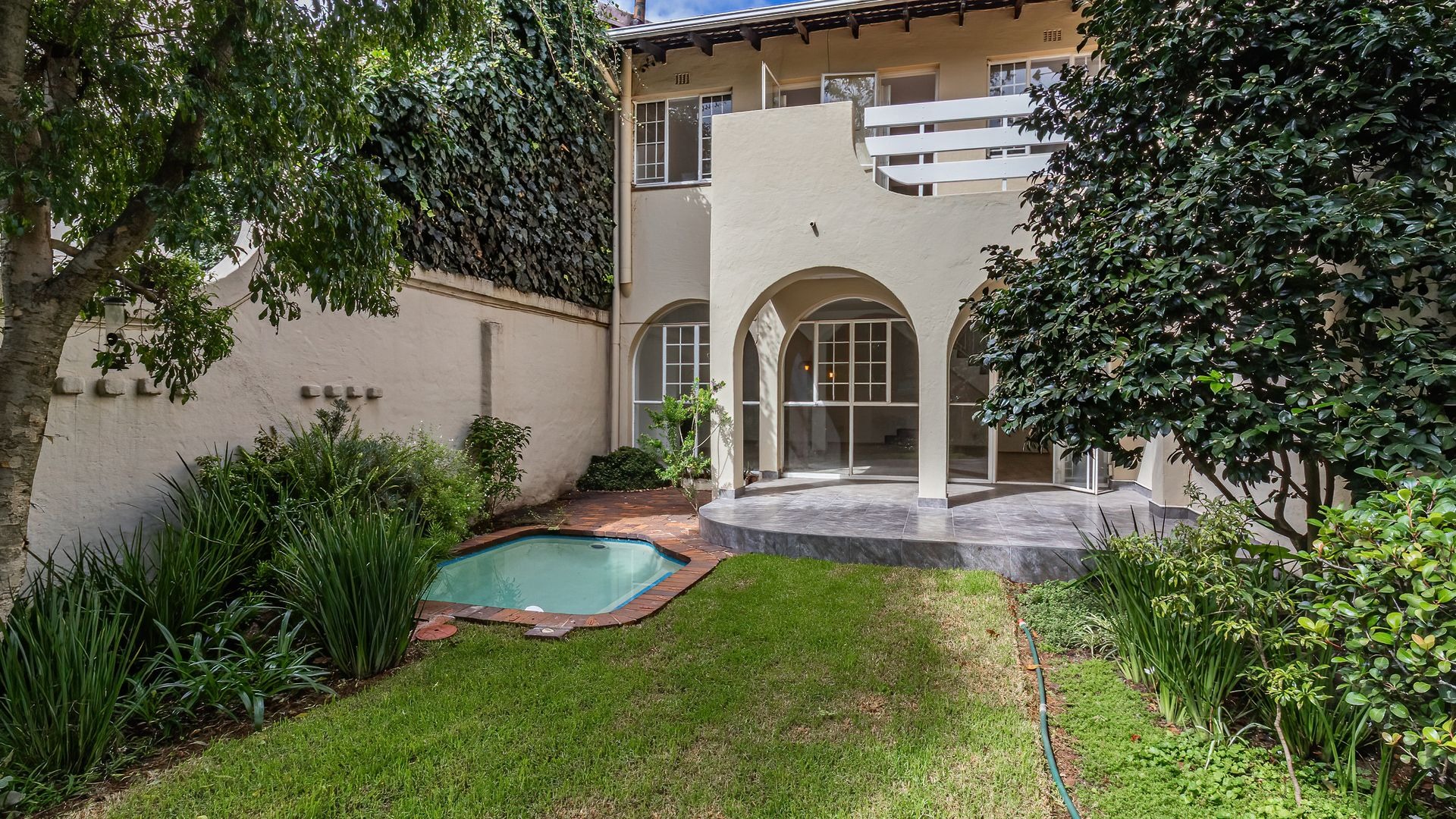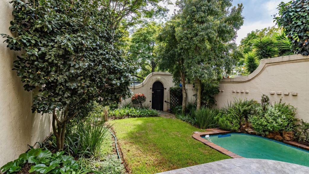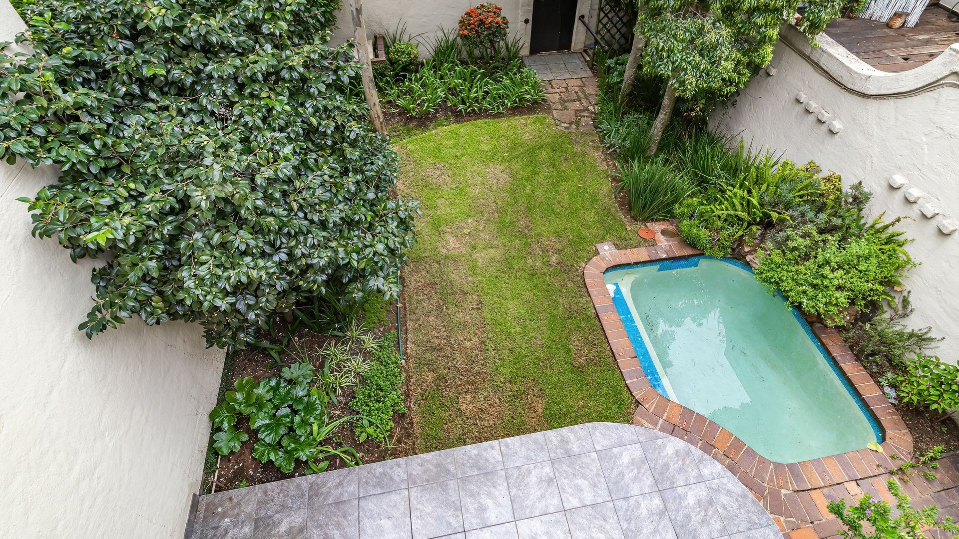 Perfectly situated for mom's busy lifestyle - 2 blocks from Montrose Primary and on the doorstep of Parkmore Square Shopping Centre - it just doesn't get more convenient than this! This spacious townhouse offering 226sqm of light-filled living space and set in a pretty, private garden with splash pool is perfect for the whole family. Separate, large tiled family room with stacking doors, an ideal space for the children to play. Generous open plan lounge, with gas fireplace, and dining room leads to covered patio and garden. Guest loo. Upgraded white kitchen with granite tops opens to courtyard with staff room/laundry and shower room. Upstairs, 3 good sized bedrooms, 2 open to balcony offering lovely treetop views. 2 bathrooms MES. Lots of extra storage space.