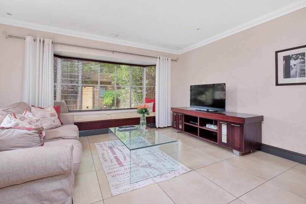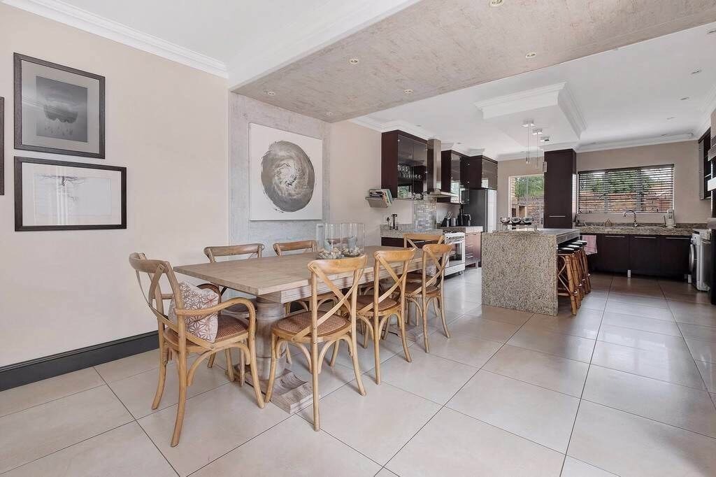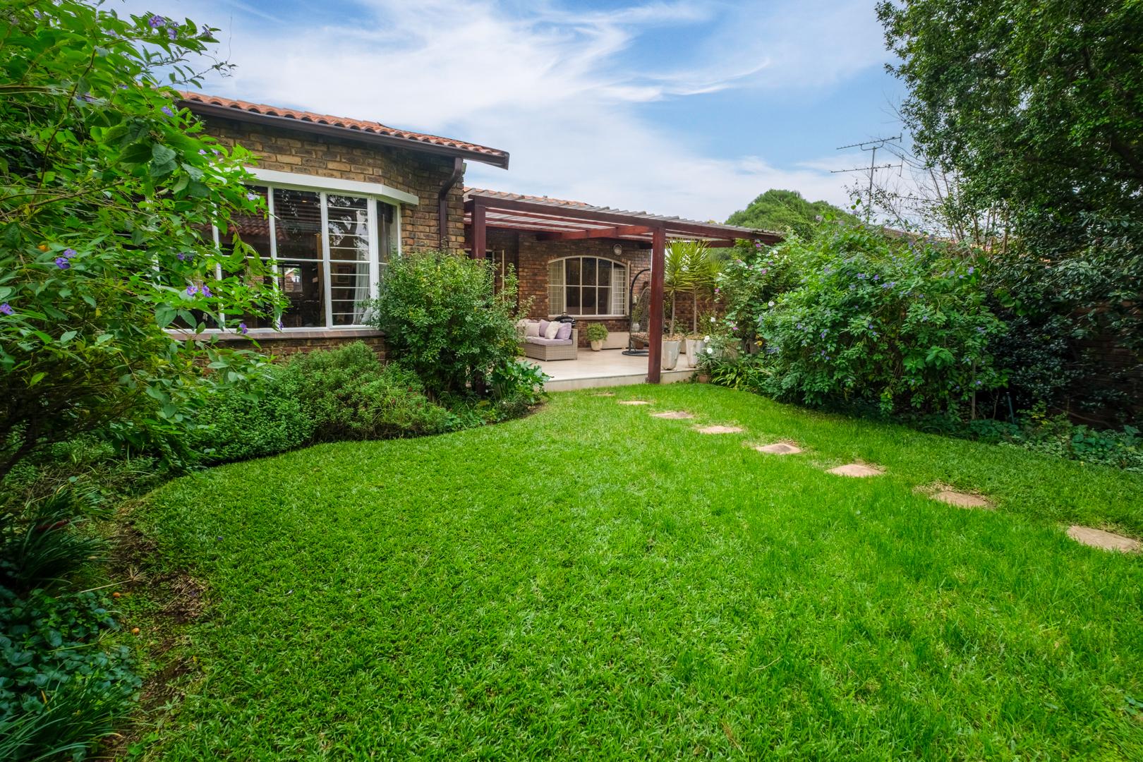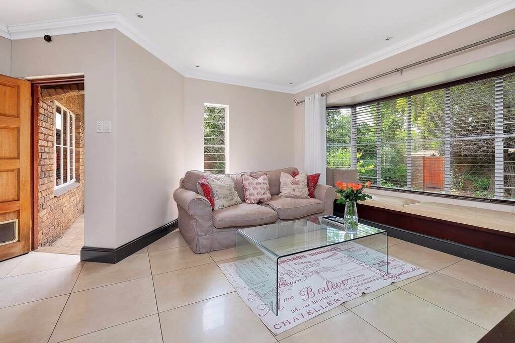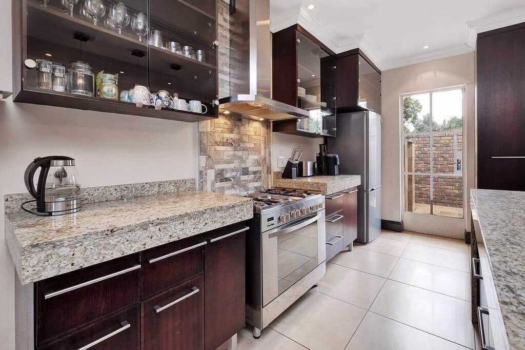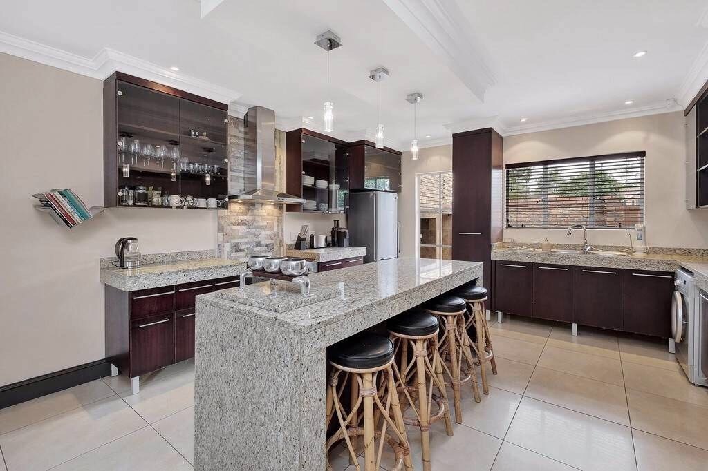 Discover this charming 121 sqm residence nestled within a secure gated community in River Club, Sandton. This inviting home offers a harmonious blend of comfortable living and outdoor enjoyment, perfect for those seeking a tranquil yet connected lifestyle. The property's kerb appeal is enhanced by its well-maintained garden and the welcoming covered patio, setting the stage for a delightful living experience. Step inside to an open-plan layout that seamlessly connects the modern kitchen with the lounge area. The kitchen is a highlight, featuring a large granite island with seating, ample granite countertop space, stylish dark wood cabinetry, and modern stainless steel appliances, including a stove and range hood. Tiled flooring extends throughout, ensuring easy maintenance and a cohesive aesthetic. The home comprises two comfortable bedrooms and two bathrooms, with one being an en-suite, providing privacy and convenience. Each space is designed for relaxation, offering a peaceful retreat after a busy day. Outdoor living is a true pleasure here, with a spacious covered patio that serves as an ideal setting for entertaining or quiet relaxation. This area, complete with comfortable outdoor seating and a BBQ grill, overlooks a lush, private garden, creating a serene oasis. Residents also benefit from access to a communal pool, perfect for cooling off on warm days. Pets are allowed, making this an ideal home for animal lovers. Security is paramount within this complex, featuring an access gate and burglar bars for peace of mind. The property is also fibre-ready, ensuring high-speed internet connectivity. With one garage and two additional parking spaces, convenience is assured. Located in the desirable River Club, Sandton, this home offers a superb opportunity for a balanced lifestyle. Key Features: * 121 sqm Floor Size * 2 Bedrooms, 2 Bathrooms (1 En-suite) * Open-Plan Kitchen with Granite Island * Spacious Covered Patio with Garden Access * Communal Pool Access * 1 Garage, 2 Parking Spaces * Gated Community with Access Gate and Burglar Bars * Fibre Ready * Pets Allowed