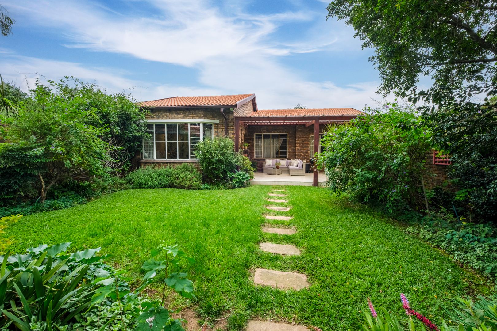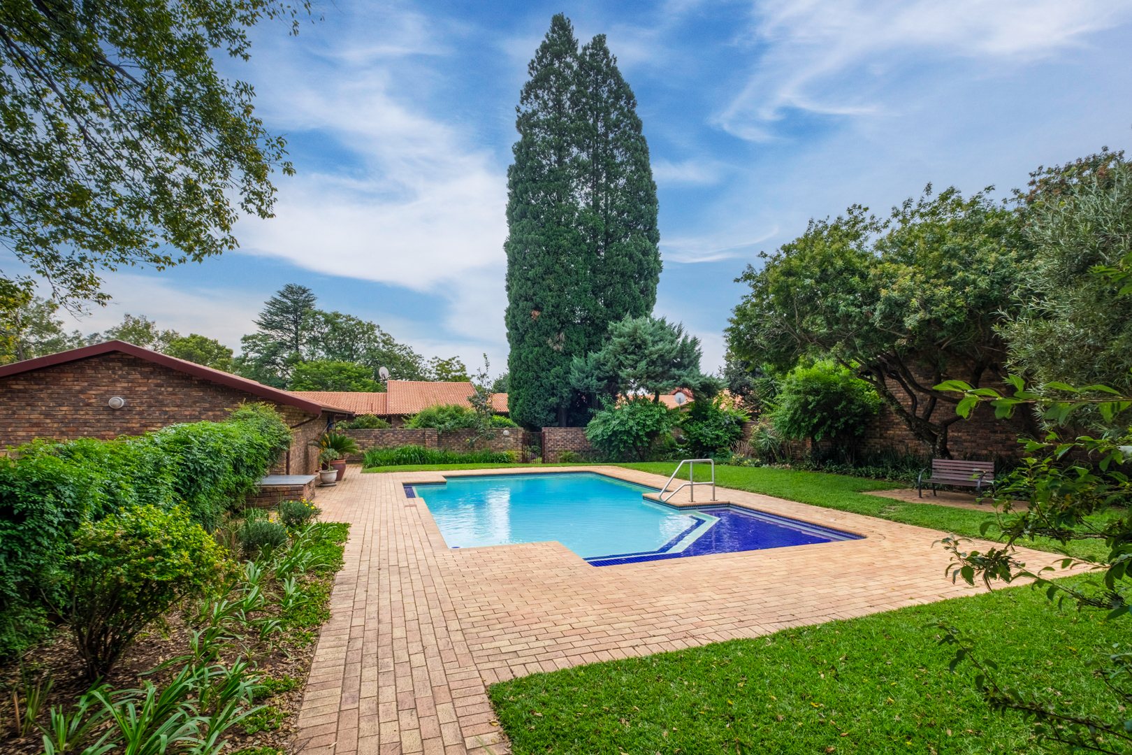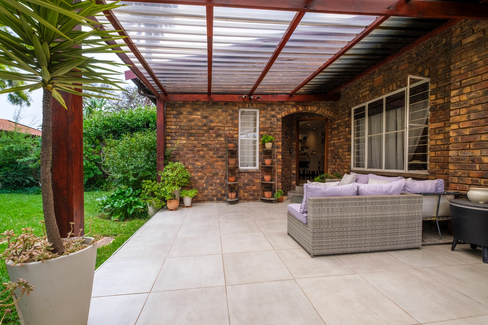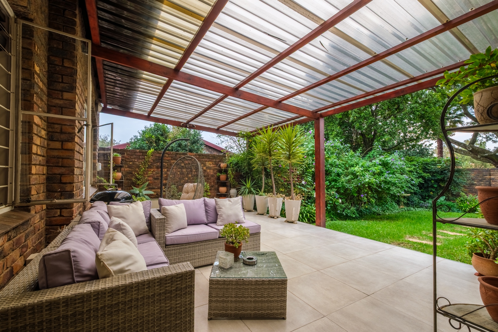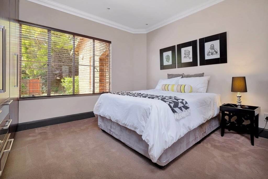 Discover this charming 121 sqm residence nestled within a secure gated community in River Club, Sandton. This inviting home offers a harmonious blend of comfortable living and outdoor enjoyment, perfect for those seeking a tranquil yet connected lifestyle. The property's kerb appeal is enhanced by its well-maintained garden and the welcoming covered patio, setting the stage for a delightful living experience. Step inside to an open-plan layout that seamlessly connects the modern kitchen with the lounge area. The kitchen is a highlight, featuring a large granite island with seating, ample granite countertop space, stylish dark wood cabinetry, and modern stainless steel appliances, including a stove and range hood. Tiled flooring extends throughout, ensuring easy maintenance and a cohesive aesthetic. The home comprises two comfortable bedrooms and two bathrooms, with one being an en-suite, providing privacy and convenience. Each space is designed for relaxation, offering a peaceful retreat after a busy day. Outdoor living is a true pleasure here, with a spacious covered patio that serves as an ideal setting for entertaining or quiet relaxation. This area, complete with comfortable outdoor seating and a BBQ grill, overlooks a lush, private garden, creating a serene oasis. Residents also benefit from access to a communal pool, perfect for cooling off on warm days. Pets are allowed, making this an ideal home for animal lovers. Security is paramount within this complex, featuring an access gate and burglar bars for peace of mind. The property is also fibre-ready, ensuring high-speed internet connectivity. With one garage and two additional parking spaces, convenience is assured. Located in the desirable River Club, Sandton, this home offers a superb opportunity for a balanced lifestyle. Key Features: * 121 sqm Floor Size * 2 Bedrooms, 2 Bathrooms (1 En-suite) * Open-Plan Kitchen with Granite Island * Spacious Covered Patio with Garden Access * Communal Pool Access * 1 Garage, 2 Parking Spaces * Gated Community with Access Gate and Burglar Bars * Fibre Ready * Pets Allowed