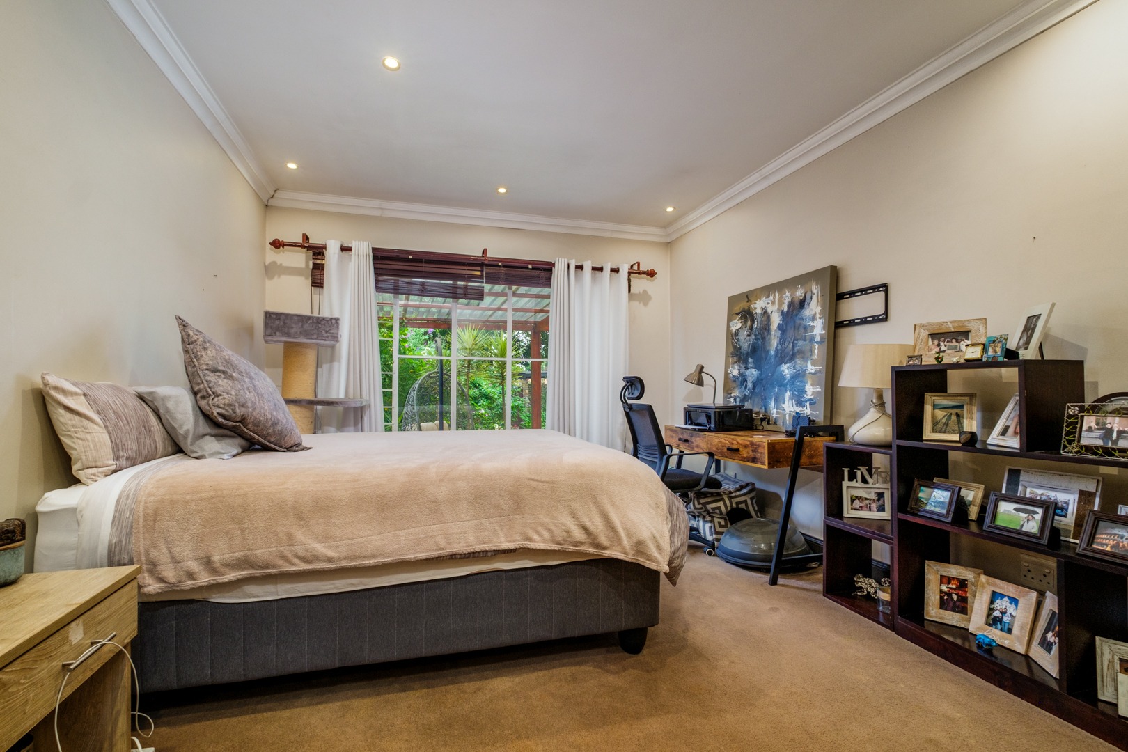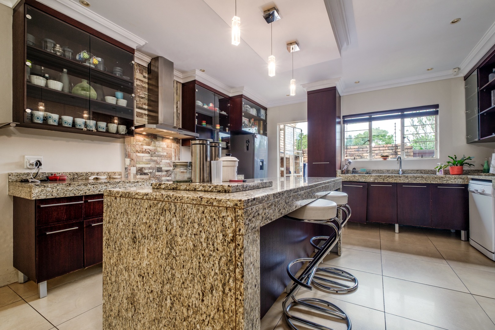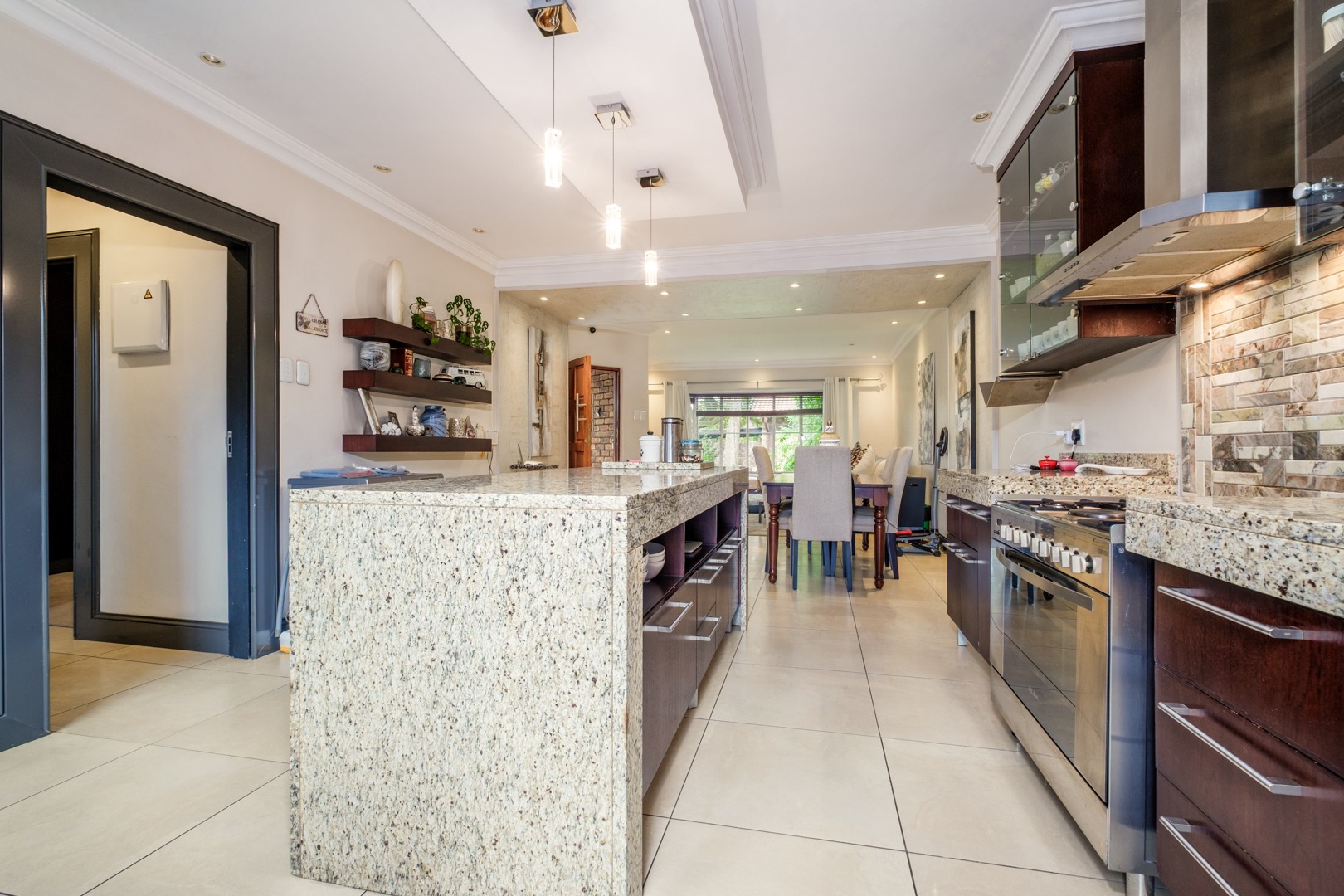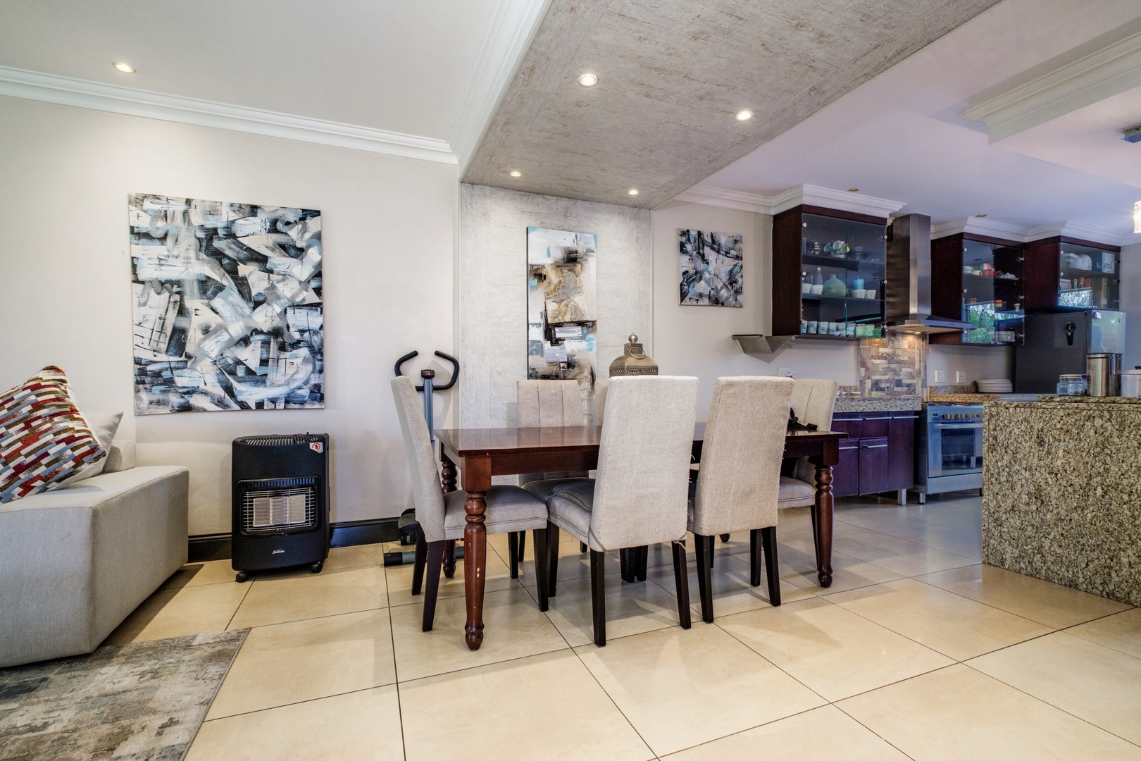 Discover this charming 121 sqm residence nestled within a secure gated community in River Club, Sandton. This inviting home offers a harmonious blend of comfortable living and outdoor enjoyment, perfect for those seeking a tranquil yet connected lifestyle. The property's kerb appeal is enhanced by its well-maintained garden and the welcoming covered patio, setting the stage for a delightful living experience. Step inside to an open-plan layout that seamlessly connects the modern kitchen with the lounge area. The kitchen is a highlight, featuring a large granite island with seating, ample granite countertop space, stylish dark wood cabinetry, and modern stainless steel appliances, including a stove and range hood. Tiled flooring extends throughout, ensuring easy maintenance and a cohesive aesthetic. The home comprises two comfortable bedrooms and two bathrooms, with one being an en-suite, providing privacy and convenience. Each space is designed for relaxation, offering a peaceful retreat after a busy day. Outdoor living is a true pleasure here, with a spacious covered patio that serves as an ideal setting for entertaining or quiet relaxation. This area, complete with comfortable outdoor seating and a BBQ grill, overlooks a lush, private garden, creating a serene oasis. Residents also benefit from access to a communal pool, perfect for cooling off on warm days. Pets are allowed, making this an ideal home for animal lovers. Security is paramount within this complex, featuring an access gate and burglar bars for peace of mind. The property is also fibre-ready, ensuring high-speed internet connectivity. With one garage and two additional parking spaces, convenience is assured. Located in the desirable River Club, Sandton, this home offers a superb opportunity for a balanced lifestyle. Key Features: * 121 sqm Floor Size * 2 Bedrooms, 2 Bathrooms (1 En-suite) * Open-Plan Kitchen with Granite Island * Spacious Covered Patio with Garden Access * Communal Pool Access * 1 Garage, 2 Parking Spaces * Gated Community with Access Gate and Burglar Bars * Fibre Ready * Pets Allowed