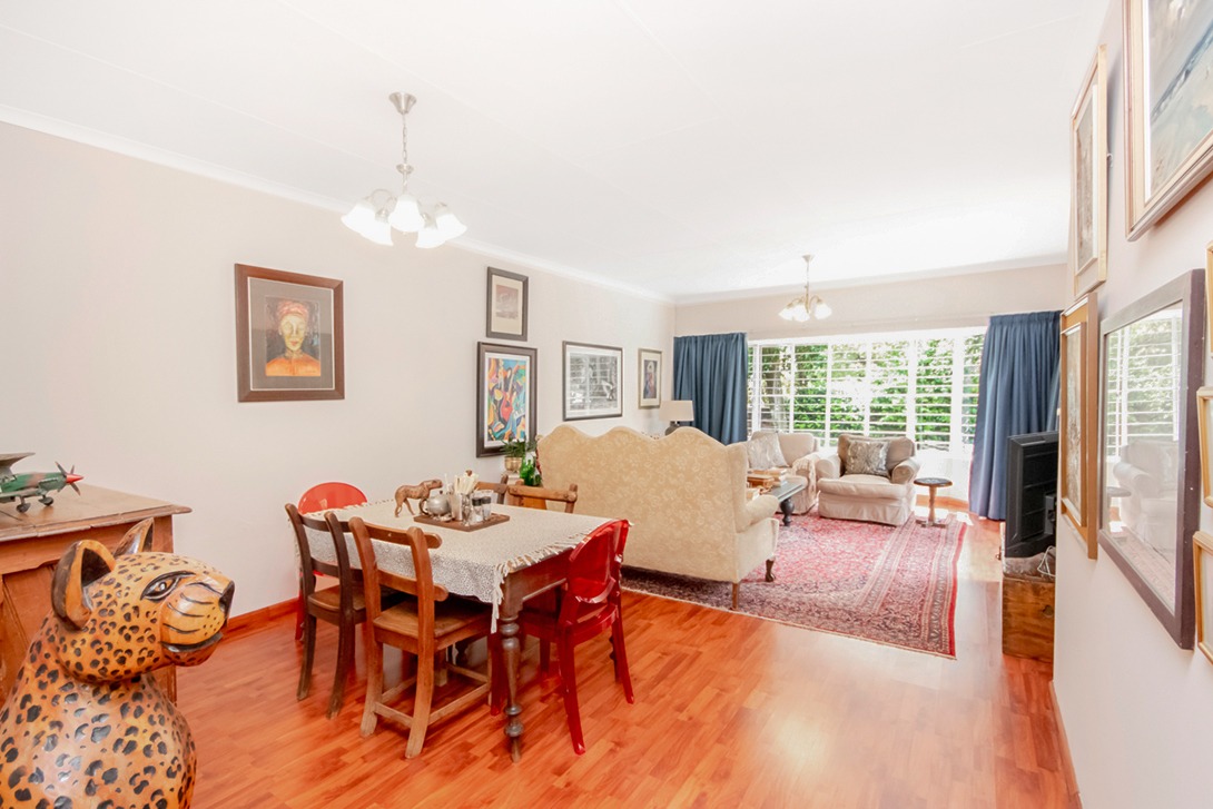 Open plan lounge and dining area with laminate flooring – ideal for relaxing.