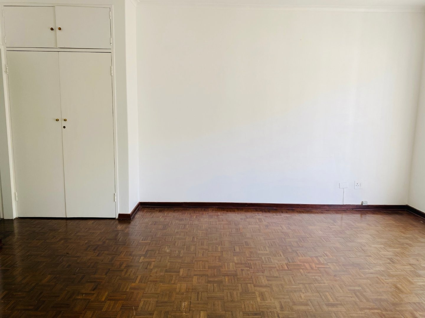 The unit has well taken care of parquet flooring and includes built in cupboards.