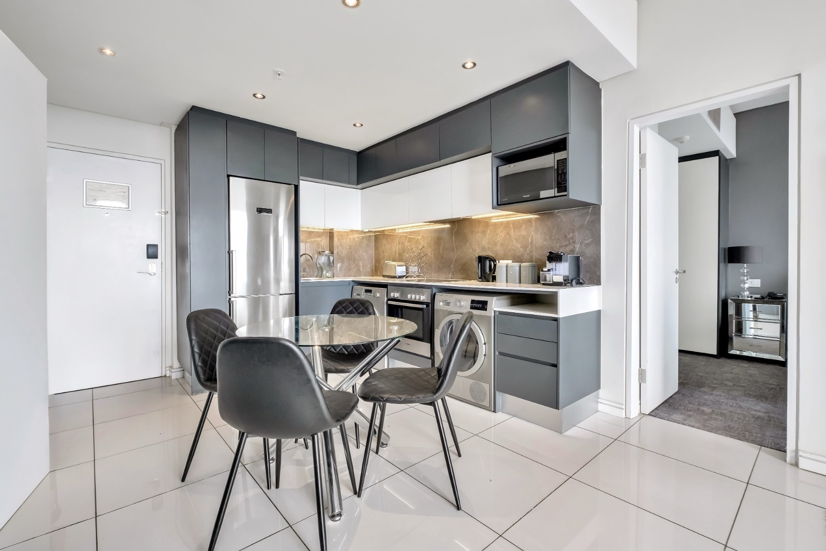 Beautifully furnished and privately owned, this extraordinary apartment boasts a smart dual-layout design, featuring two separate entrances and an interleading door, ideal for dual rental income. Perfect for discerning investors, business travellers or executive residents.