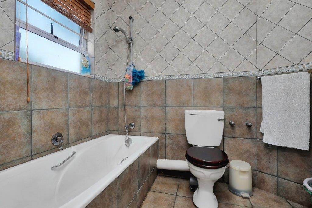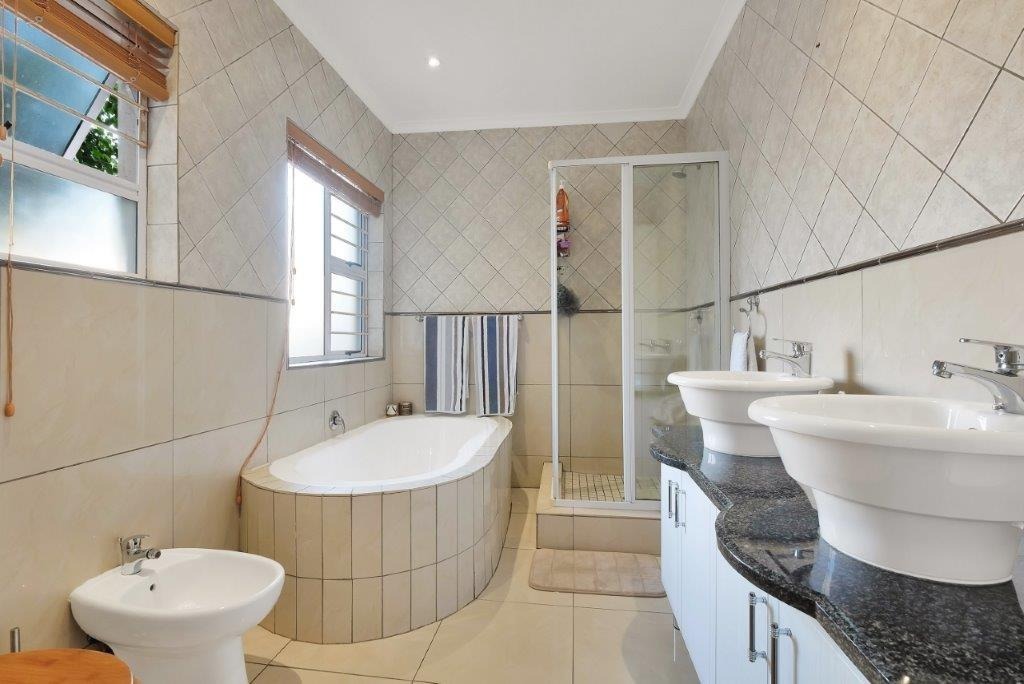 The spacious, open-plan lounge and dining room lead out through glass doors to a private, tiled patio and garden. Complete with guest toilet, double garage with direct access to the house, alarm system with beams in the garden.