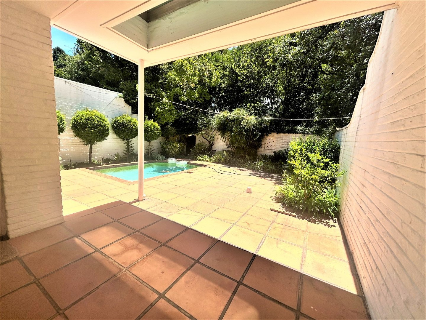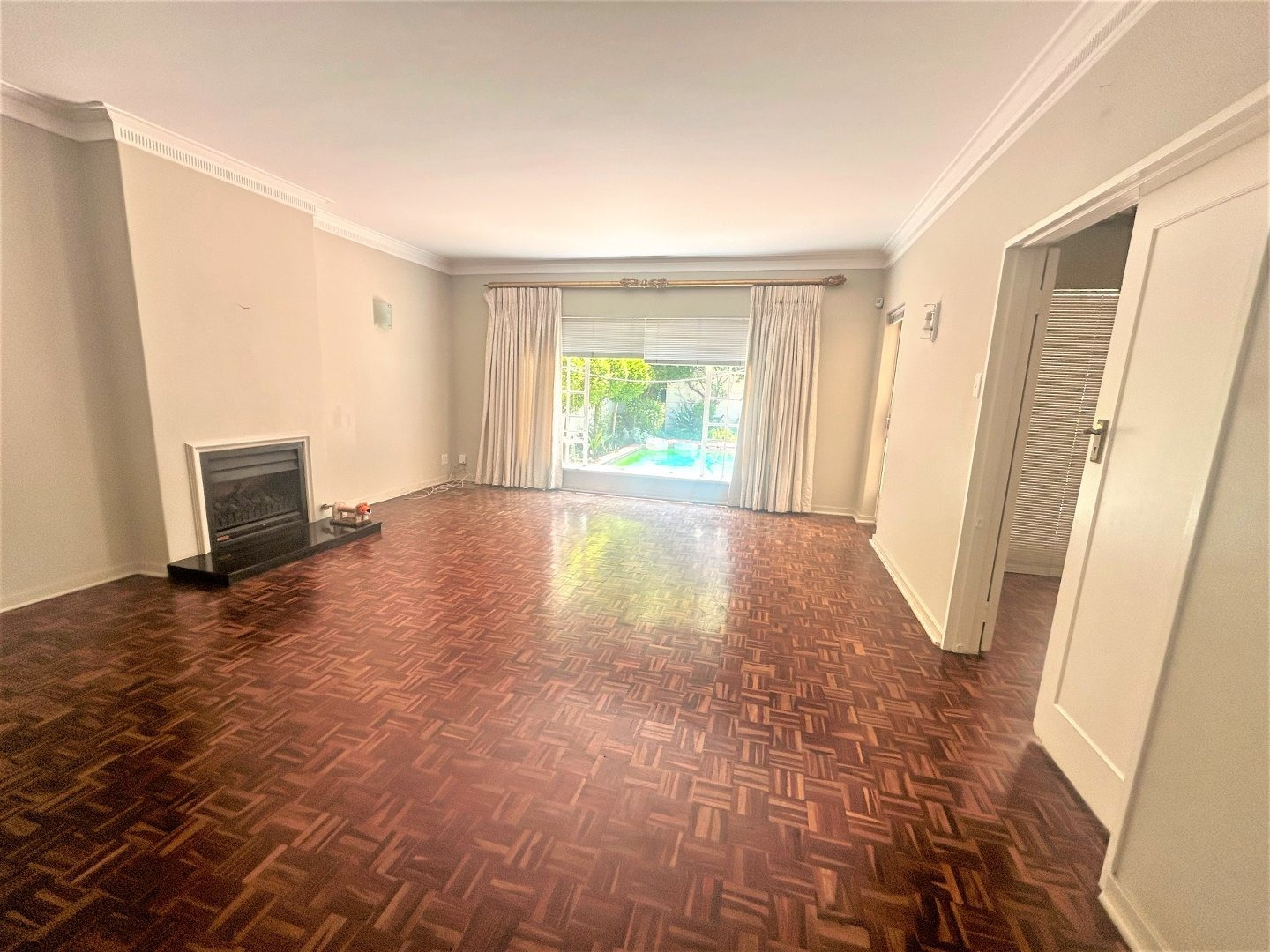 3 Large parqueted (wood) downstairs reception rooms with a guest toilet. Good size kitchen. Small garden plus private pool.