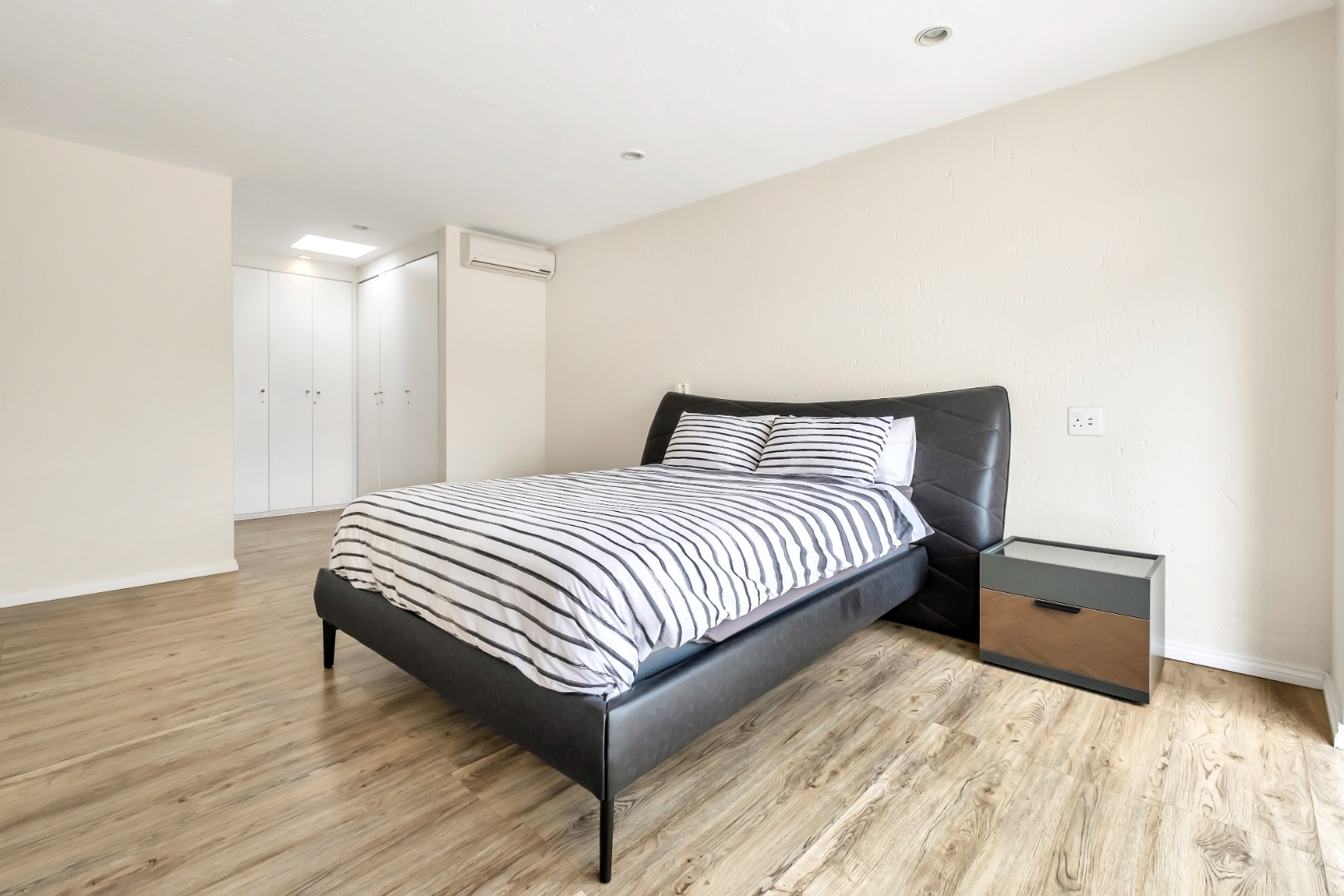 The large, air-conditioned master bedroom opens out to a secluded roof terrace and enjoys a spacious walk through dressing area to the ensuite bathroom.