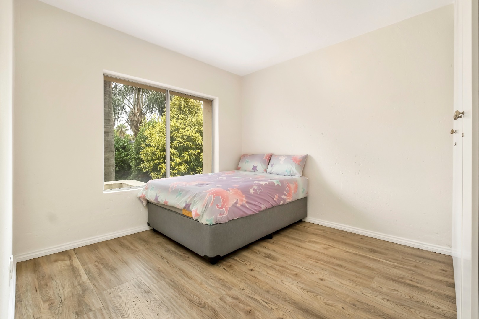 • Wood laminate and tiled flooring