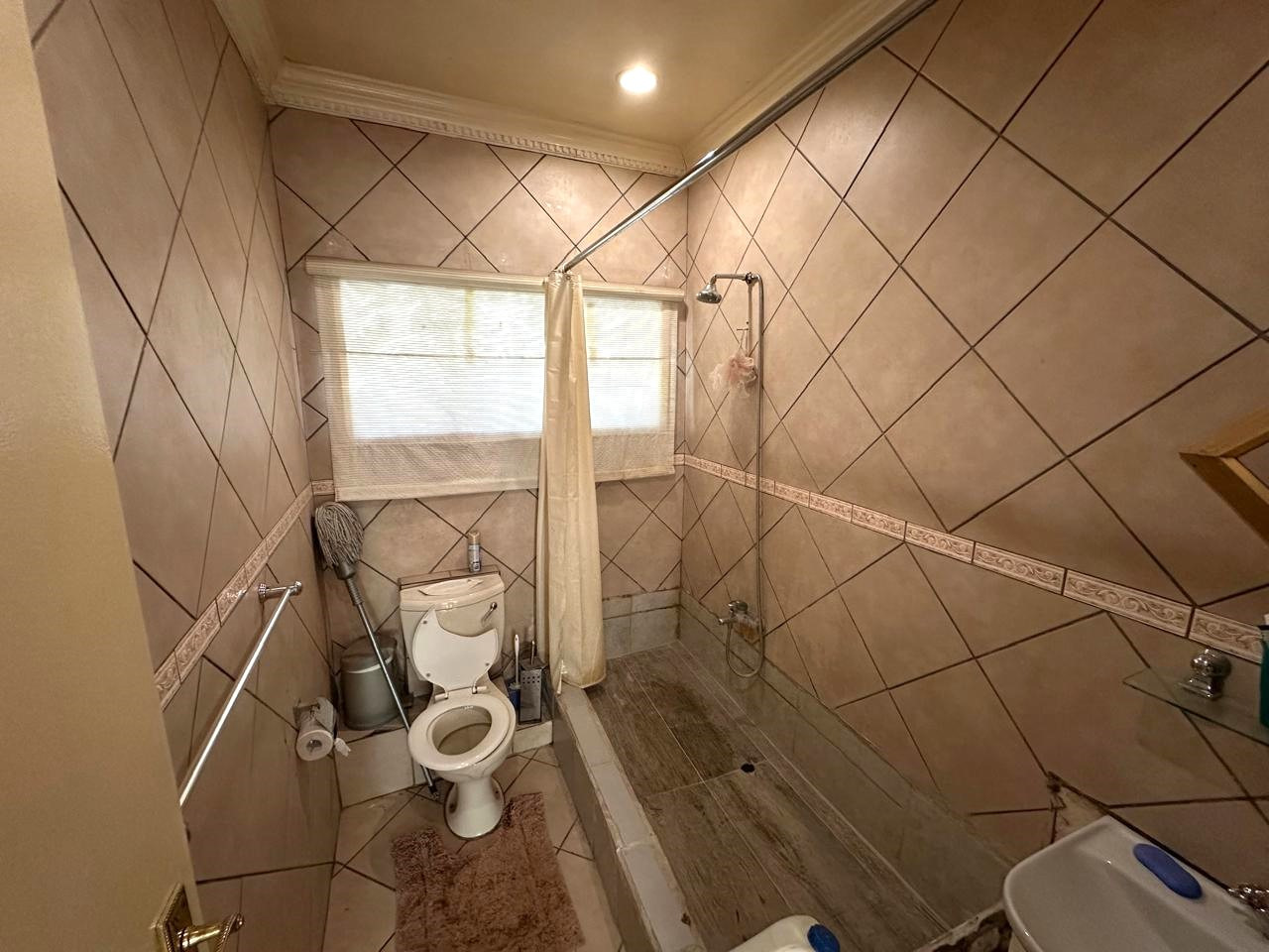 The bedroom is spacious with plenty of cupboard space along with an en-suite bathroom.
