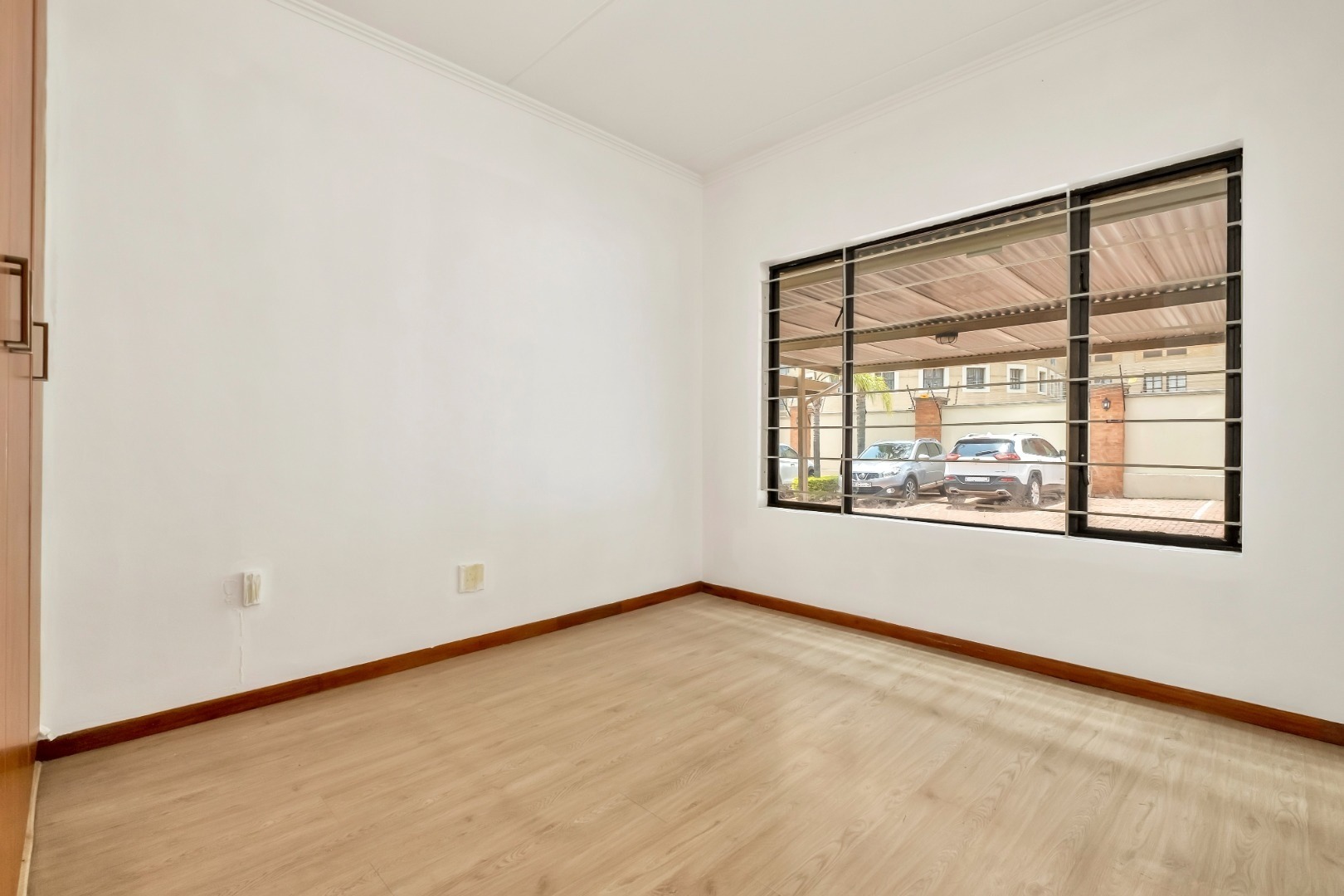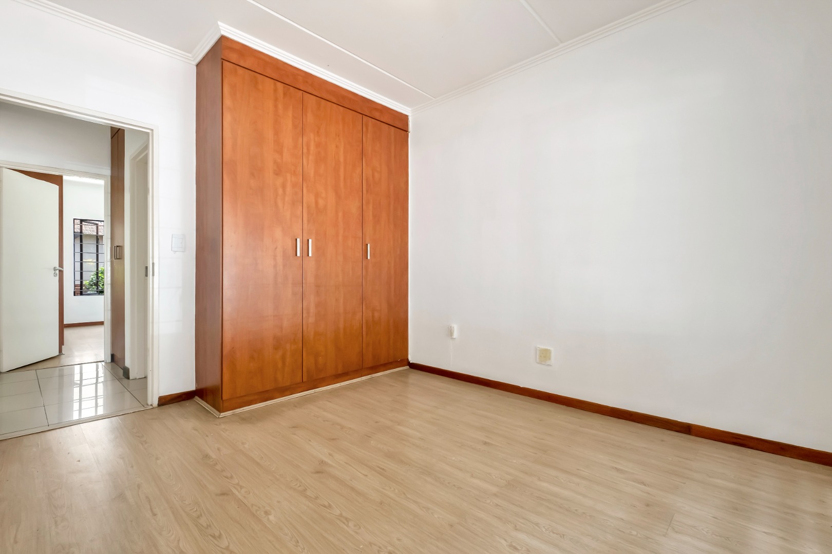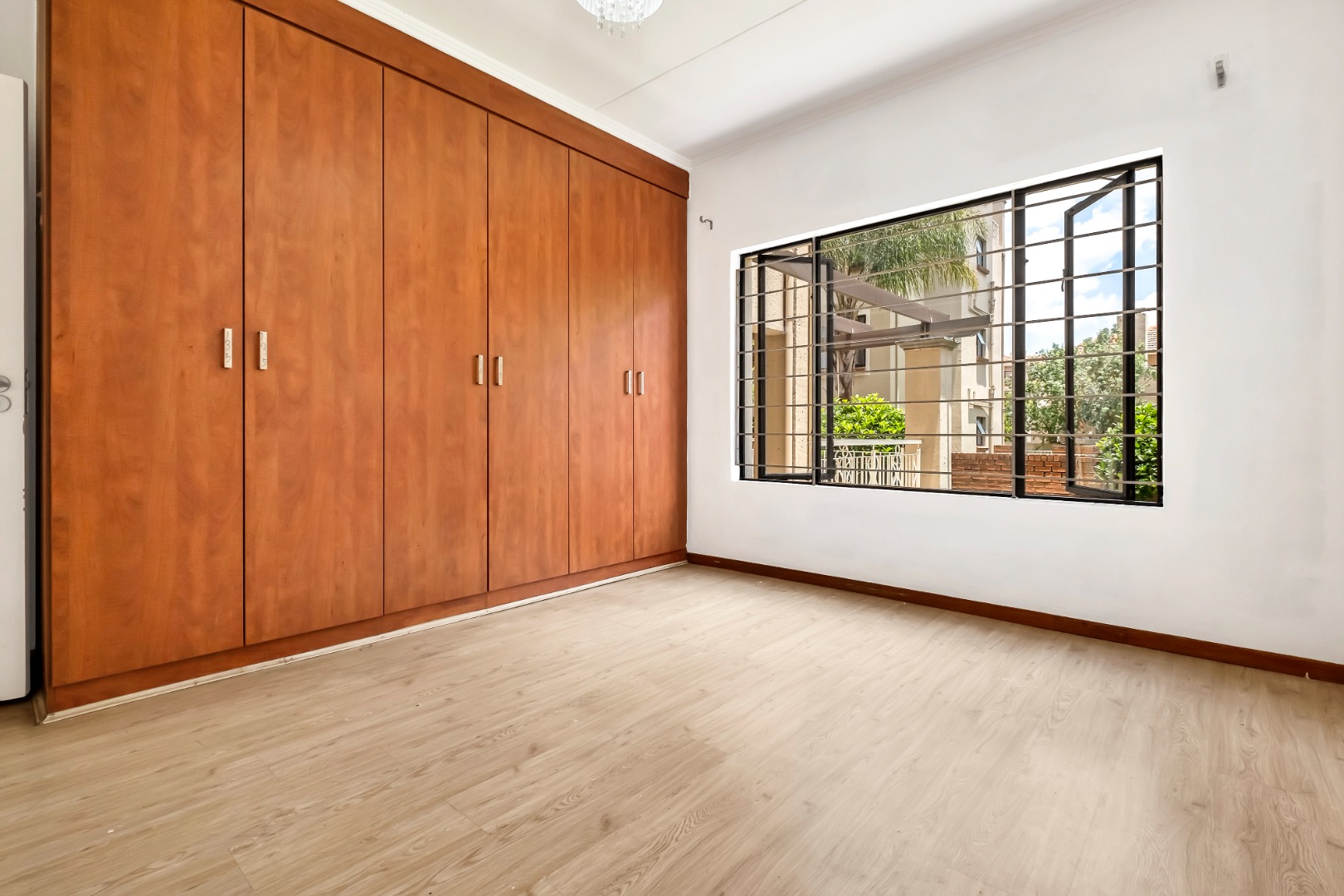 The two well-sized bedrooms have large windows, wood laminate flooring and plenty of built-in cupboards.