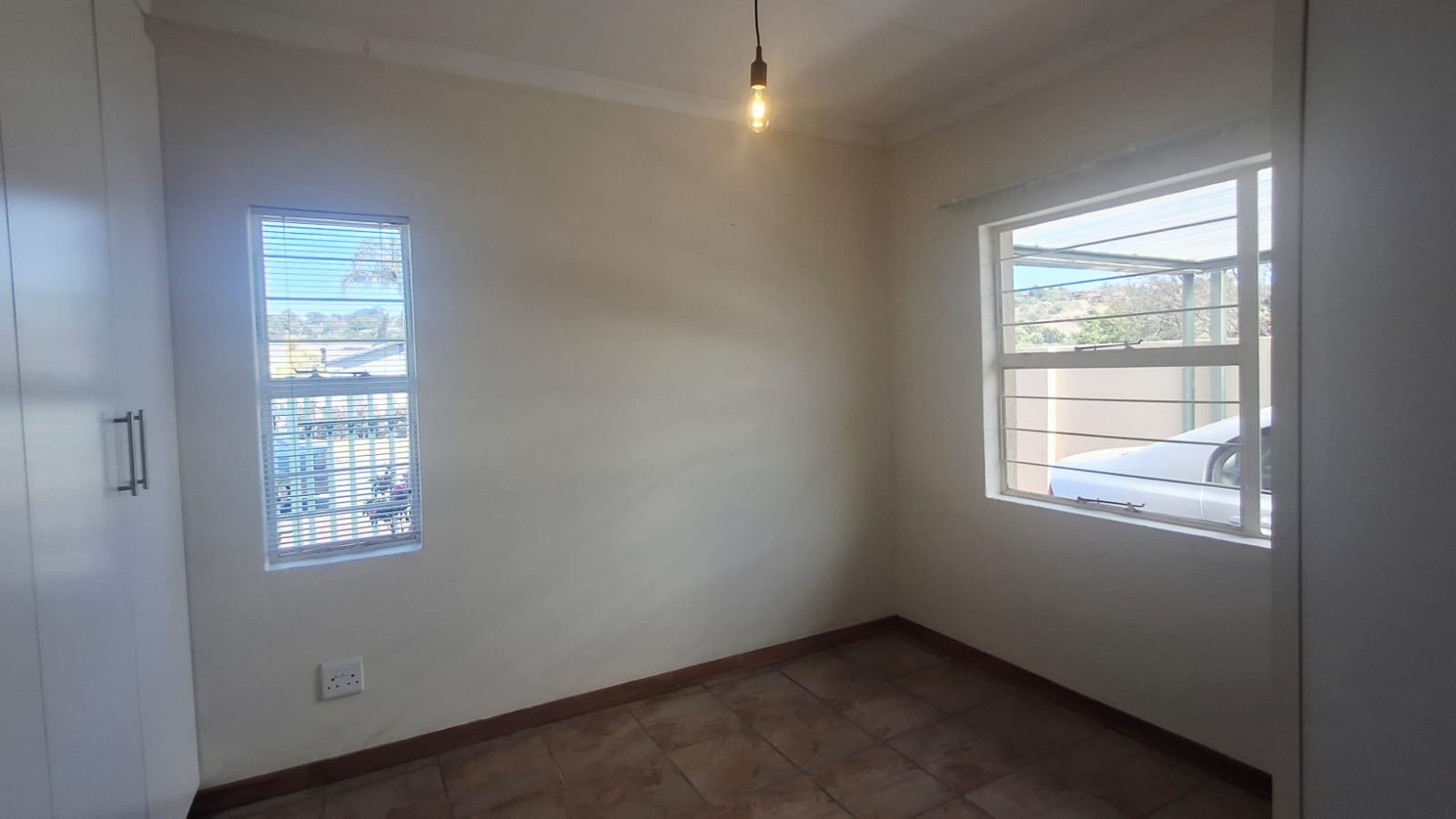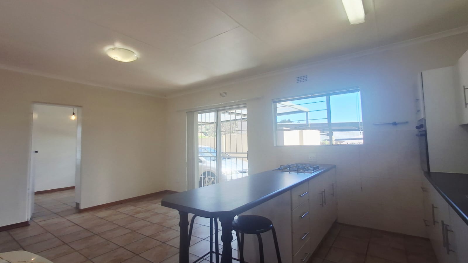 Security is sorted with burglar bars on windows and a security gate on the sliding door, giving you peace of mind. Outside, a paved driveway and covered carport keep your vehicle safe.
