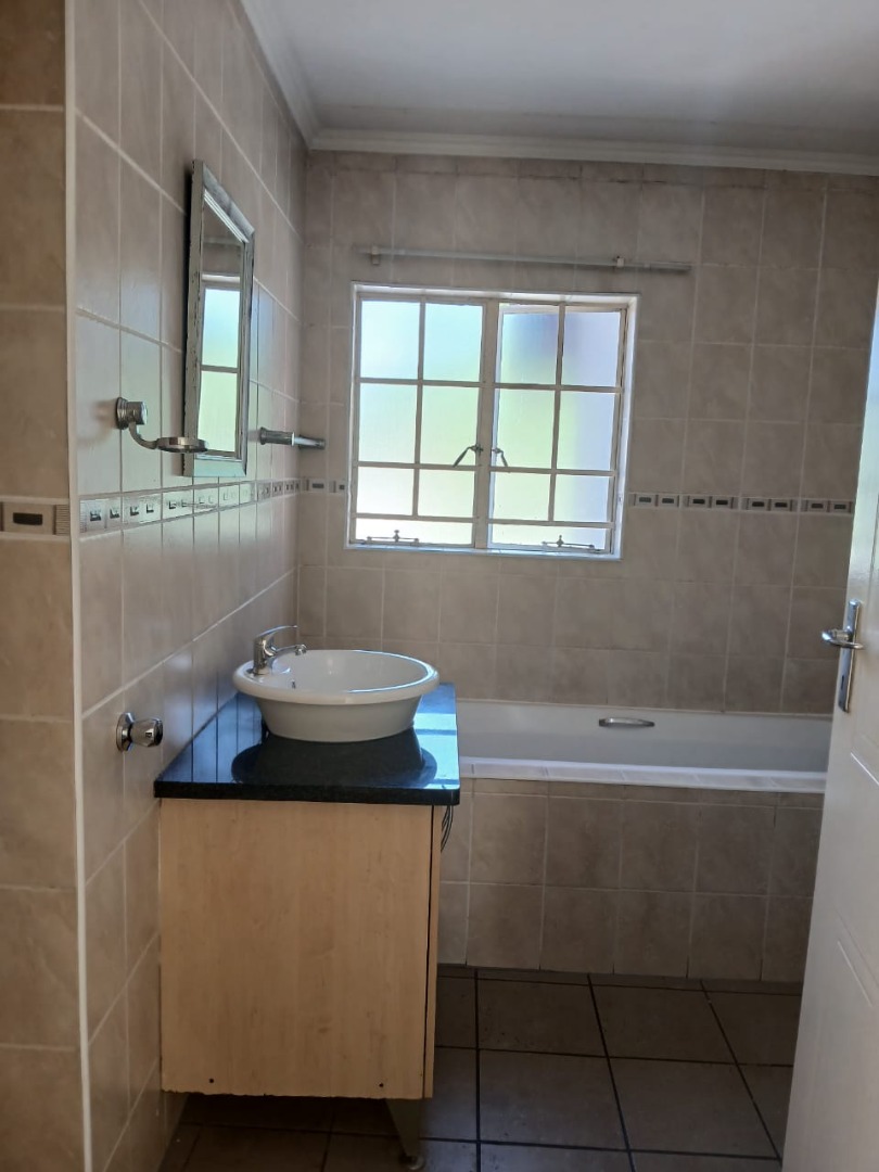 A modern, two-bedroom, one-bathroom apartment is available for rent at Shana Park. The unit is on the 1st floor and It features an electrical stove, 2 spacious bedrooms, a full bathroom with bath tub and shower. The is very tight security and is child-friendly environment. It is located near shopping centers such as San Ridge Square and Carlswald shopping